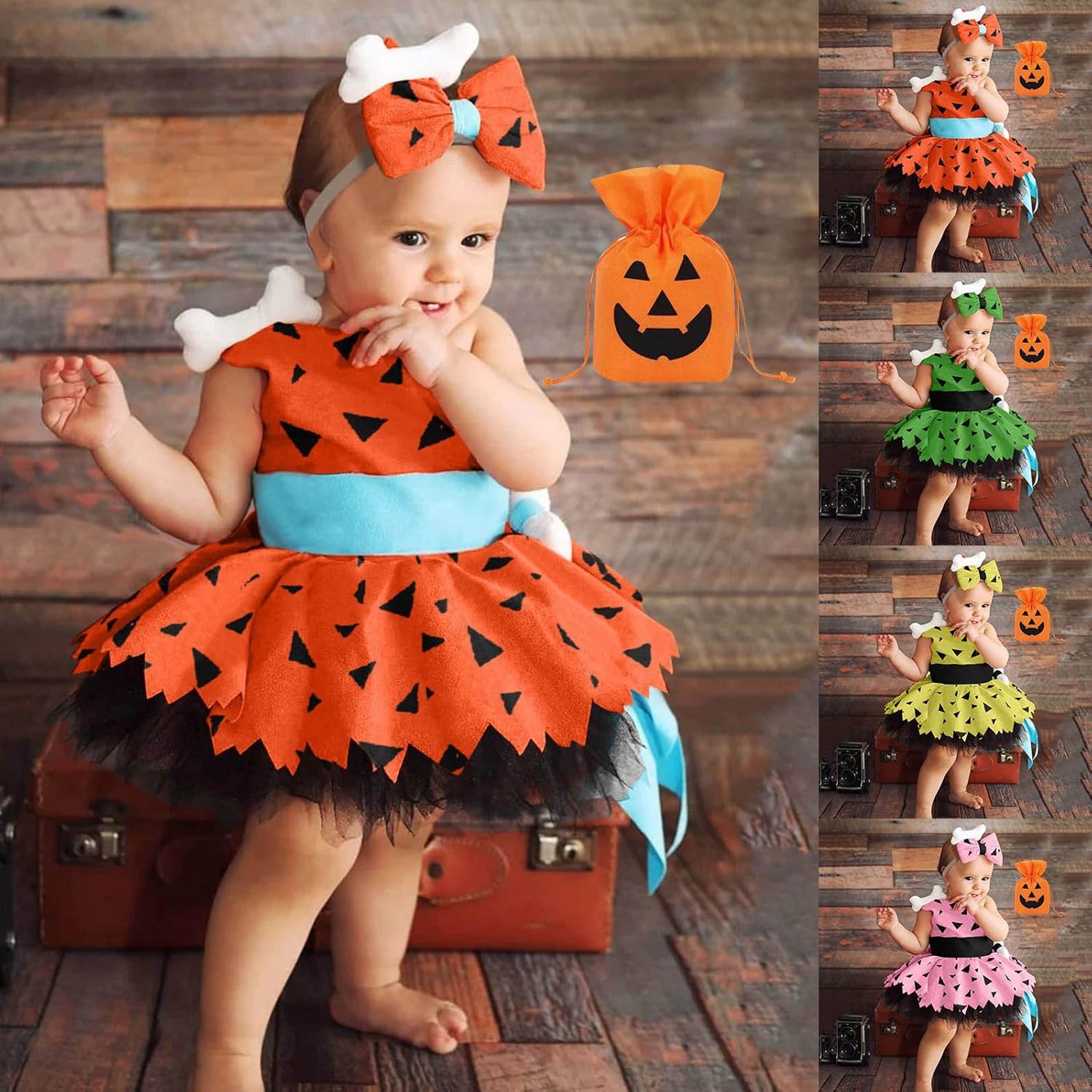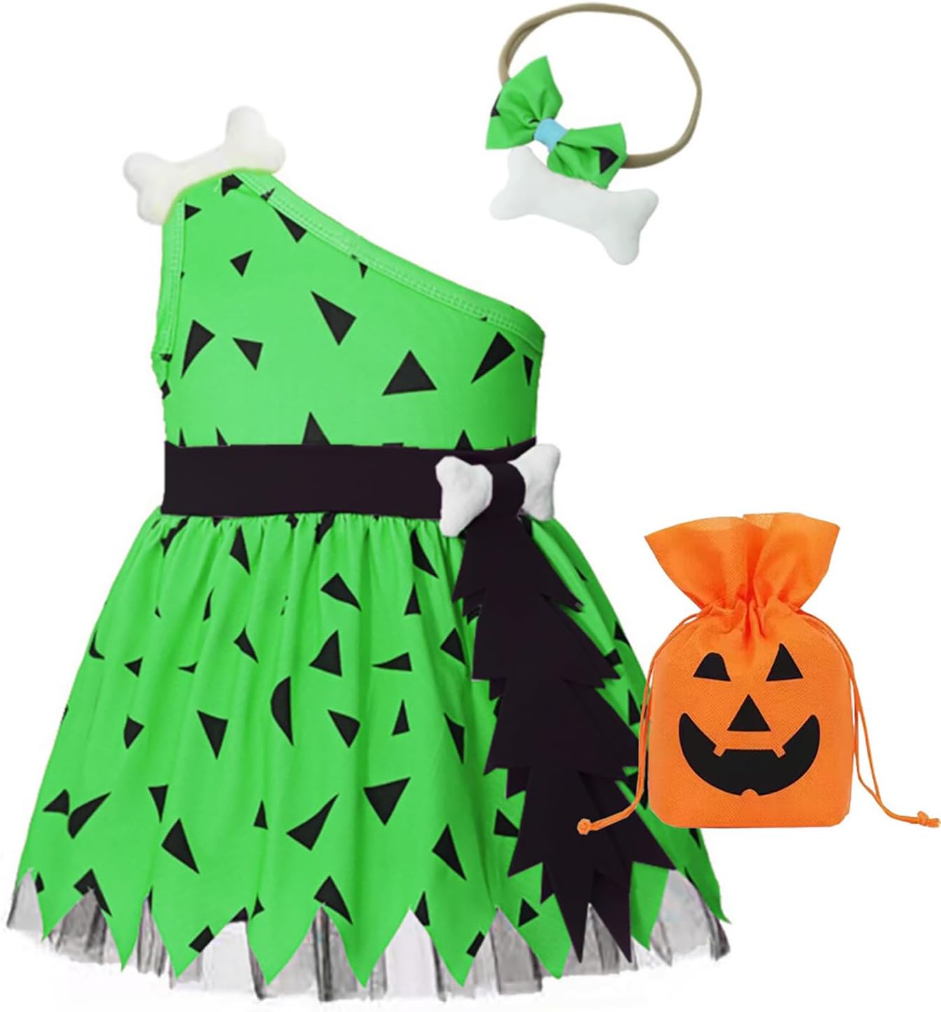 Si tratta di un costume da pebbles Flintstones per ragazze (in particolare bambini), che può essere utilizzato anche come costume da cosplay di carnevale, include abito Pebbles, gonne in pizzo e fascia, adatto per Halloween e carnevale