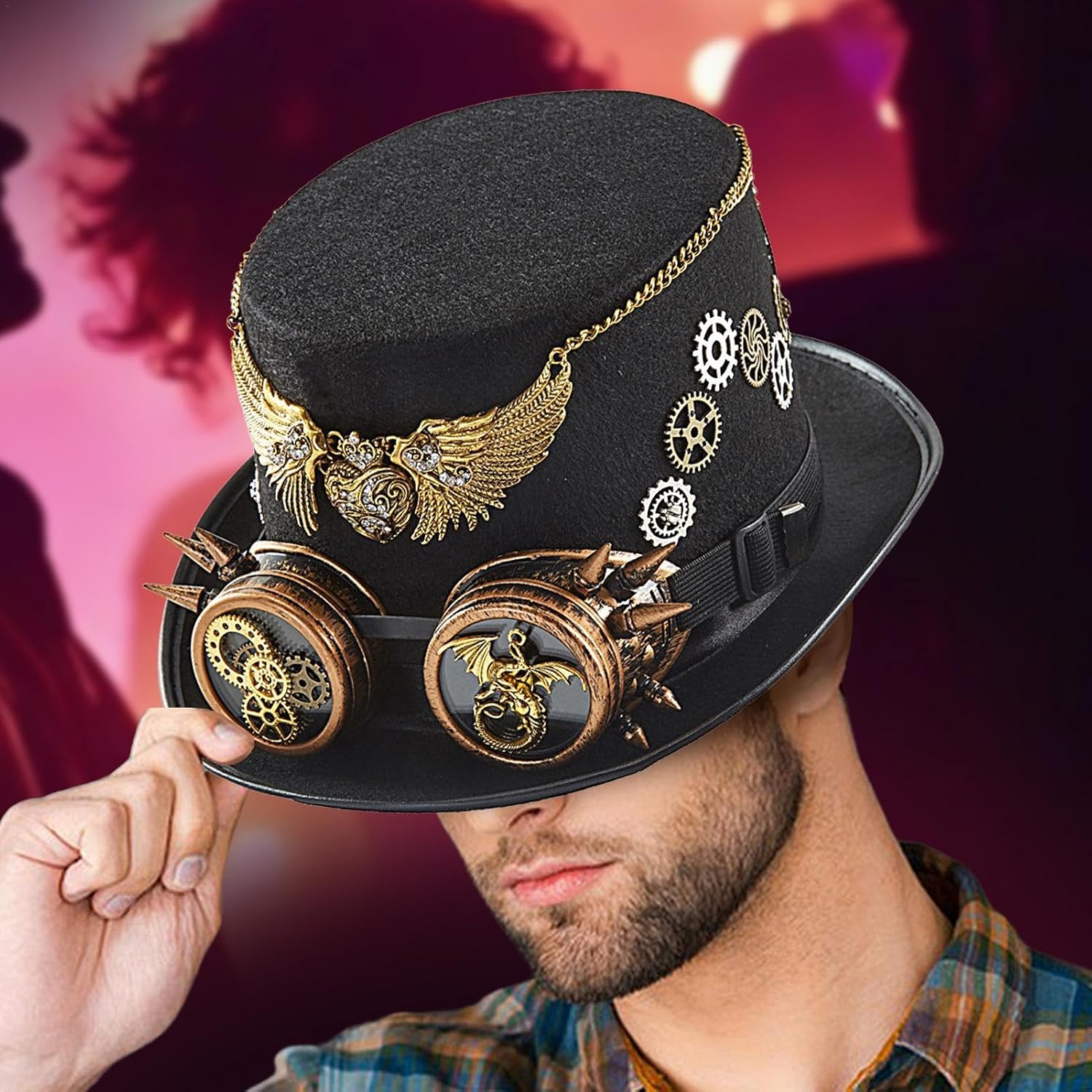 Descrizione prodotto cappelli jazz western sono realizzati in feltro ad alta densità per una maggiore durata. L'accessorio perfetto per il tuo costume steampunk. Offre una vestibilità confortevole e calda che ti renderà la vita della festa. Un regalo pratico per feste in costume di Halloween, feste di fine anno, ecc. Specifica: Nome: cappello e occhiali Steampunk. Materiale: feltro + metallo Dimensioni: altezza del cappello circa 13 cm/5,12 pollici. Adatto per una circonferenza della testa di circa 56-60 cm. Peso: circa 220 g. Lista di imballaggio: 1 x attrezzatura da cosplay Steampunk Nota: Il colore reale dell'articolo potrebbe differire leggermente da quello mostrato nelle immagini a causa della luminosità e delle impostazioni dello schermo. Si prega di considerare un margine di errore di 1-2 cm a causa della misurazione manuale. Avviso di sicurezza Non applicabile