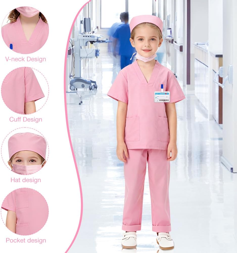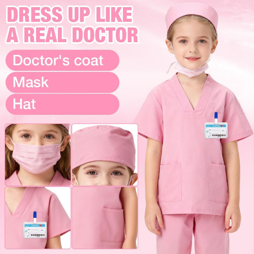 Descrizione prodotto Acile da indossare: Costume da medico chirurgooffre camici bianchi da medico e chirurgici che consentono di sperimentare diversi scenari di auscultazione. La giacca bianca dell'uniforme è realizzata in 35% cotone + 65% poliestere, che è traspirante e confortevole e previene il surriscaldamento. Il camice chirurgico è morbido e delicato sulla pelle, rendendolo più comodo da indossare per i bambini. Design dettagliato: la tasca sul petto e le 2 grandi tasche degli indumenti chirurgici valigetta dottore bambini sono adatte per riporre facilmente piccoli oggetti come maschere, matite, cartone e guanti durante l'esperimento, rendendoli più facili da trasportare e riporre nel gioco. GIOCHI DI RUOLO MULTIPLI: Medico gioco di ruolo incoraggia il tuo bambino a imparare e divertirsi con questo set di travestimenti per giochi di ruolo da dottore. Ottimo per far giocare i bambini al dottore, al veterinario o allo scienziato, perfetto per lezioni di chimica, lezioni di medicina e laboratorio, come costume sicuro per bambini, costume di Halloween per bambini. Nota: supporta il lavaggio a mano o in lavatrice a una temperatura massima dell'acqua di 30 gradi e può essere asciugato in asciugatrice a bassa temperatura. Informazioni sulle specifiche del prodotto: Nome del prodotto: Costumi da dottore Adatto per altezza: 140 cm Materiale: materiale di alta qualità Elenco di consegna: 1 * set di camice chirurgico con scollo a V 1 maschera 1*Versione inglese del permesso di lavoro Avviso di sicurezza NO
