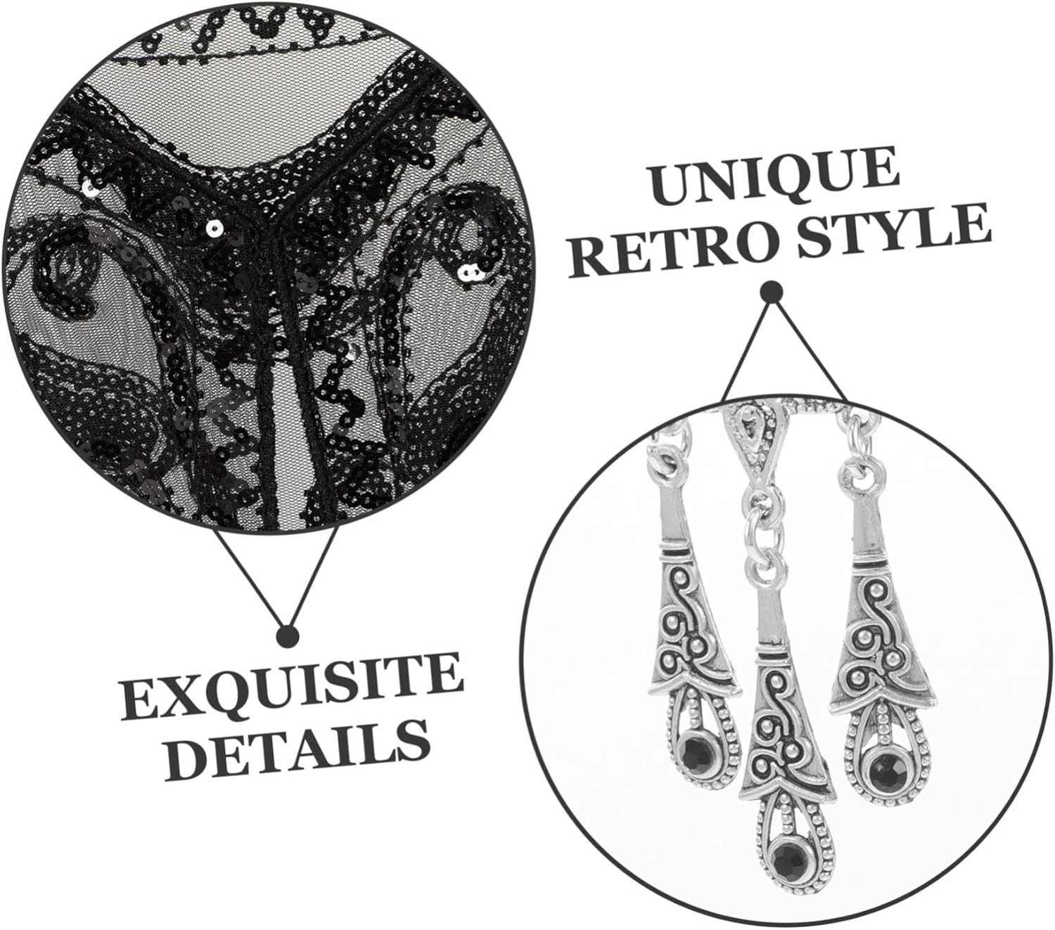 dei pacchetti 1 x fascia per 1 paio x orecchini 1 x collana 1 paio x guanti 1 x scialle Caratteristiche - Robusta fattura: la raffinata fattura e l'attenzione ai dettagli di questo set assicurano che tratti di accessori flapper eleganti e durevoli per le donne. -Pratico per qualsiasi evento: che tratti di un matrimonio, una festa o un ballo, questo set è pratico per aggiungere un tocco di vintage al tuo vestito mantello in pizzo nero -Versatile ed elegante: il set include sia i guanti che uno scialle, consentendoti di creare molteplici look eleganti per diversi eventi scialle cavo vintage - : fascia flapper nera -Elegante design vintage: l'elegante design vintage di questo set riporta in vita il glamour degli anni '20, pratico per qualsiasi copricapo flapper per occasioni speciali -Dimensioni: 51,70X11,00X0,20 cm/20,32X4,32X0,08 pollici costume flapper - Morbido e confortevole: realizzati con materiali morbidi e resistenti, i guanti e lo scialle offrono un comodo abito da ballo con paillettes -Materiale: tessuto + lega_plastica costumi flapper per le donne Descrizione della merce costume flapper Il nostro set a tema anni '20 è l'aggiunta pratica a qualsiasi guardaroba vintage, offrendo un look completo per feste flapper e celebrazioni retrò. accessori per costume flapper Il set include una fascia anni '20 ruggenti, copricapi con paillettes e guanti eleganti, tutti realizzati per riflettere lo stile dell'epoca. mantello in pizzo nero Abbina questi accessori al tuo vestito flapper preferito ed entra in un mondo di glamour, pronto a stupire in qualsiasi evento