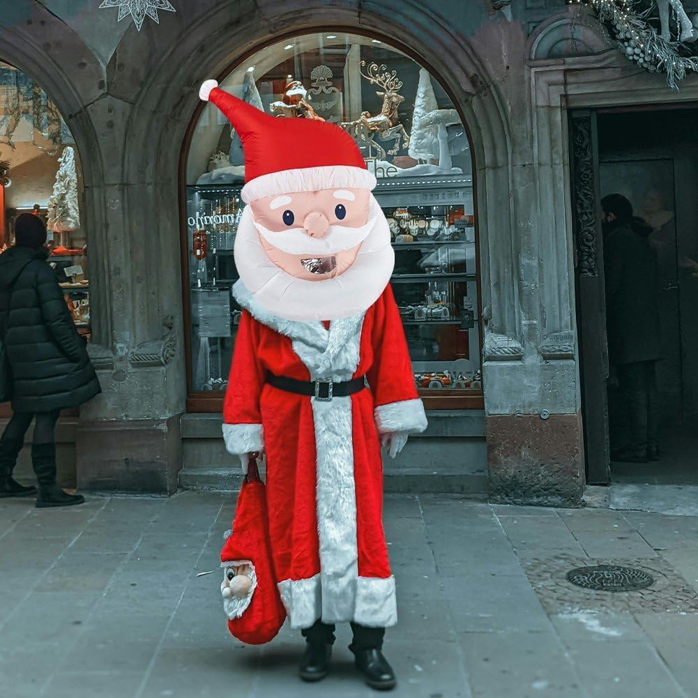 Taglia unica: costume da Babbo Natale*1, adatto alla maggior parte degli adulti di altezza compresa tra 150 cm e 190 cm/59" - 75". Ampiamente applicabile: perfetto per festival creativi, feste in maschera, carnevale, Pasqua, Natale, Capodanno, Halloween. La brillante combinazione di colori rende interessante il costume da Babbo Natale più carino. Testa gonfiabile di Babbo Natale: la forma della testa è divertente e carina, indossa un costume gonfiabile, corri, cammina, siediti, salta, sarà facile se ti abitui. Ottimo per creare video divertenti. Leggero e sicuro: il nostro costume natalizio gonfiabile è realizzato in tessuto poliestere di alta qualità, atossico e delicato sulla pelle. Molto leggero, un costume super divertente da indossare. Indossalo comodamente: il costume gonfiabile ti dà tanto spazio per agitarti. è ventilato, quindi non sudi sulla pista da ballo.