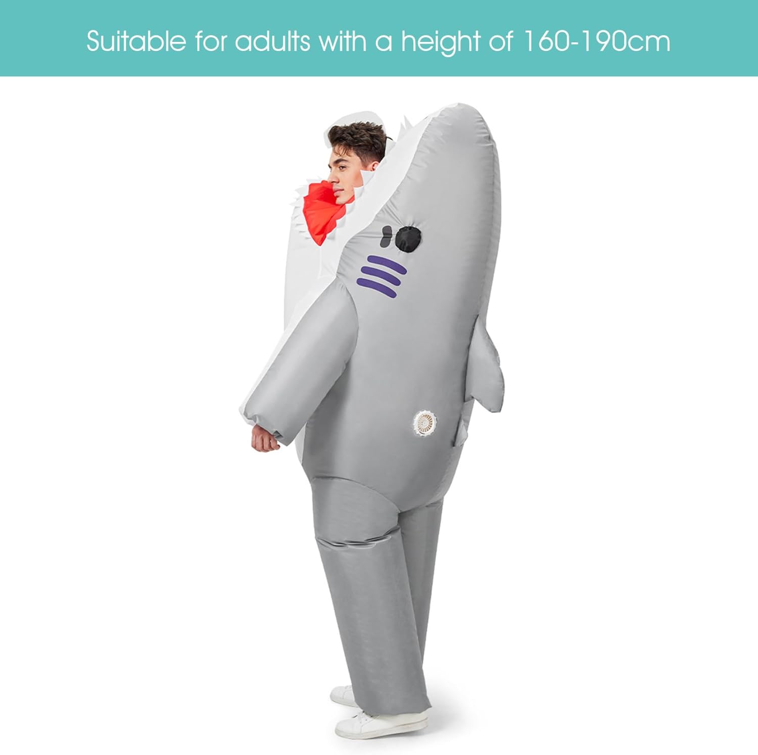 DESCRIZIONE: Costume gonfiabile da squalo, divertente costume gonfiabile da squalo di Halloween per la festa di cosplay di Halloween, adatto per adulti 160-190 cm;. Questo costume gonfiabile da squalo è realizzato per garantire comfort e divertimento con una ventola silenziosa incorporata che gonfia rapidamente il costume e lo mantiene gonfiato per ore, rendendolo un costume di Halloween ideale o un costume gonfiabile per adulti; intrattenimento, adulti alti 160-190 cm perfettamente mentre si distinguono alle feste e agli eventi cosplay;. Sia che tu stia cercando un costume da squalo adulto o un costume gonfiabile divertente, questo prodotto promette un'esperienza memorabile e divertente, progettato pensando alla sicurezza, alla durata e al divertimento. esiste una leggera differenza dovuta ai diversi display.. La confezione include 1 costume da squalo gonfiabile