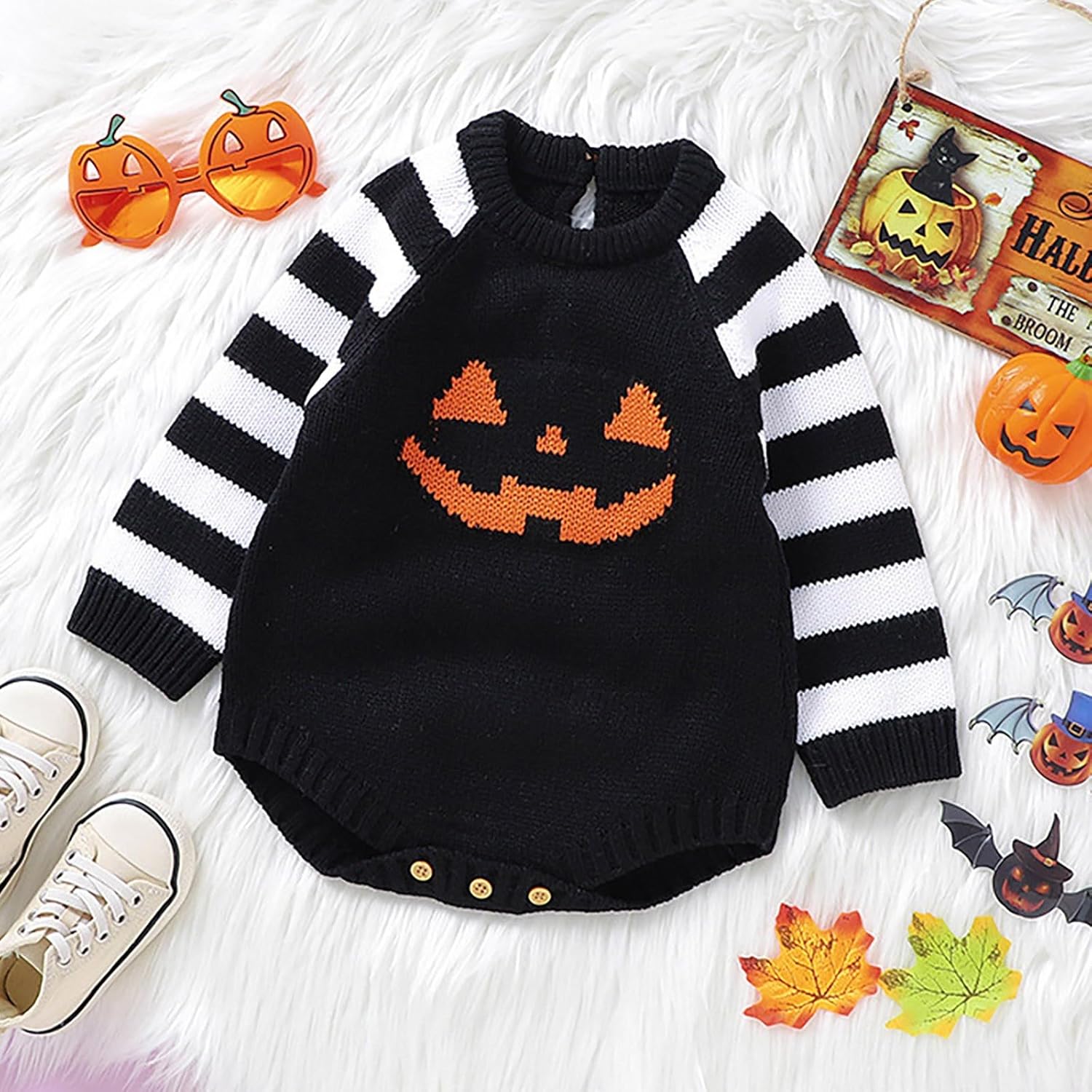 Costume Halloween Neonato Completo Halloween 0-24mesi Pagliaccetto Neonati Pumpkin da Carnevale Costume Zucca Body Invernali Vestito Bambino Tutine Bambina Ragazze Tutina Unisex Cosplay