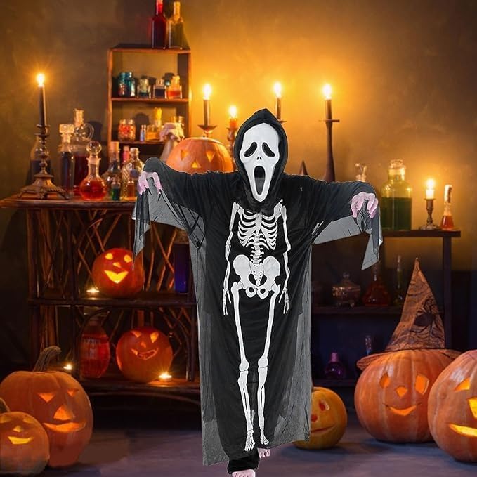 Materiale: Realizzato in materiale di tessuto sintetico, confortevole, sembra fresco e spaventoso. Contenuto della confezione: Riceverai 1 pezzo di abbigliamento osseo, 1 maschera urlante e 1 paio di guanti ossei, dandoti una sensazione terrificante e un'esperienza davvero affascinante. Taglia: L: 120 centimetri, adatto a persone tra 165 centimetri e 180 centimetri, S: 80 centimetri, adatto a bambini tra 100 centimetri e 125 centimetri. Campo di applicazione: Molto adatto per costumi di Halloween, feste a tema horror, carnevali, Pasqua, carnevali, feste in maschera, ecc. Servizio: Se avete domande durante l'acquisto del prodotto, potete contattarci in qualsiasi momento e vi risponderemo il prima possibile e risolvere il vostro problema.