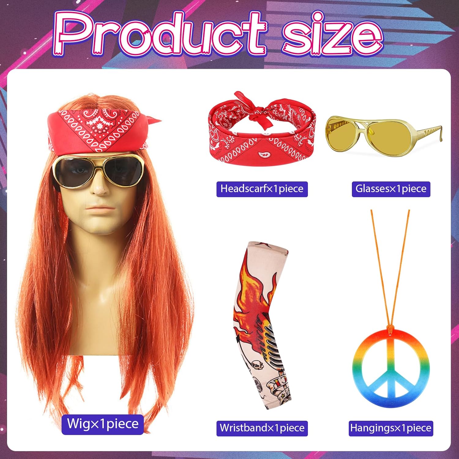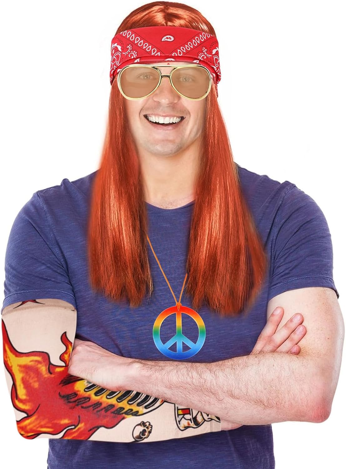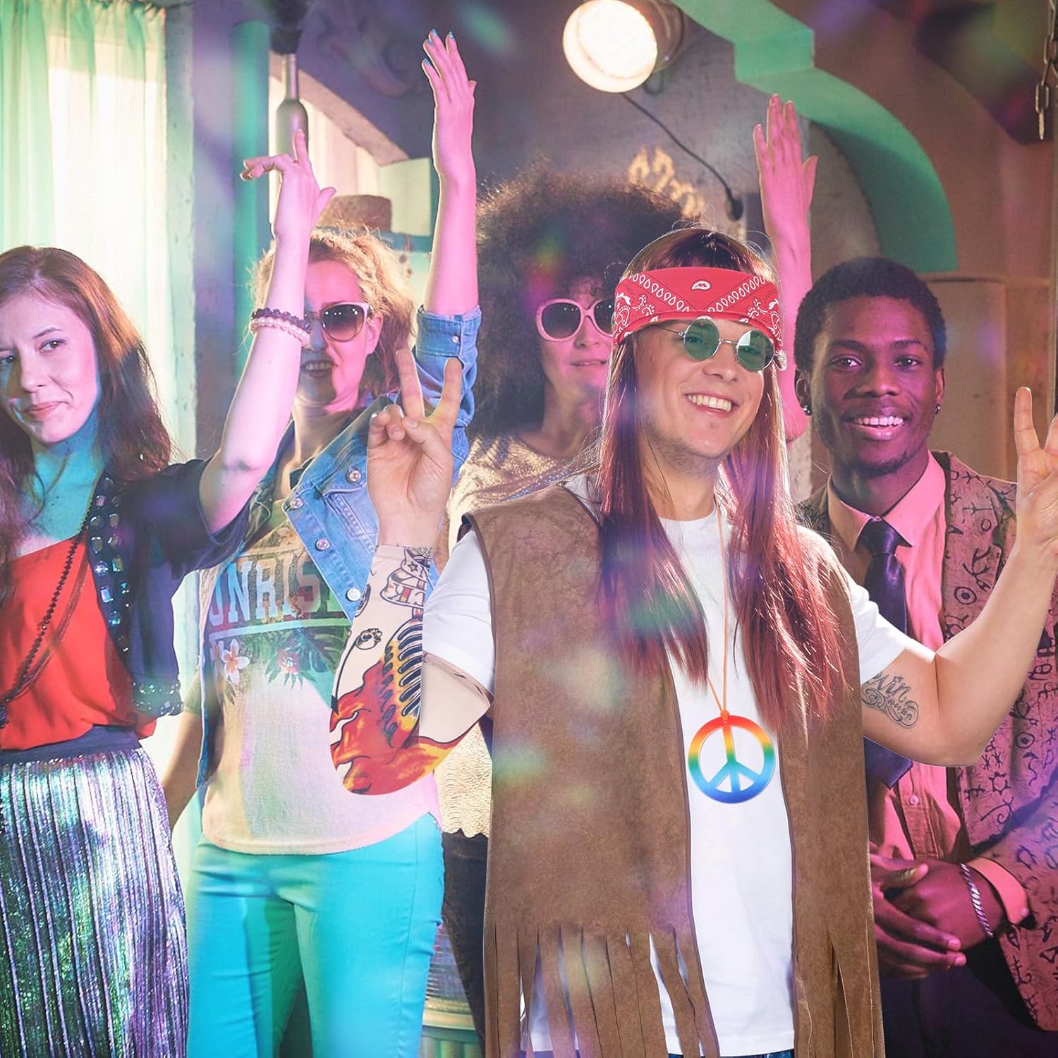 Kinwers brand: condividere la vita, trasmettere la bellezza, Kinwers si impegna a portare prodotti di alta qualità e una vita migliore ai consumatori globali Accessori di abbigliamento hippie: collana pendente PEACE, chiediamo pace La dimensione della fascia hippie tie dye è di 24cm x 48cm, con bracciale e fascia, adatta per feste a tema anni 70/80, feste in costume, feste retrò, e può anche essere abbinata ad altri vestiti Parrucca hippie, marrone, lunghezza dei capelli: circa 40-45 centimetri, materiale: 75% poliestere, 25% acrilico modificato, facile da indossare, adatta alla maggior parte degli adulti, indossa questa parrucca marrone per creare il tuo stile hippie Che tu stia partecipando a una festa di carnevale come una pop star o un africano cool, indossare questa parrucca africana marrone adulto anni '70 ti renderà il momento clou della festa. Presenta un design marrone ed è disponibile nelle taglie per adulti Qualità e impegno: aderiamo sempre al principio di "cliente in primo luogo", non solo fornendo prodotti di alta qualità, ma anche offrendo la più alta qualità del servizio post-vendita. Se avete problemi di qualità, non esitate a contattarci in qualsiasi momento