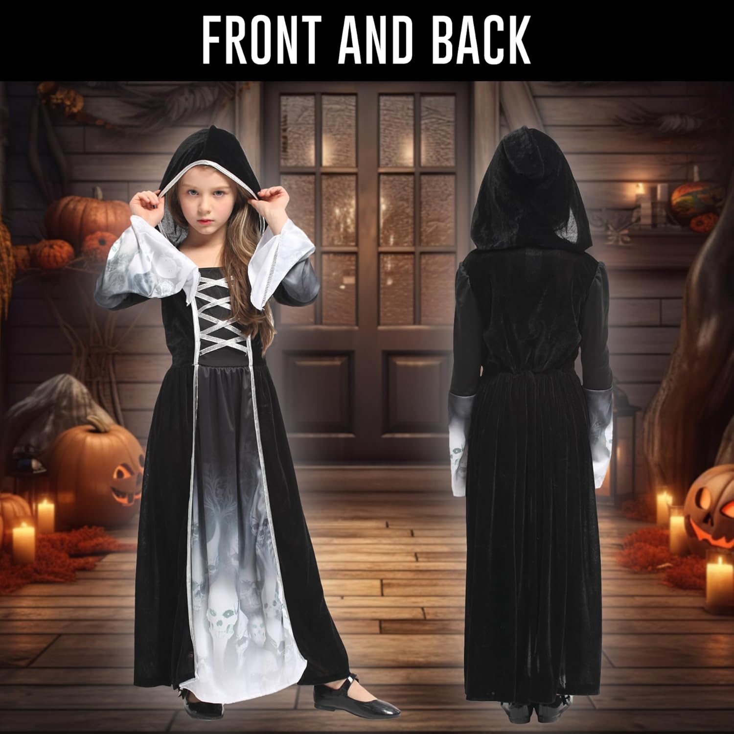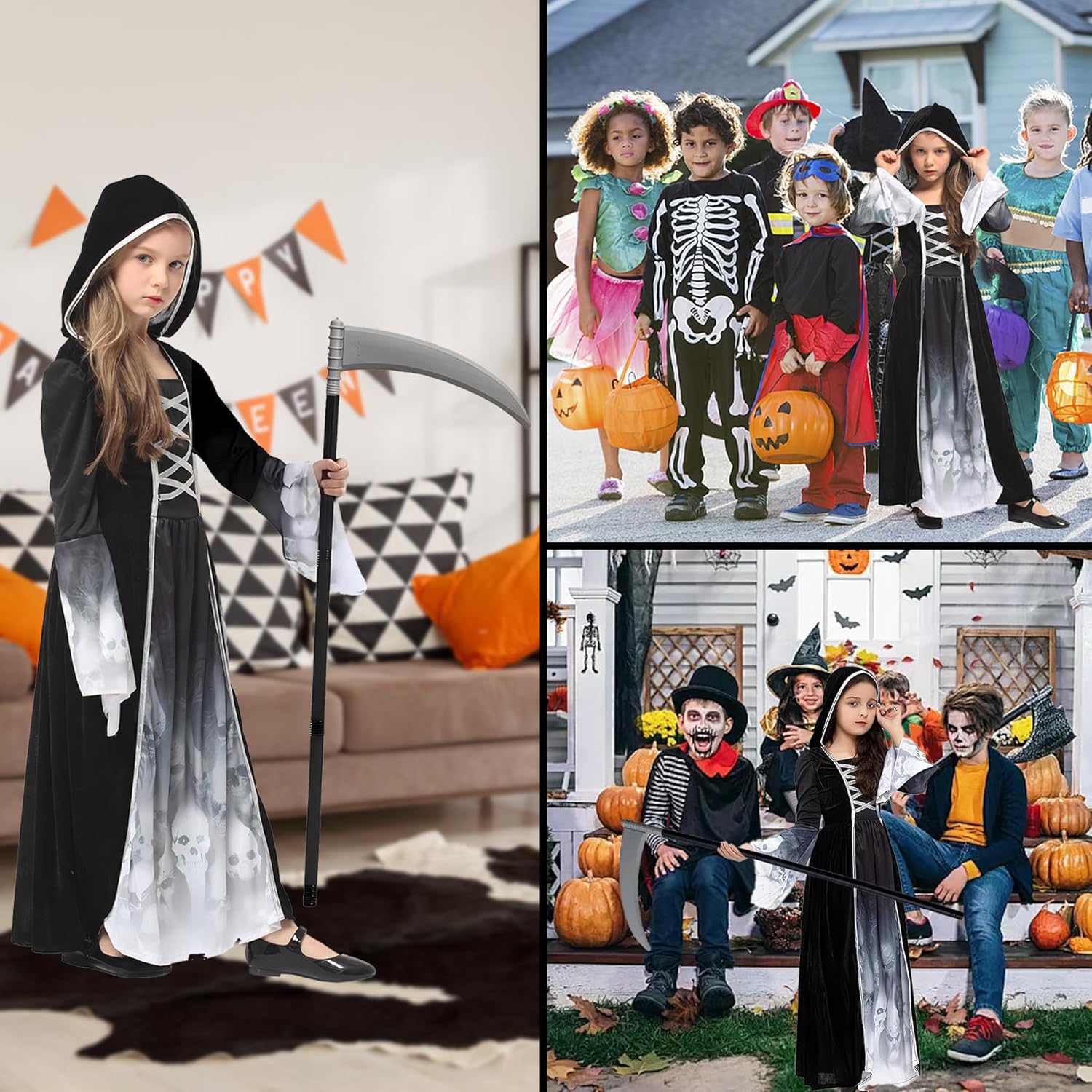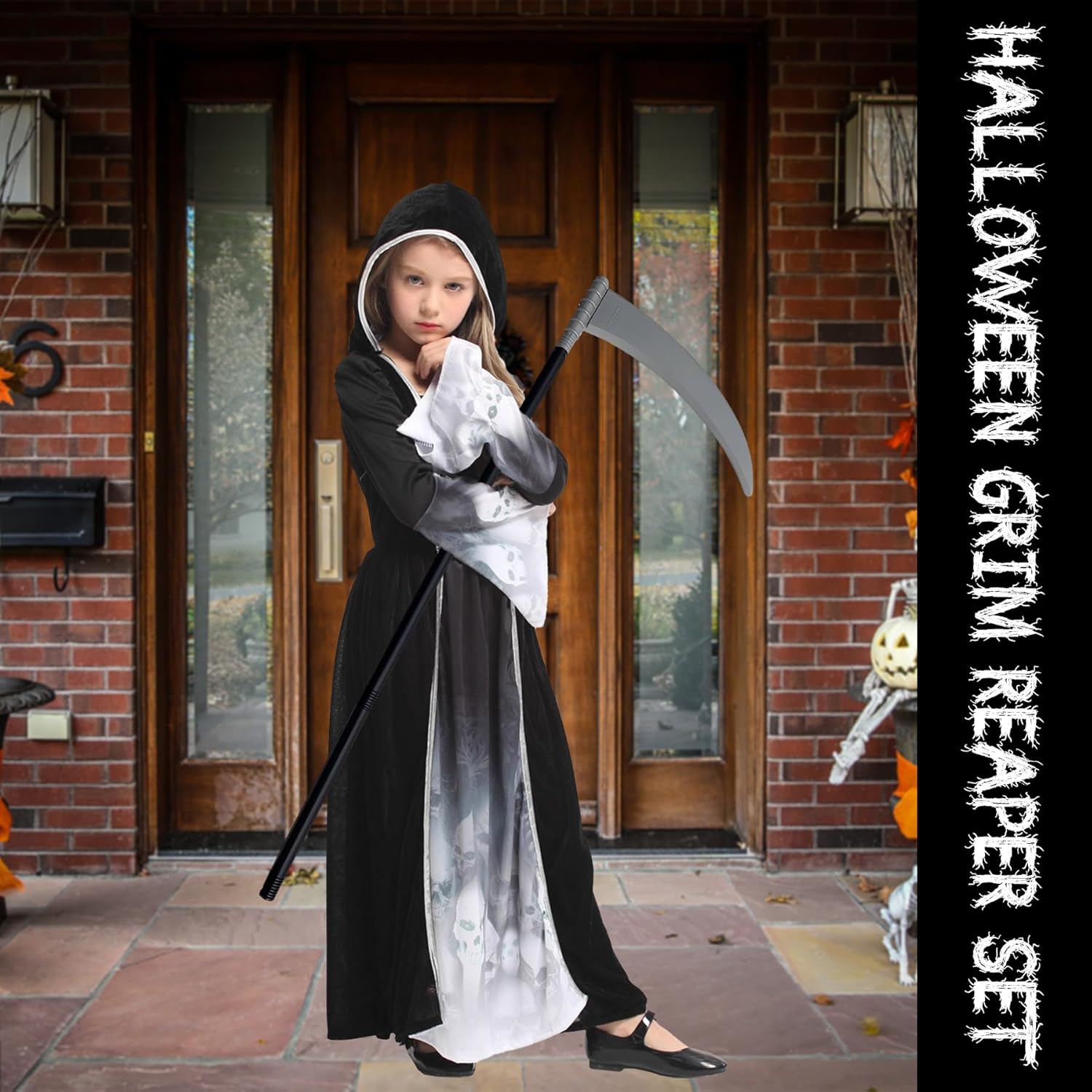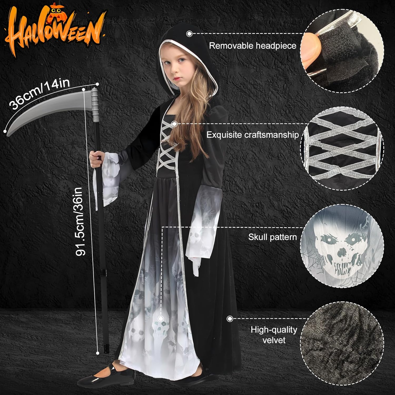 Descrizione prodotto Rendi speciale ogni festa con il costume morte bambina. Realizzato in poliestere morbido e traspirante, con cappuccio nero e falce staccabile, questo vestito Grim Reaper bambini è resistente, lavabile e perfetto per Halloween, Carnevale e cosplay. Avviso di sicurezza NO