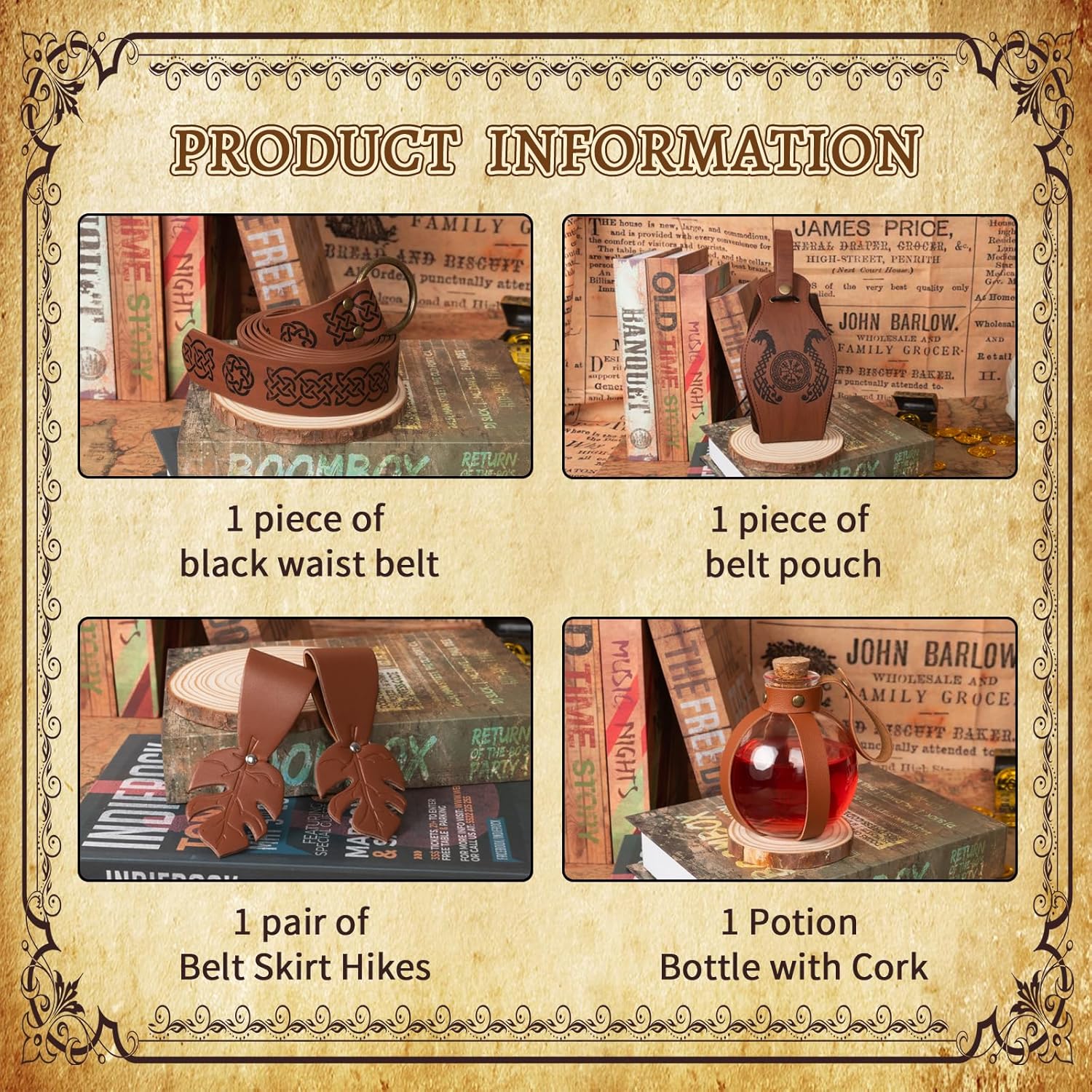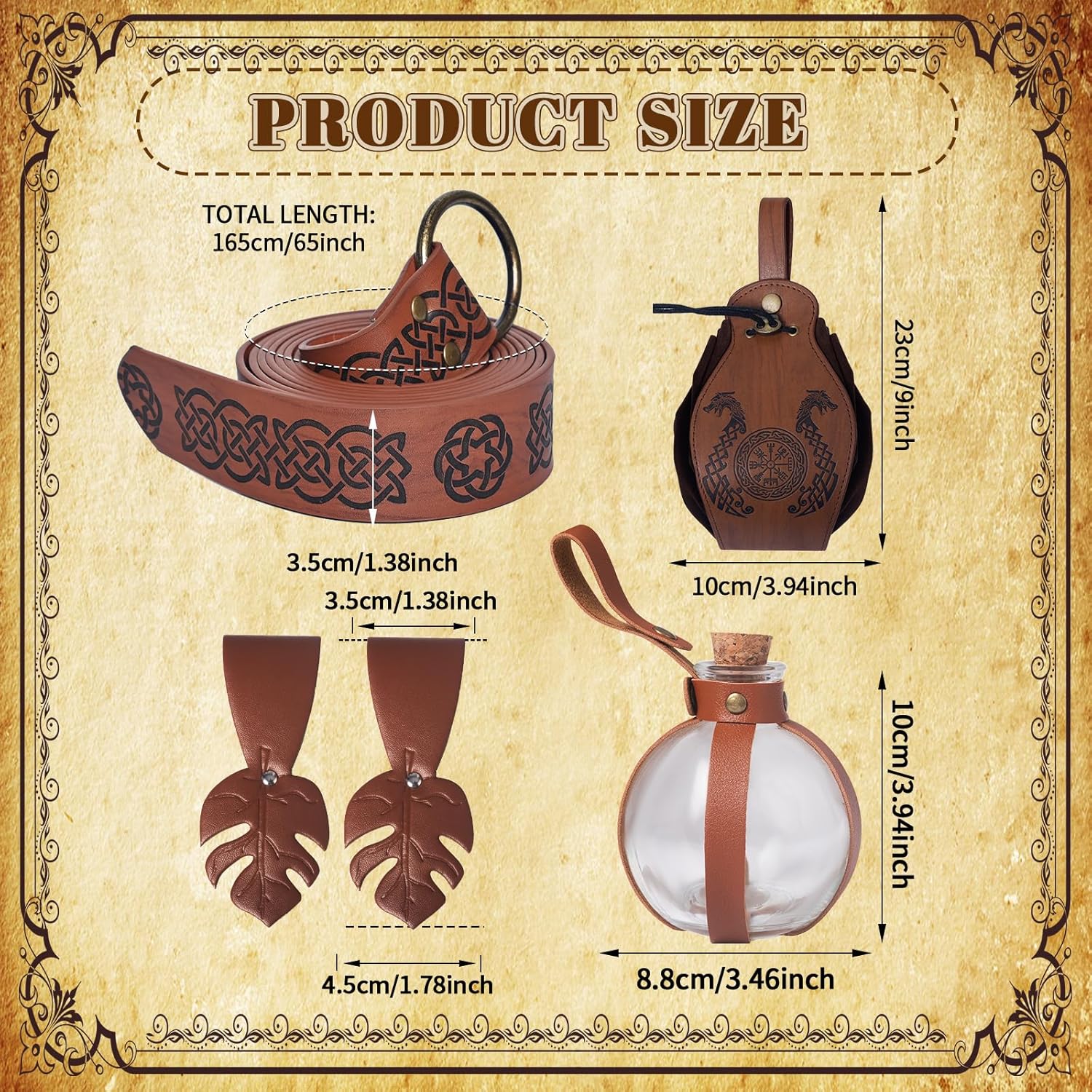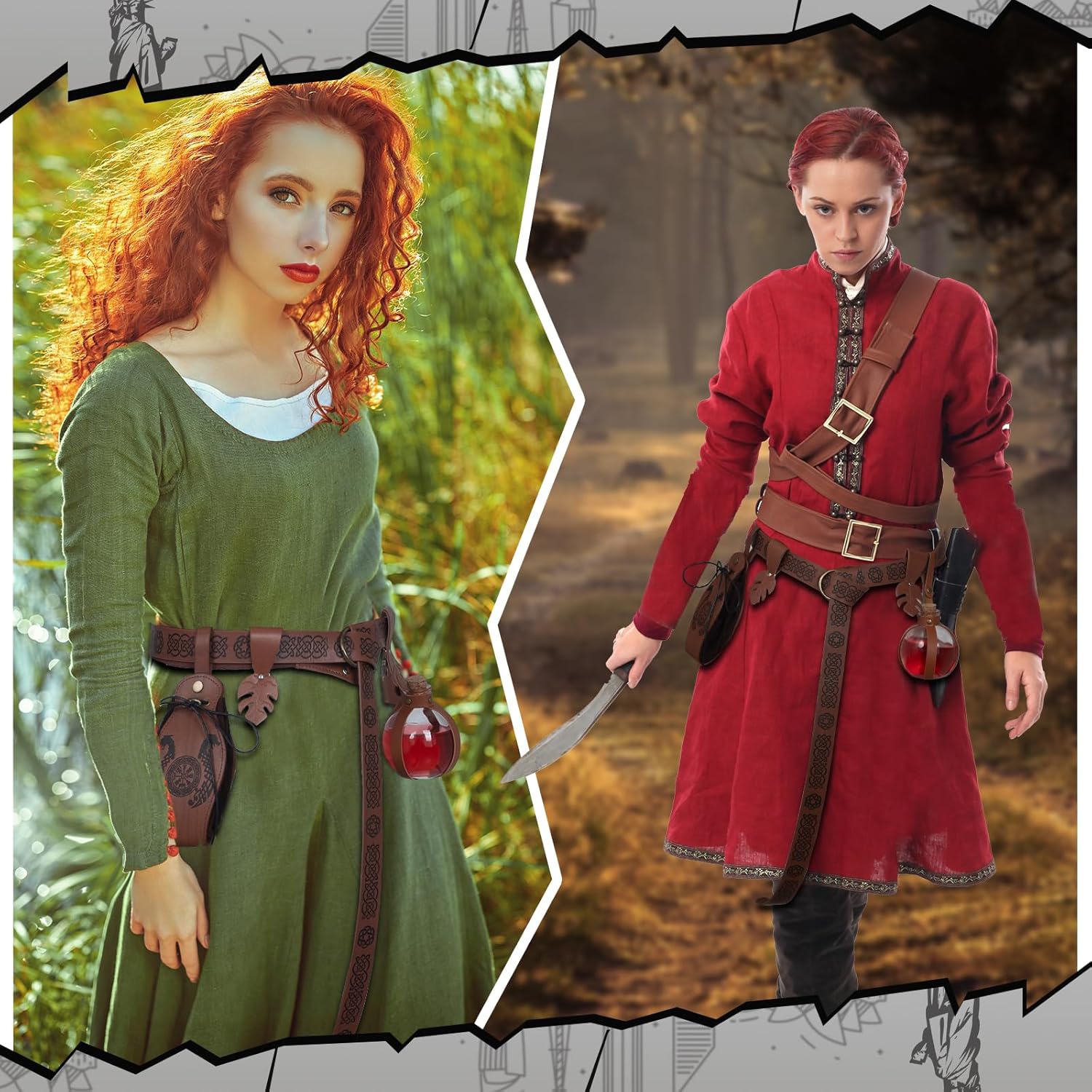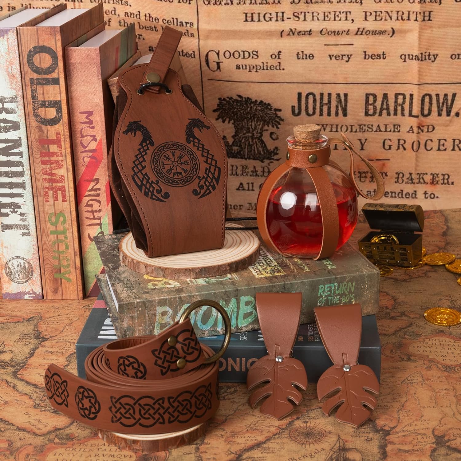 Costume Necromante per Halloween, accessori per abbigliamento medievale, abbigliamento vichingo, cintura medievale con sacchetto, fiale, passante per cintura, per cosplay strega, accessorio