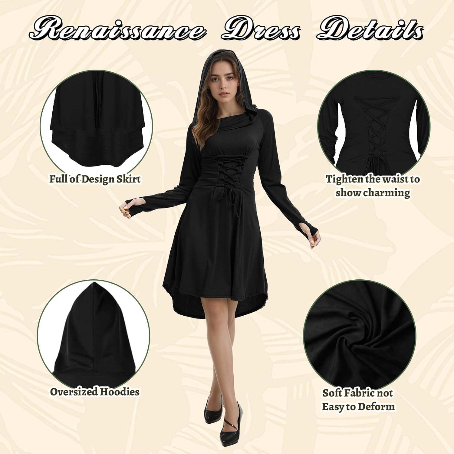Descrizione prodotto Costume rinascimentale Abito da donna Abito gotico Abito da donna medievale rinascimentale con cappuccio Costume da festa di Halloween Avviso di sicurezza No