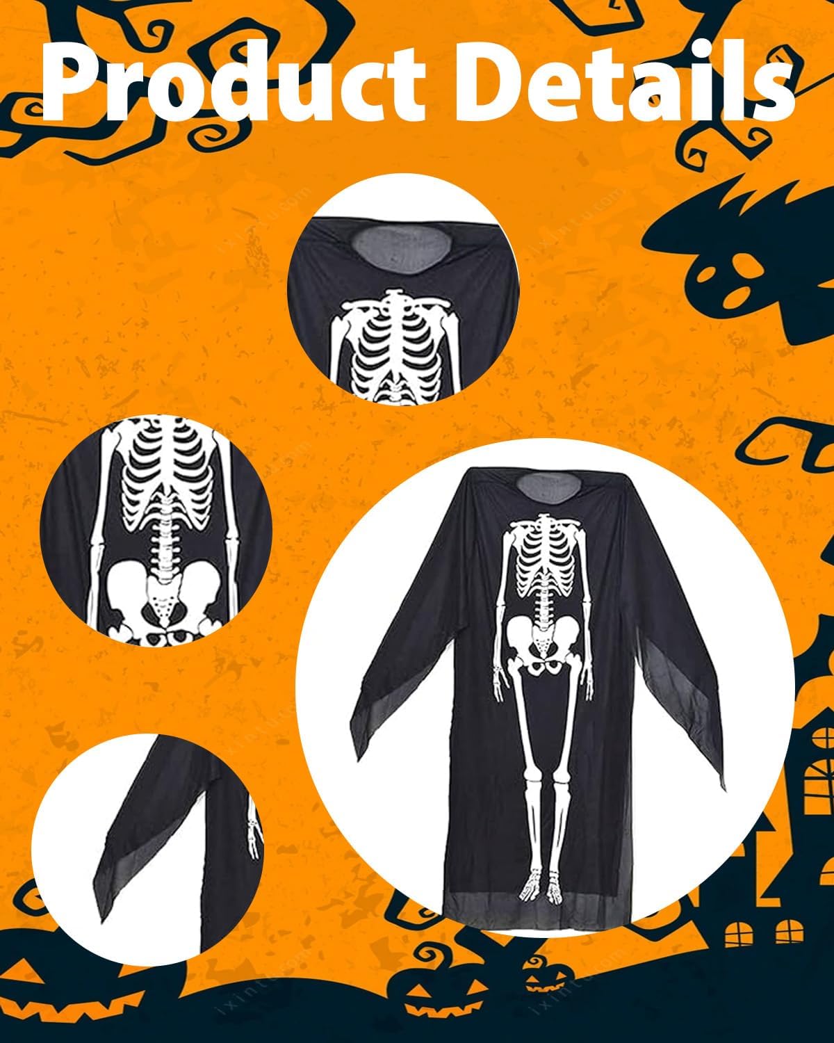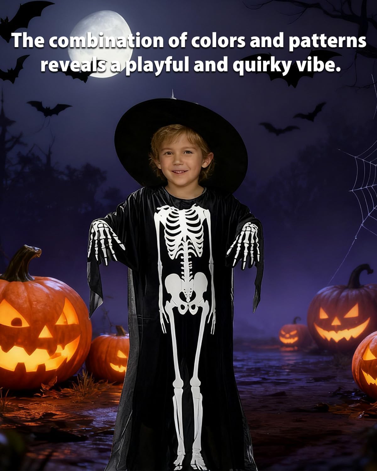 Costume di Halloween per bambini scheletro: questo costume di Halloween è stampato con un motivo scheletrico e ossa realistiche. Da lontano, sembra uno scheletro che cammina, perfetto per travestirsi a una festa di Halloween! Materiali di alta qualità: il nostro costume da scheletro per bambini è realizzato in poliestere di alta qualità, il tessuto è morbido, di alta qualità e super resistente, riutilizzato. Dimensioni del prodotto: questo costume da scheletro per bambini è lungo 90 cm, si adatta alla maggior parte dei bambini, è largo e comodo e facile da trasportare. Costume di Halloween: costumi unici di Halloween, perfetti per giochi di ruolo dei bambini, ti fa sembrare diverso, crea un senso di autenticità e grande presentazione. Decorazione ideale: perfetto per Halloween, feste, carnevale, feste in costume, cosplay, feste a tema, eventi, giochi quotidiani e molto altro ancora