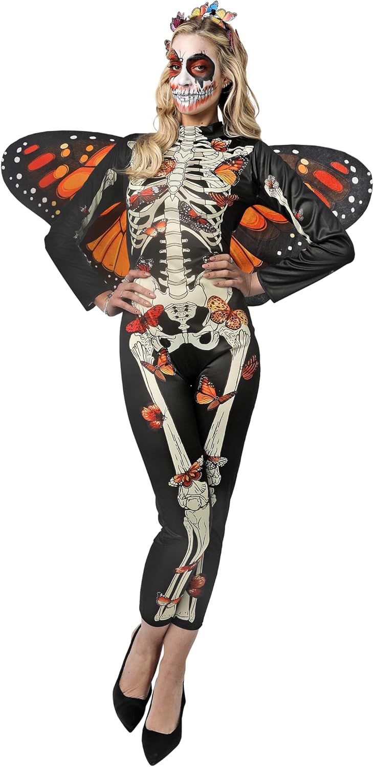 Descrizione del prodotto Questo costume da Lady Butterfly, taglia unica, è perfetto per festeggiare Halloween o qualsiasi festa a tema. Bellissimo design a scheletro con ali di farfalla. Ti distinguerai in ogni celebrazione con questo costume accattivante e divertente. Ideale per le donne che cercano un look spettrale ma elegante. Sorprendi tutti con il tuo stile unico Avviso di sicurezza Attenzione: tenere lontano dal fuoco.