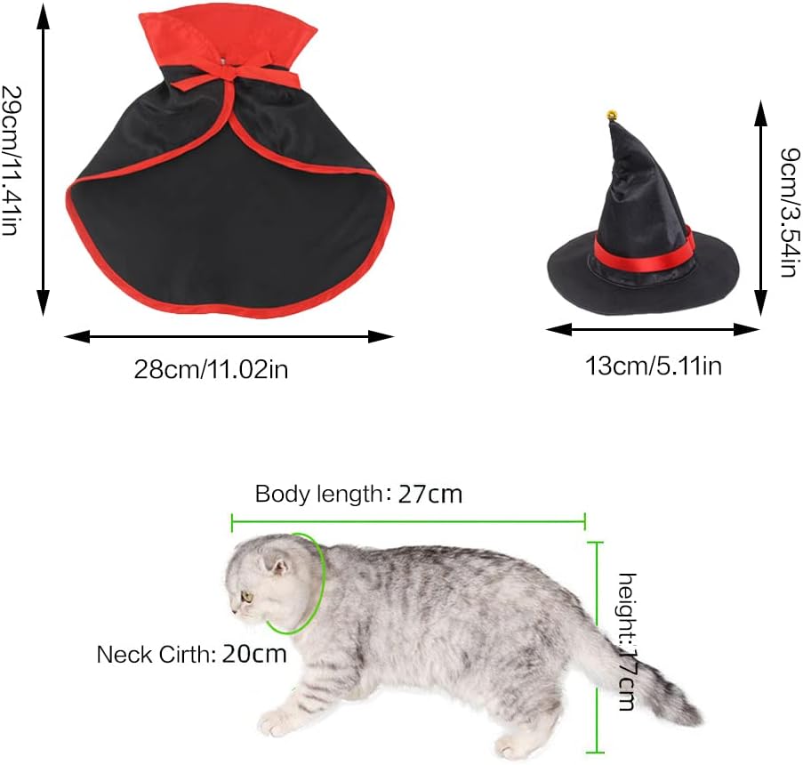 1. 【Materiale di alta qualità】: i costumi di Halloween per cani e gatti sono realizzati in tessuto di poliestere di alta qualità, comodo da indossare, morbido, leggero e traspirante, non causerà disagio agli animali domestici e può essere utilizzato con sicurezza. 2. 【Set perfetto】: il costume di Halloween per animali domestici include 1 mantello da vampiro e 1 cappello da mago con una piccola campana sulla parte superiore del cappello per soddisfare le esigenze del costume di Halloween del tuo animale domestico. 3. Facile da indossare: la dimensione massima del mantello è di 36 cm, con fibbia autoadesiva facile da regolare, si prega di misurare la dimensione del collo del vostro animale domestico prima dell'acquisto. Il cappello ha un cordoncino elastico regolabile oppure puoi preparare un cordoncino da indossare attraverso il cappello. 4. 【Set di Halloween】: elementi vampiri carini e spaventosi possono portare te e i tuoi animali domestici nell'atmosfera horror di Halloween. Il tuo animale domestico assomiglierà a un elfo vampiro e attirerà facilmente l'attenzione di tutti i partecipanti alla festa. 5. Molteplici occasioni: i costumi di Halloween per cani non sono perfetti solo per Halloween, ma sono anche ottimi costumi per feste di animali domestici, Natale, oggetti fotografici, compleanni di animali domestici e molte altre occasioni. Rendi carino il tuo animale domestico.