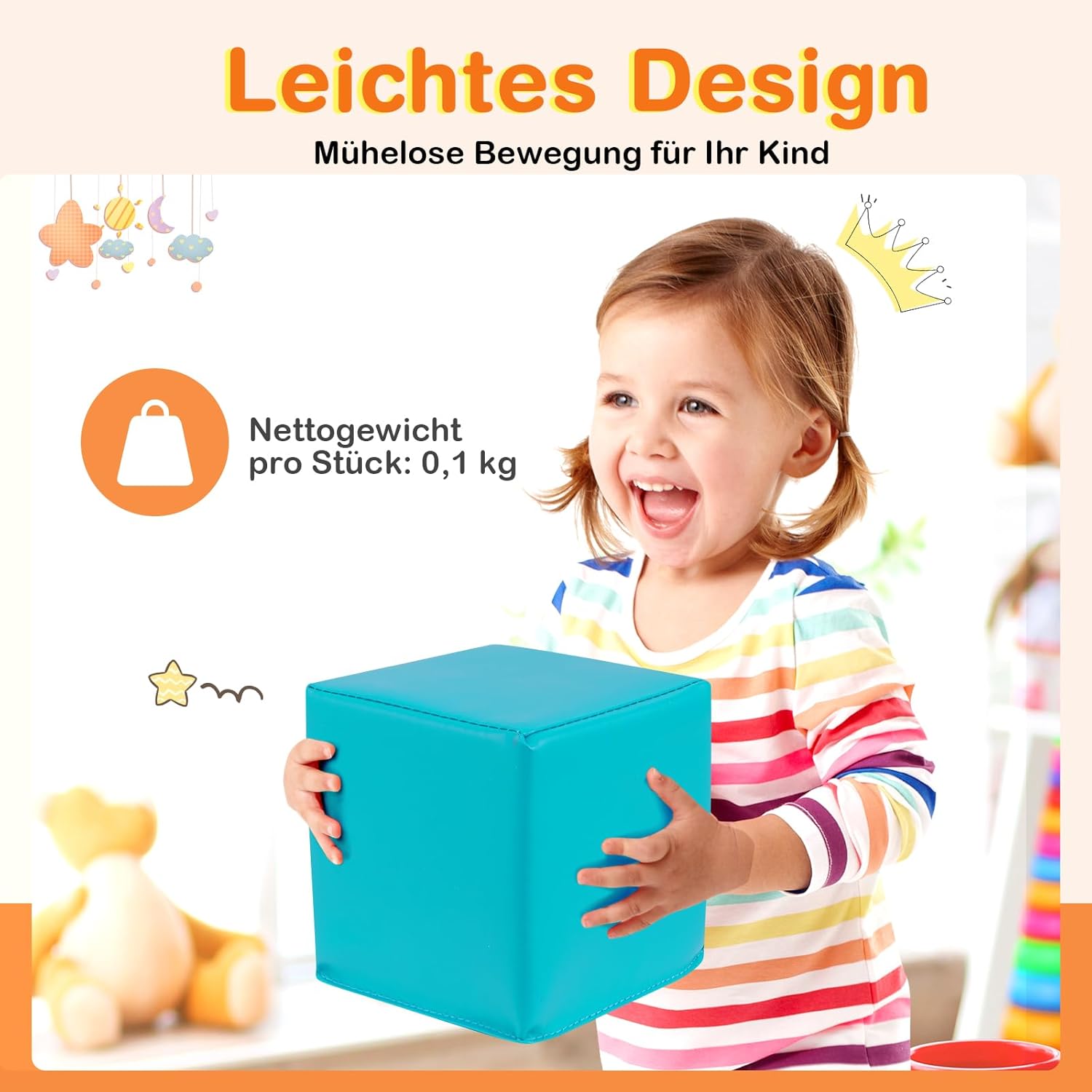 La sicurezza prima di tutto: questi morbidi blocchi sono realizzati in morbida schiuma EPE, che garantisce la sicurezza dei bambini durante il gioco e riduce il rischio di lesioni. Inoltre, il rivestimento in PU delicato sulla pelle e resistente agli strappi con cuciture rinforzate è realizzato con perizia e progettato per una lunga durata. 【Gioco versatile】 Questo set di mattoncini in schiuma da 12 pezzi realizzato con morbidi cubetti di schiuma EPE consente un facile impilamento e arrampicata, incoraggiando l'immaginazione e la creatività dei bambini mentre sviluppano le loro capacità motorie e la coordinazione occhio-mano. 【Colori vivaci】 Il set di blocchi da arrampicata da 12 pezzi include 6 colori diversi - viola, blu scuro, blu, nero, rosa e rosa rossa - che attirano l'attenzione dei bambini e supportano il riconoscimento dei colori e lo sviluppo visivo. 【Facile da pulire】 La copertura in PU liscia e idrorepellente può essere facilmente pulita e pulita, facilitando la manutenzione e garantendo che i blocchi giganti rimangano igienici e freschi. 【Ampia applicazione】Ogni cubo di schiuma misura 14 x 14 x 14 cm, rendendolo perfetto per le mani dei bambini piccoli. Questo set di mattoncini da costruzione in schiuma da 12 pezzi è ideale per camerette, asili nido, culle e altro ancora.