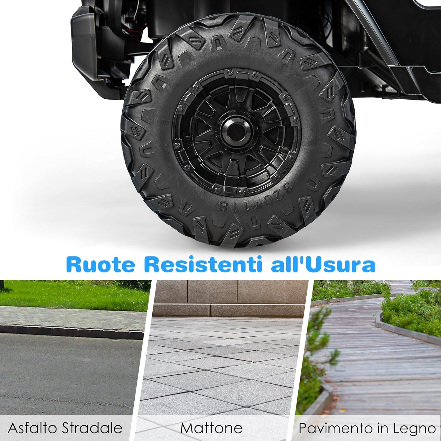 【Avvio Morbido e Velocità Opzionali】Due motori separati sono abbastanza forti da far muovere l'auto in modo fluido, mentre la sua bassa partenza è utile per ottenere una lenta accelerazione all'inizio e fermarsi senza spaventare i bambini. Inoltre, sono disponibili due velocità: bassa velocità di 2,6-3km/h e alta velocità di 5,5-6km/h, per soddisfare le diverse esigenze. 【Doppie Modalità di Controllo per la Sicurezza】I genitori possono controllare il camioncino con il telecomando 2,4G incluso. In particolare, è dotato di un interruttore di accensione e di altri pulsanti per cambiare la direzione di marcia, le luci e la velocità. Inoltre, l'iniziativa può essere affidata ai bambini, consentendo loro di controllare manualmente ogni funzione del cavalcabile. 【Musica per un Maggiore Piacere】Per rendere più piacevole la guida è presente un lettore musicale. Dispone di 3 canzoni preimpostate e di una funzione radio per deliziare i bambini, mentre la porta USB e il Bluetooth consentono di collegare il cavalcabile e di riprodurre la musica scaricata in anticipo. Il livello residuo della batteria è indicato dal numero visualizzato. 【Dettagli per Una Guida Piacevole】Lo spazio interno dell'auto giocattolo imita vividamente un'auto vera. In particolare, i bambini possono premere i pulsanti sul volante per far suonare il clacson e il motore. Insieme alle luci anteriori e posteriori, avranno la sensazione di guidare davvero sulla strada. L'auto è progettata per bambini dai 3 agli 8 anni. 【Perfetto per i Giochi all'Aperto】Dotato di 4 ruote stabili, con un diametro di 30 cm, il cavalcabile è applicabile a strade asfaltate, in mattoni e prati. Inoltre, il PP e il ferro di prima qualità utilizzati sono molto resistenti e aumentano la capacità di carico complessiva fino a 30 kg. Infine, il telecomando e il volante necessitano di batterie (non incluse).