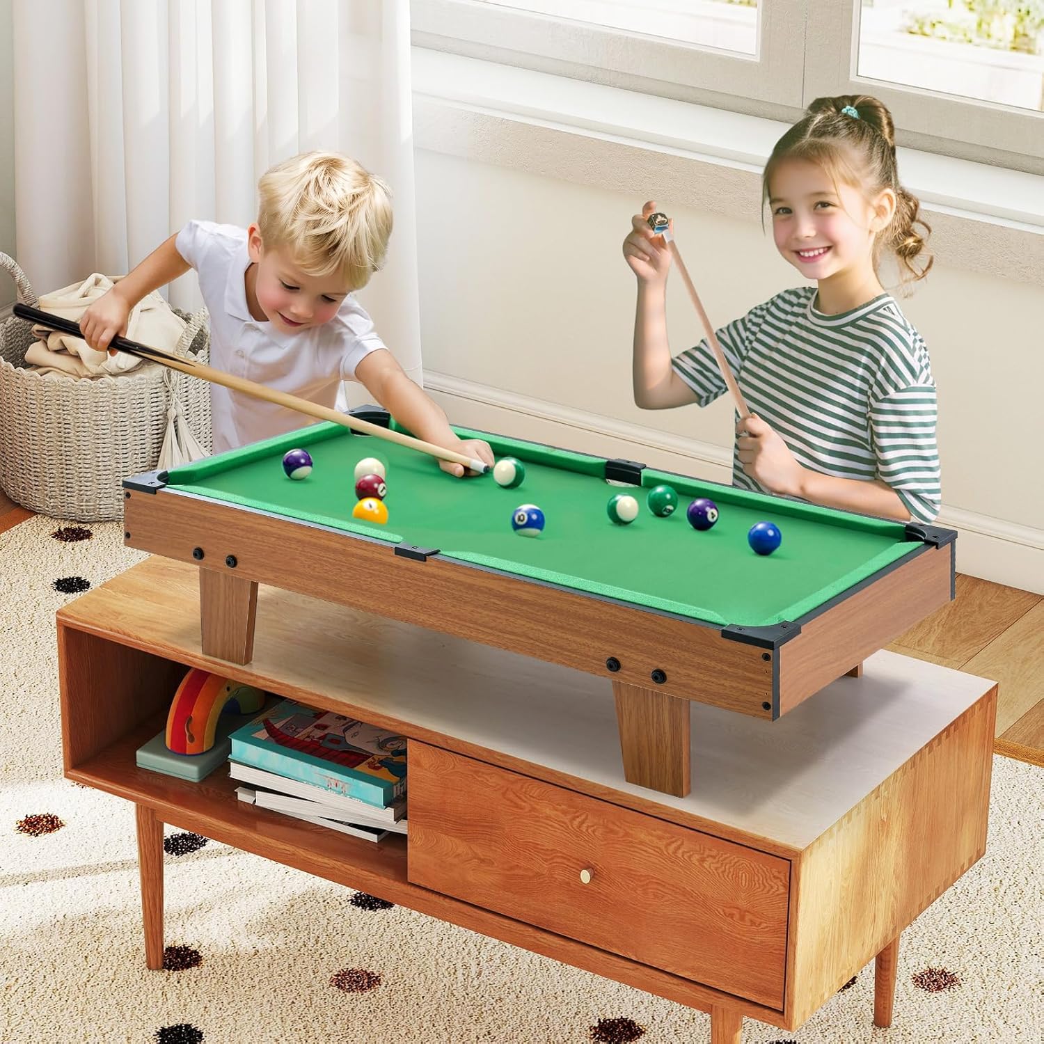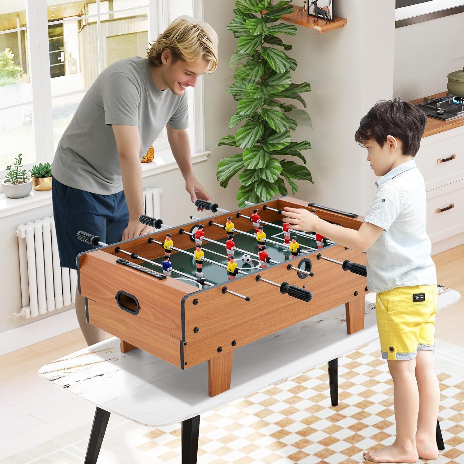 【Tavolo da gioco 4 in 1】 Il nostro tavolo da gioco multifunzionale combina calcio balilla, ping pong, biliardo e hockey in uno, offrendo divertimento senza fine alle feste e alle riunioni di famiglia. La superficie del tavolo intercambiabile rende semplicissimo il passaggio tra i 4 tavoli. I nostri giochi sono utili per migliorare la coordinazione occhio-mano e le capacità motorie. 【Costruzione sicura e stabile】 Realizzate con materiali durevoli e di alta qualità, le gambe del tavolo sono molto resistenti. Anche durante una partita accesa non devi preoccuparti che il tavolo si ribalti. Inoltre, le viti tengono insieme bene la struttura, il che significa che il tavolo può durare per anni. 【Materiale di alta qualità】 Realizzato con materiale ecologico e pannelli MDF atossici, il piano del tavolo fornisce una superficie liscia e a basso attrito per aiutarti a vincere le partite. Inoltre, le barre del biliardino sono realizzate in acciaio inossidabile di alta qualità, che le rende resistenti alla ruggine, ai danni chimici e ai graffi. 【Dimensioni compatte e facile da riporre】Se desideri più di un semplice tavolo ma non hai molto spazio, il nostro tavolo da gioco combinato 4 in 1 multifunzionale da 81 x 43 x 30,5 cm (L x P x A) è la scelta perfetta per te. Le dimensioni compatte non occupano troppo spazio, quindi puoi riporlo dove vuoi. 【Divertimento in famiglia con i giochi】 Il nostro tavolo da gioco combinato offre tanto divertimento per tutta la famiglia e garantisce divertimento! I 4 giochi aiutano i bambini a migliorare le capacità motorie, la coordinazione occhio-mano e il lavoro di squadra e consentono anche agli adulti di alleviare lo stress lavorativo. Goditi ore di divertimento con la tua famiglia.