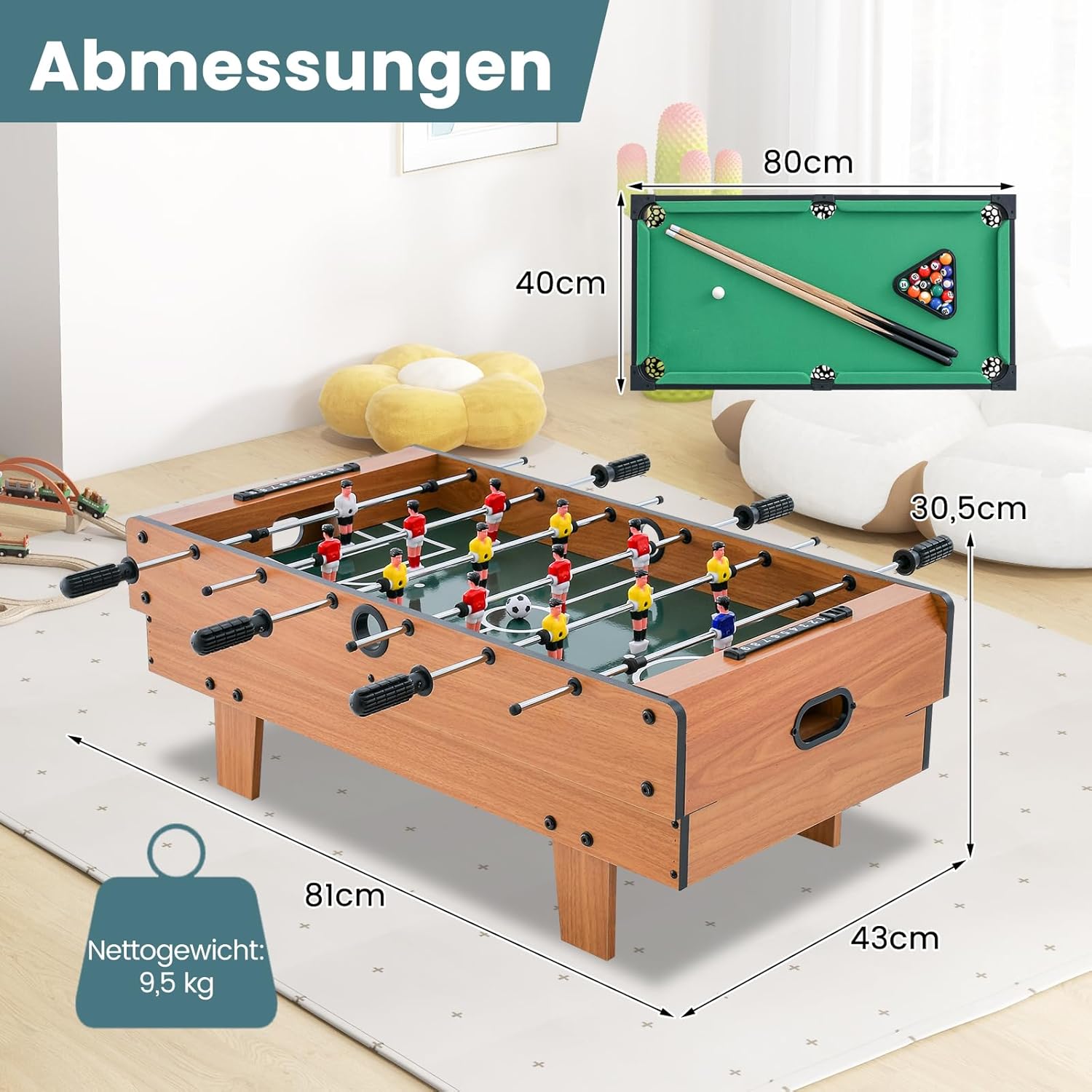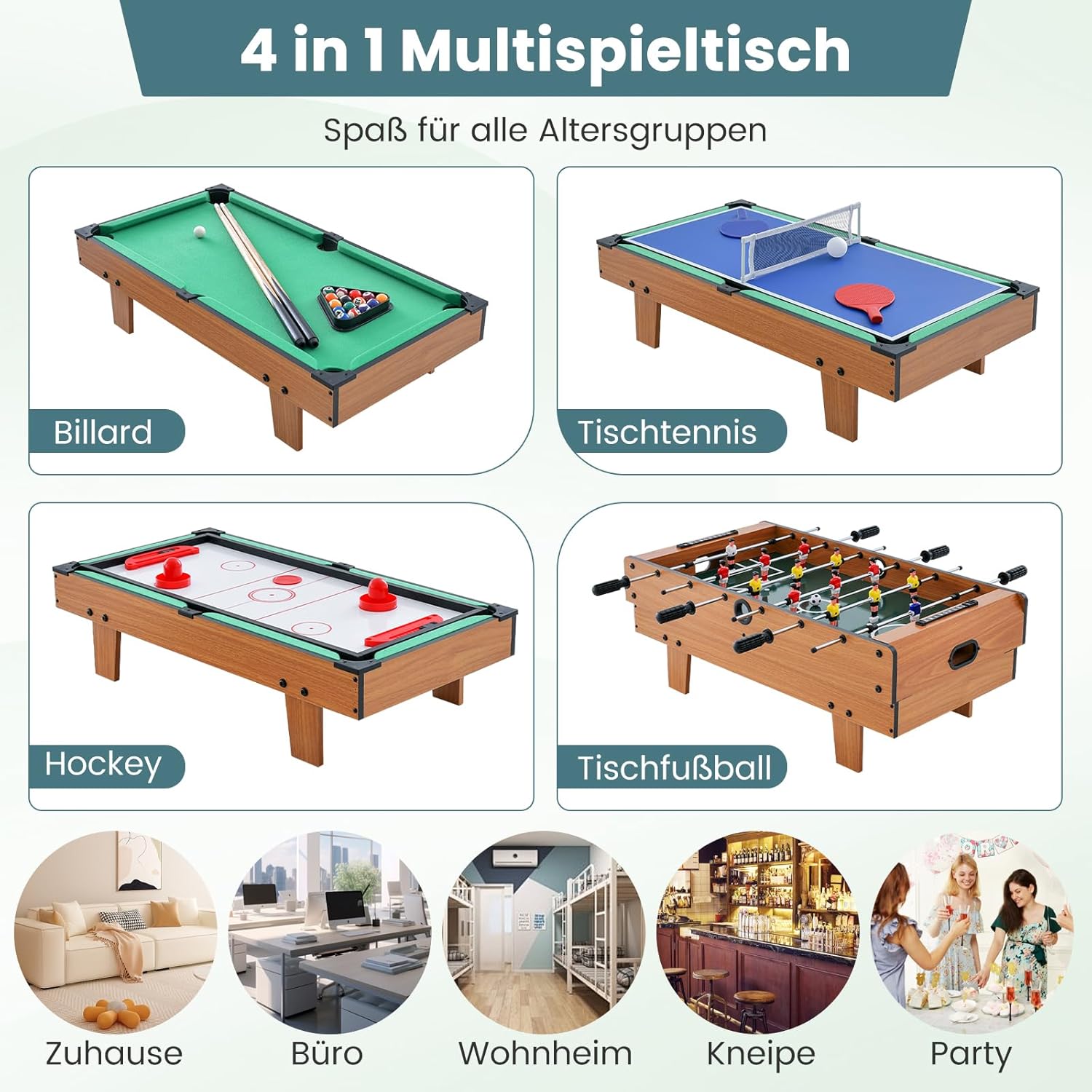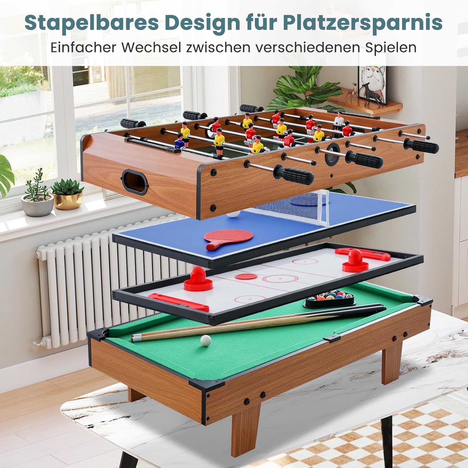 | enthaltene Komponenten | 1 x 4 in 1 Spieltisch, 1 x Anleitung |