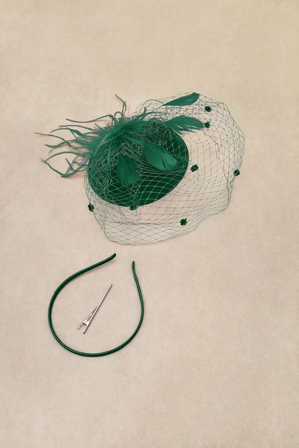 Materiale: Poliestere, velo e piume. Dimensioni: Taglia unica con fermaglio per capelli e fascia delicatamente pieghevole. Facile da indossare: Si fissa facilmente e saldamente con un fermaglio per capelli in metallo e una fascia per capelli. Il cerchietto è staccabile dal cappello a forma di scatola. Caratteristiche: Composto dalla base del cappello a cassetta e dal cerchietto, il velo a rete e le eleganti piume aggiungono fascino e fantasia al vostro abbigliamento. È ora di aggiungere questo fascinator glamour alla vostra collezione. Occasioni: Adatto per matrimonio, tea party, cocktail, festa Gatsby anni '20, chiesa, Kentucky Race, corse di cavalli, carnevali, Halloween, ecc.