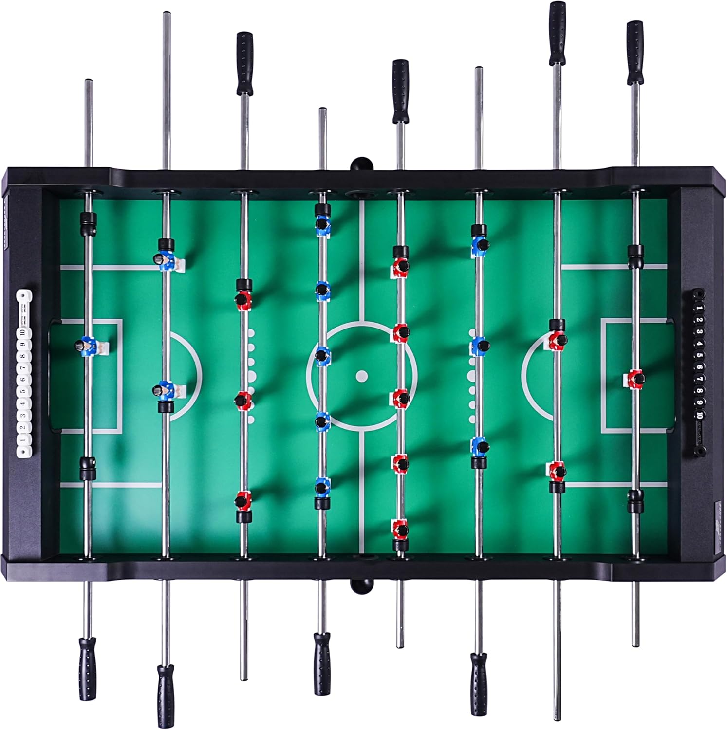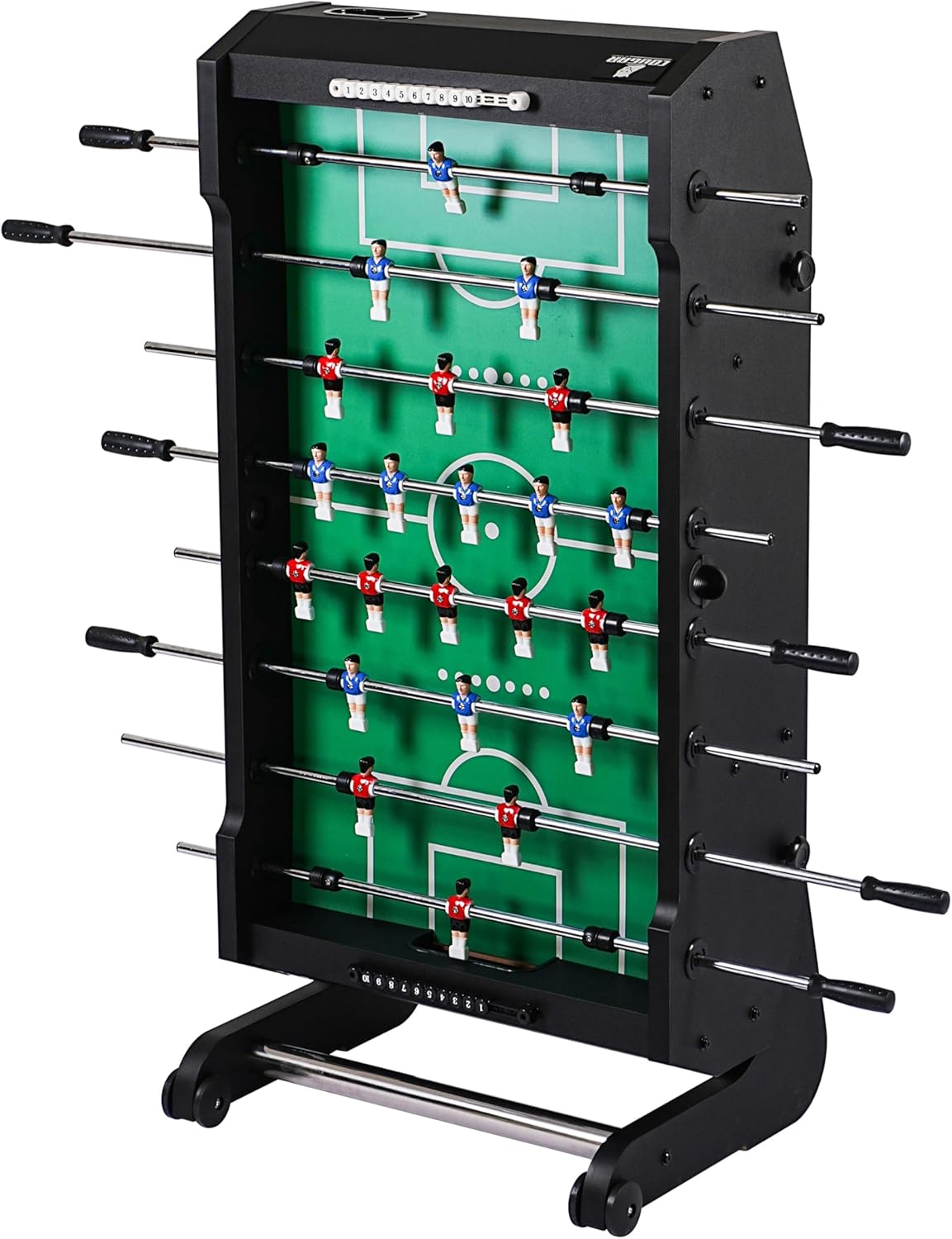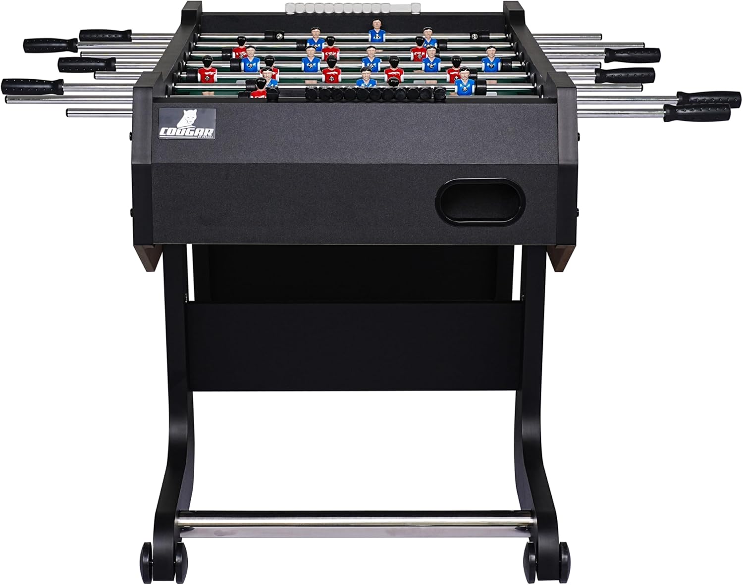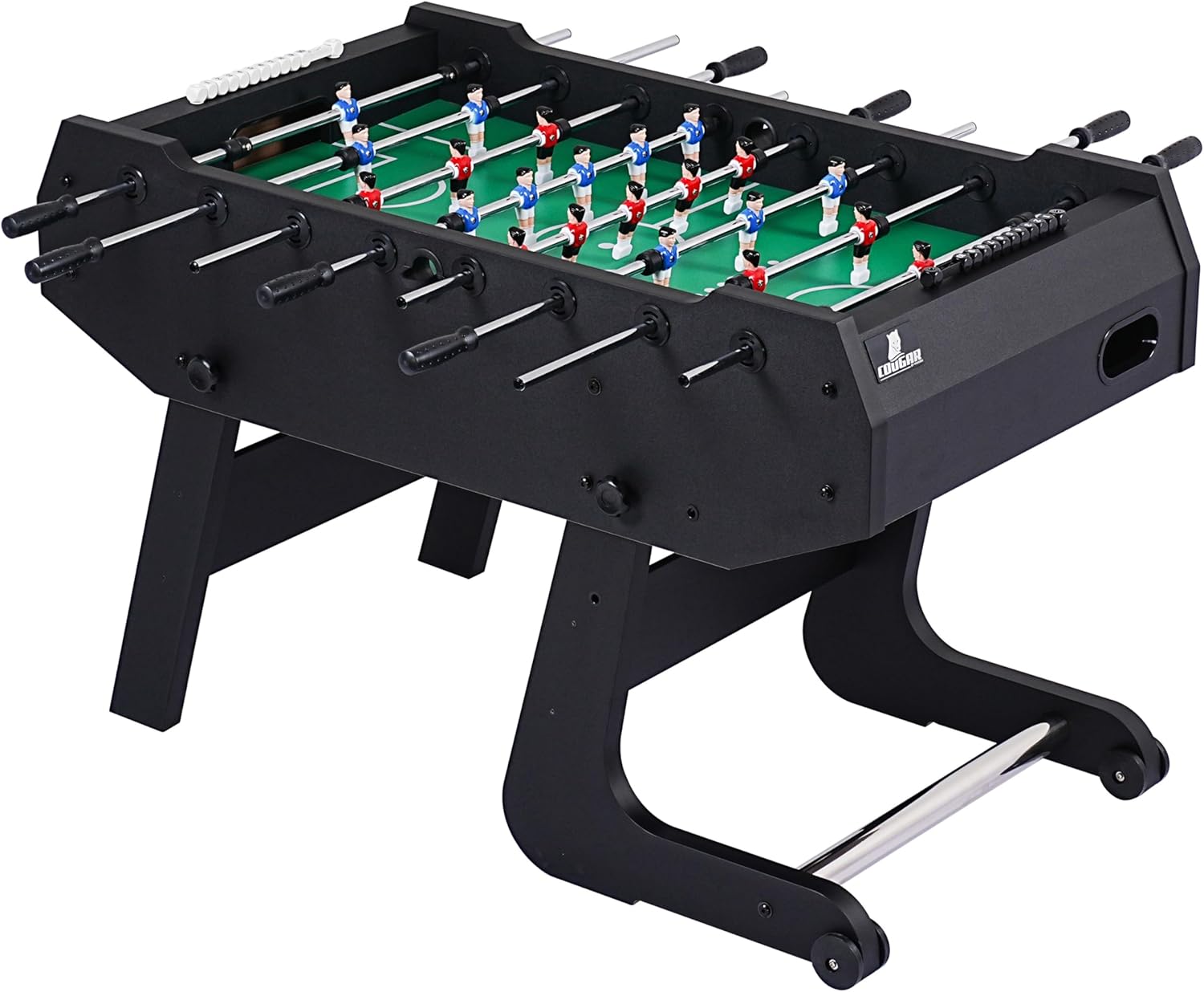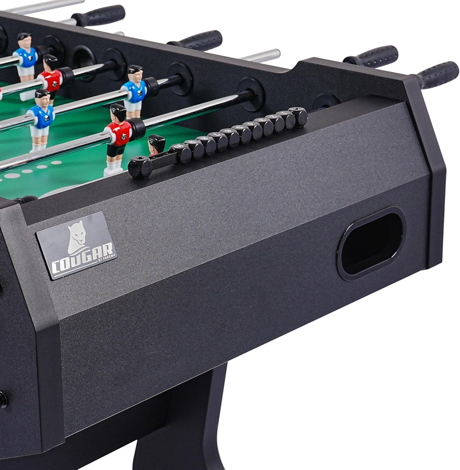 CALCIO BALILLA COMPATTO E STABILE – FAMIGLIE E AMICI: Il tavolo da calcio balilla Powerkick Pro porta la vera atmosfera dello stadio nel salotto di casa. Che sia per bambini o adulti, è perfetto per 2-4 giocatori e, grazie alla sua struttura robusta, garantisce partite emozionanti. Il piano di gioco resistente con finitura in melamina antigraffio e la struttura stabile garantiscono un divertimento duraturo... PIEGHEVOLE E SALVASPAZIO - DESIGN INTELLIGENTE: il Powerkick Pro convince con un innovativo sistema pieghevole. Dopo aver giocato, il tavolo può essere facilmente ripiegato e riposto in modo salvaspazio. Questo lo rende perfetto per le famiglie che hanno poco spazio a disposizione. Il campo da gioco in MDF dello spessore di 9 mm garantisce un'elevata resistenza ai graffi e rimane in ottime condizioni anche dopo un uso intensivo. ASTE ROBUSTE – PER PARTITE INTENSE: con un campo da gioco di 116,6 x 68 cm e angoli rialzati, la pallina rimane sempre in gioco. Le aste in acciaio cromato con uno spessore di 2.2 cm sono notevolmente più robuste delle aste standard e garantiscono una lunga durata. Grazie alle morbide impugnature in TPR, potrai godere della massima presa e del massimo comfort, mentre i paracolpi mantengono la distanza dai bordi del campo di gioco. DIMENSIONI E PESO: con dimensioni di 139 x 74 x 88 cm, il Powerkick Pro offre spazio sufficiente per partite emozionanti. Il campo di gioco misura 116 x 68 cm ed è spesso 9 mm, ideale per un gioco preciso e veloce. Una volta ripiegato, il tavolo occupa solo 74 x 58 x 154 cm, perfetto per essere riposto. Con un peso di 55 kg, è stabile e sicuro, senza scivolare. Robusto, salvaspazio e pronto per un divertimento intenso! COUGAR: Porta l'emozione di una partita a calcio balilla, air hockey o biliardo nelle tue quattro mura con Cougar! Con i tavoli da gioco Cougar, ore di divertimento sono garantite per grandi e piccini. I nostri prodotti sono realizzati con materiali di alta qualità e sono adatti ai bambini (e agli adulti) a partire dai 5 anni.