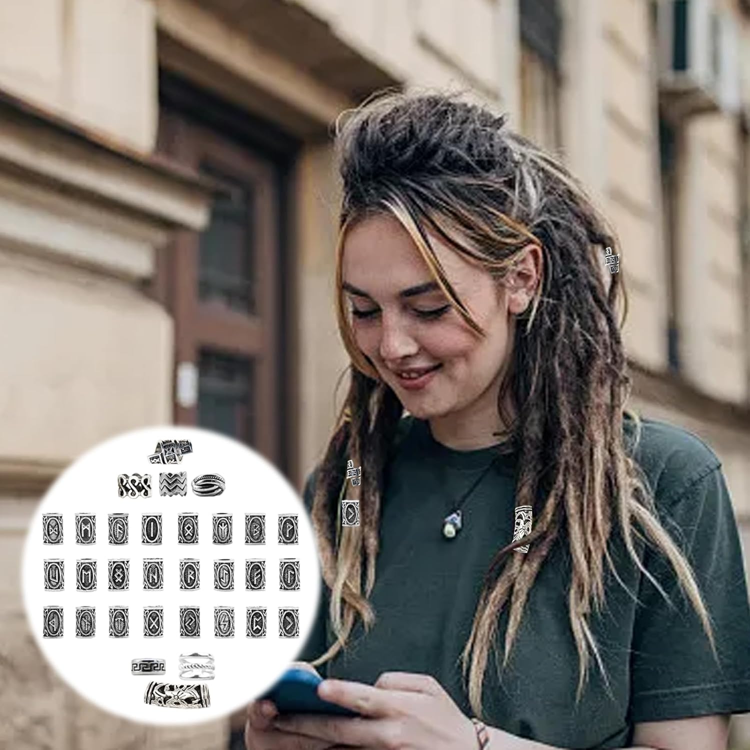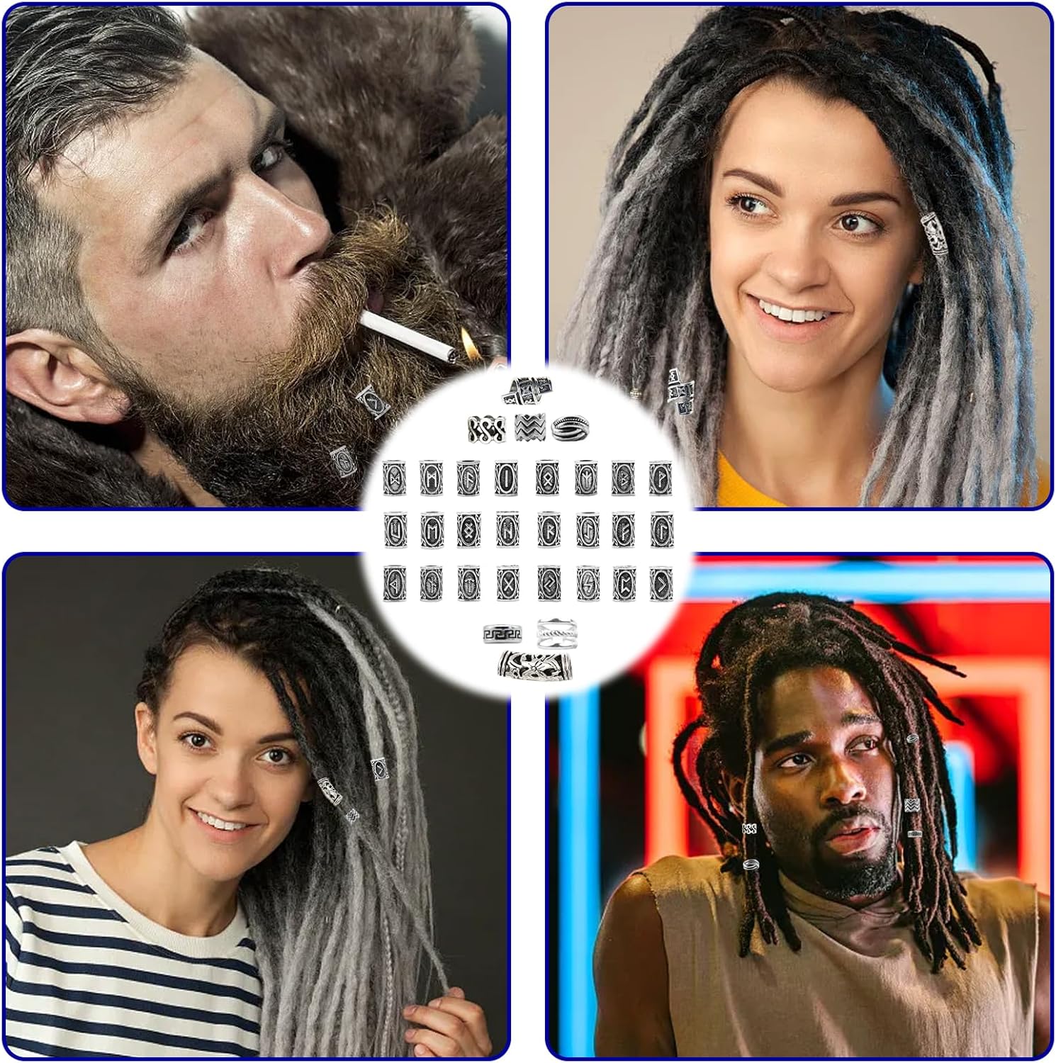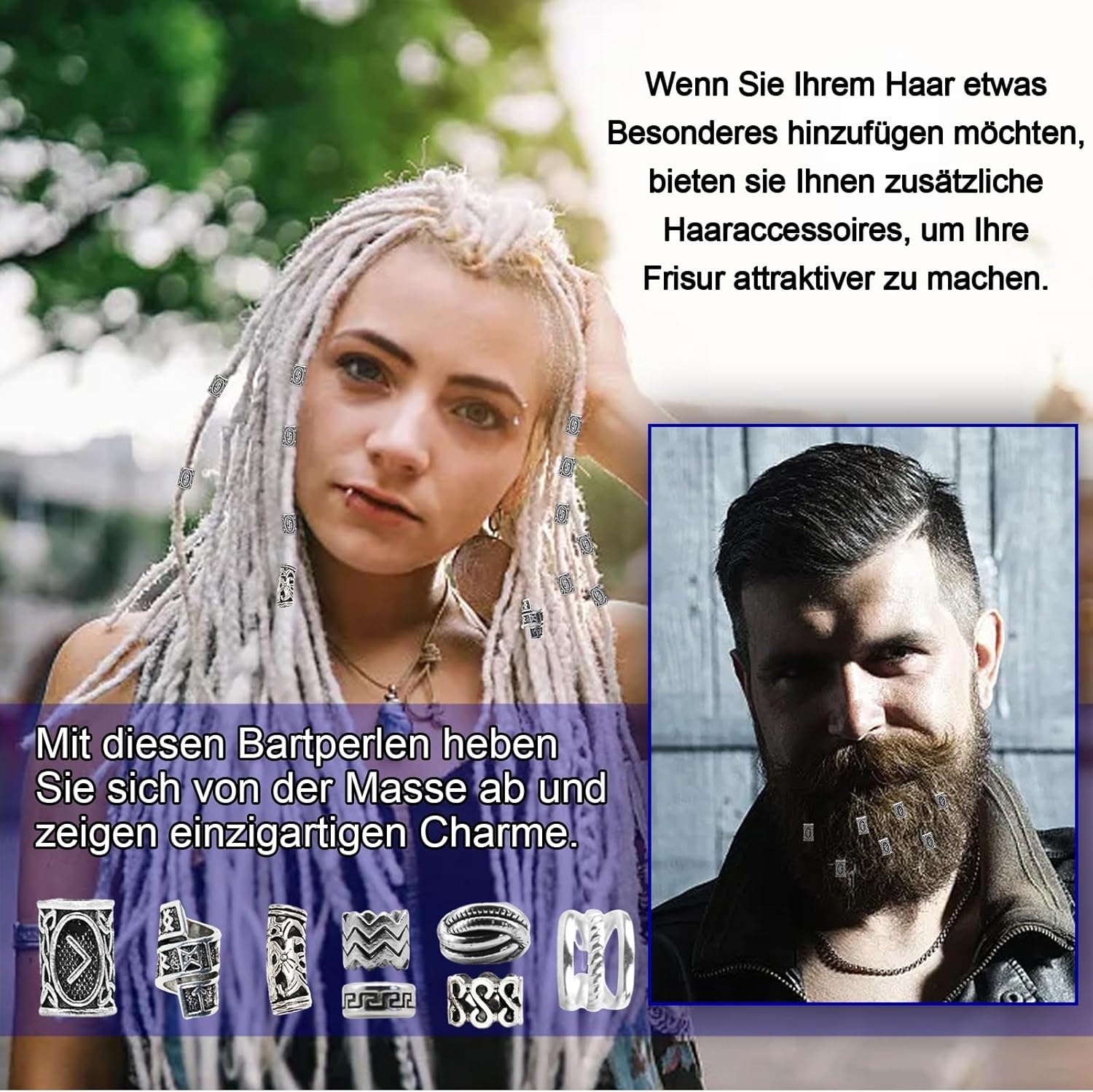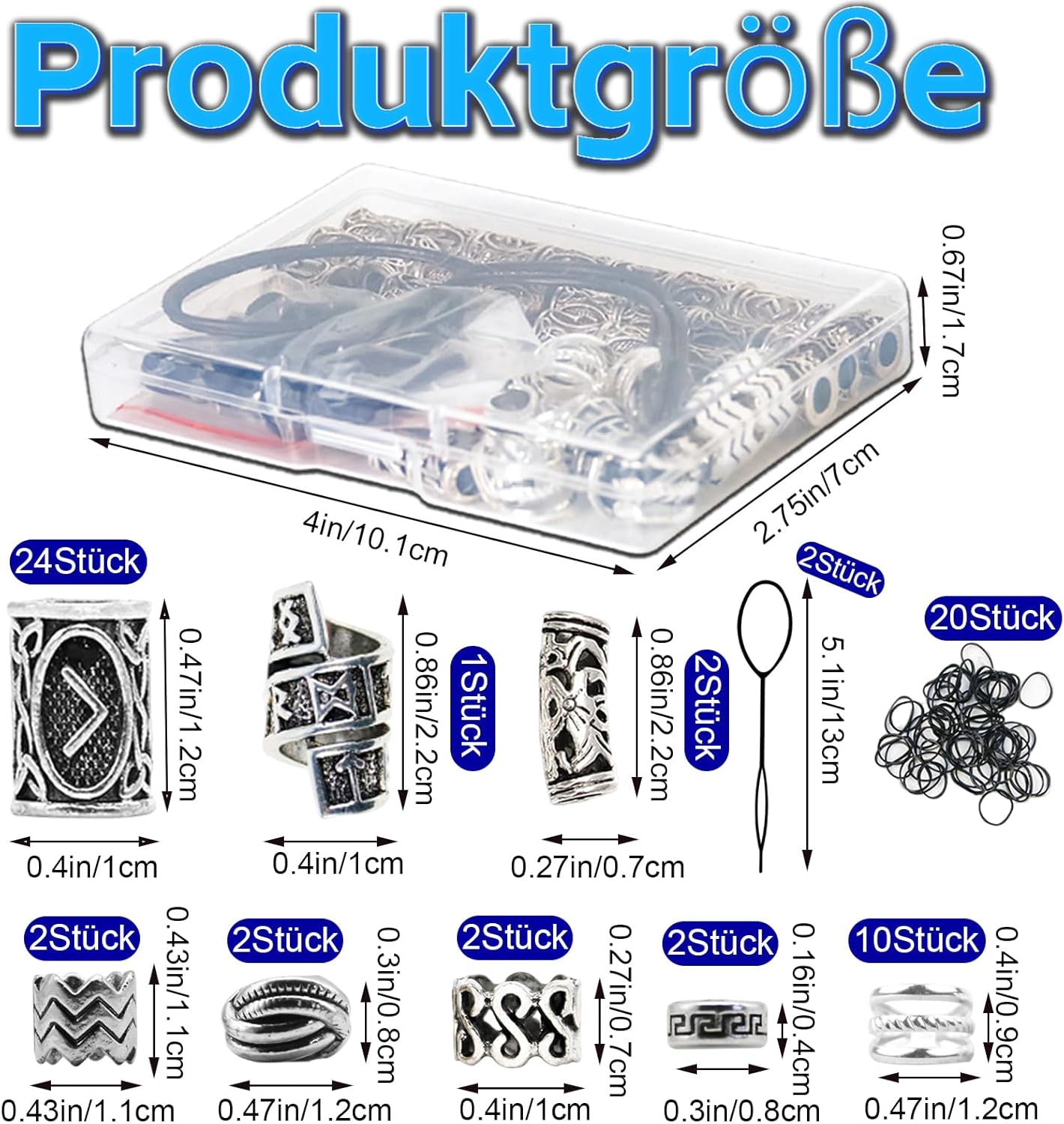 Accessori per capelli alla moda: se vuoi aggiungere qualcosa di speciale ai tuoi capelli, ti forniscono accessori per capelli aggiuntivi per rendere la tua acconciatura più attraente. Con queste perle da barba ti distinguerai dalla massa e mostrerai il tuo fascino unico. Materiale di alta qualità: questi accessori per capelli in argento sono più resistenti delle normali parti in alluminio. Dopo la galvanizzazione ha una buona duttilità e durezza, non arrugginisce, è morbido ed elastico e non provoca danni ai capelli. Facile da usare: basta attaccare le perline ai capelli o alla barba. Basta inserire i capelli nello strumento per infilare, infilare lo strumento nelle perline, tirare i capelli attraverso le perline e infine attaccarli ai capelli. Il pacchetto include: Riceverai 45 accessori per capelli in argento, 20 elastici, 2 infila capelli, confezionati in una scatola trasparente per riporli in modo comodo e veloce. Multifunzionale: i gioielli con dreadlocks in argento vichingo sono perfetti per festival e feste come compleanni, feste, lauree, cerimonie di raggiungimento della maggiore età, matrimoni, Ringraziamento, Natale, Halloween e altri festival.