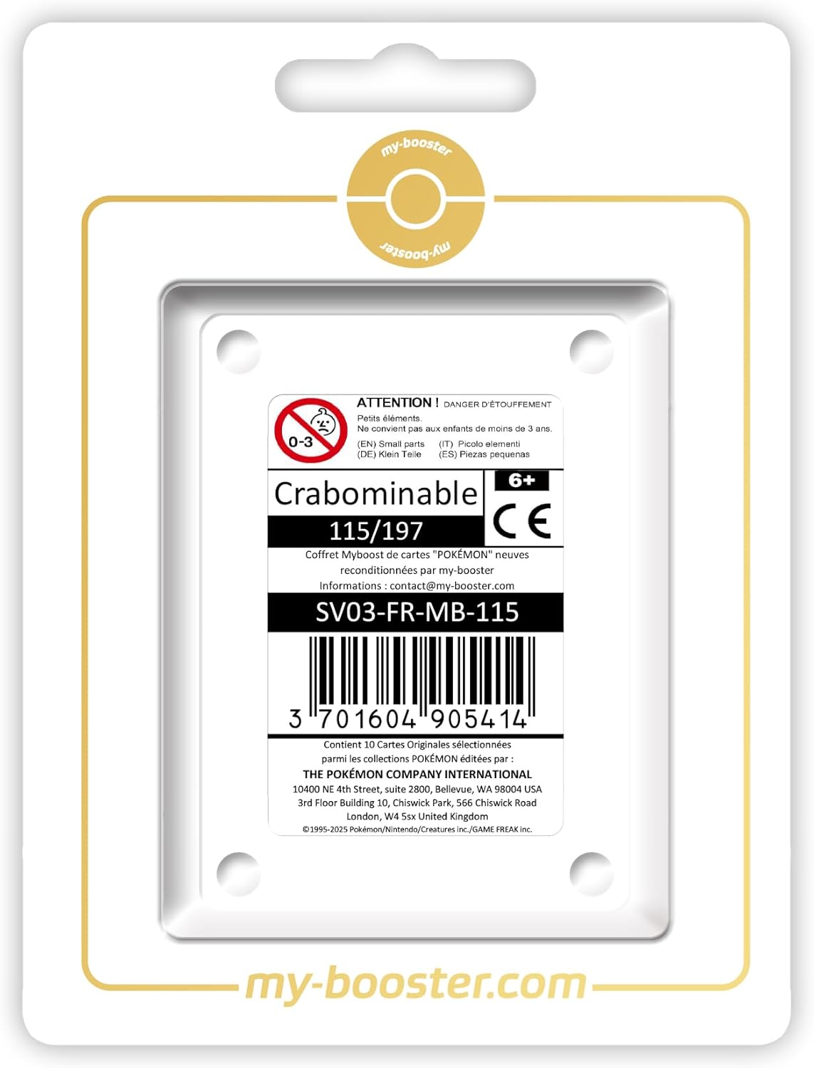 Trova i tuoi Pokémon preferiti nel tuo negozio amazon.fr/my-booster o facendo clic su "visita il negozio my-booster" sotto il titolo di questa scheda prodotto. Ogni box Ultraboost/Myboost contiene la carta principale evidenziata nella sua scheda prodotto + 9 carte Pokémon aggiuntive. Carte "The Pokemon Company" nuove e originali certificate - Questo set non contiene carte trainer/energia/duplicati. Alcune carte aggiuntive incluse potrebbero far parte di una serie Pokémon diversa dalla serie della carta principale di questo set. Approfitta della consegna gratuita a partire da 100€ e dell'UPS espresso gratuito a partire da 250€ di carrello spedito con my-booster!