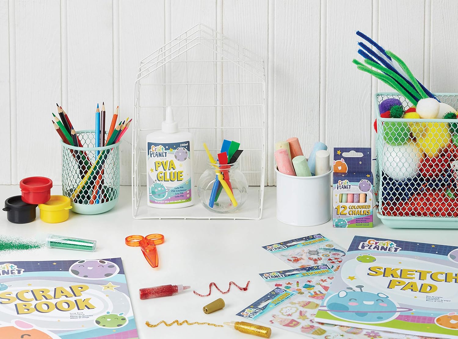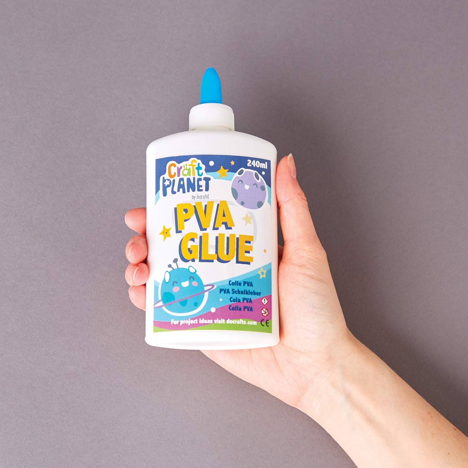 Craft Planet Colla multiuso PVA bianca forte da 240 ml, adesiva per arte per bambini, materiale scolastico, lavorazione del legno, per carta, legno, materiali artigianali