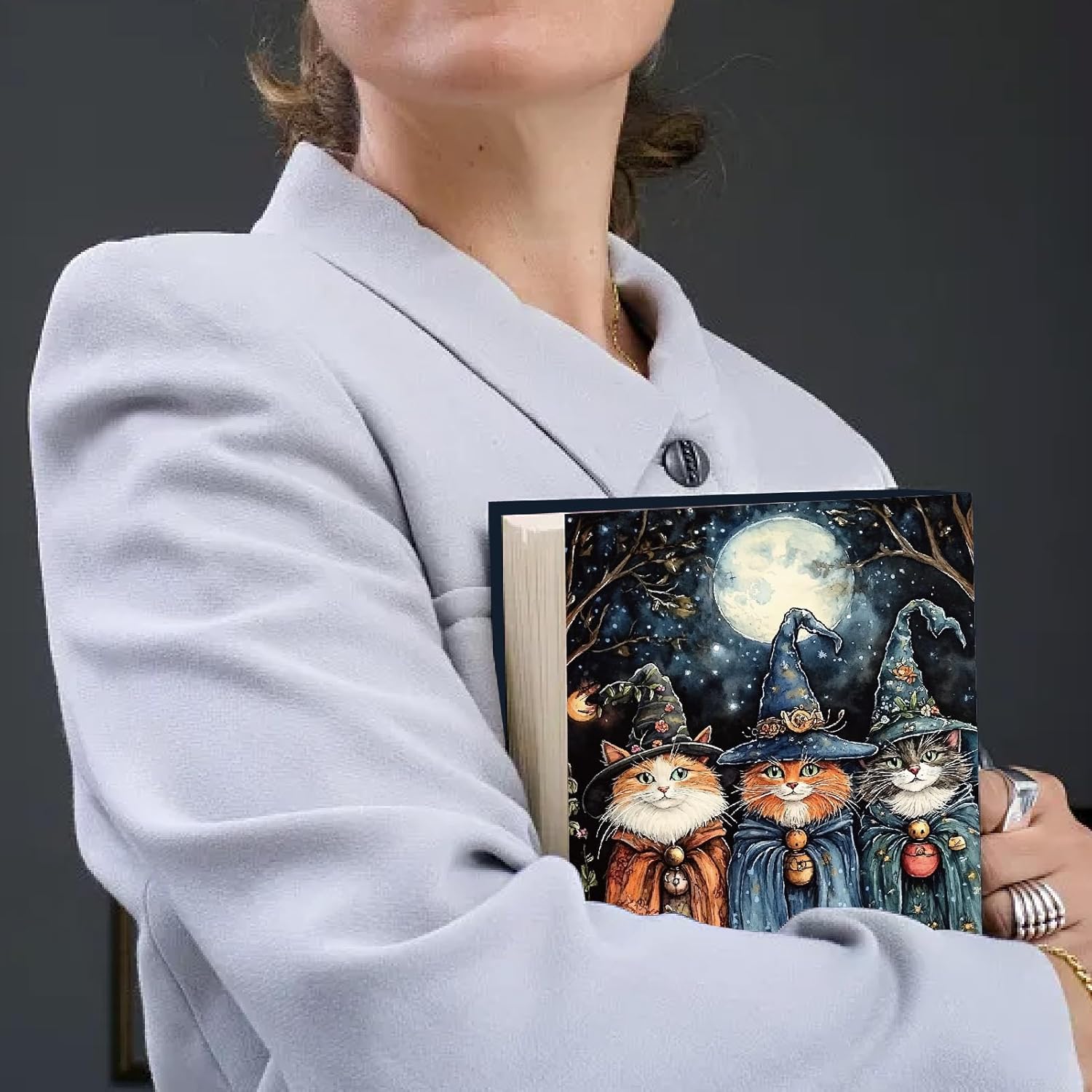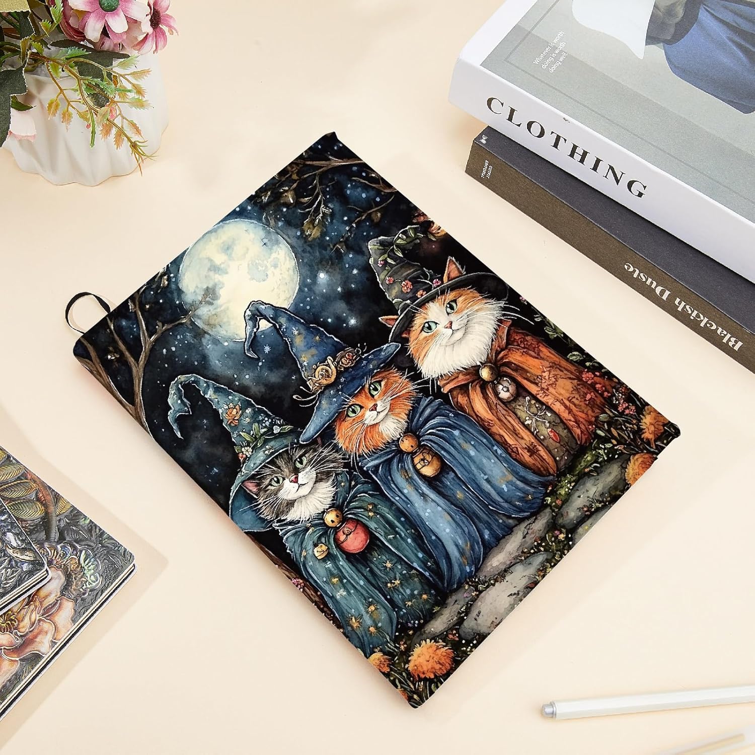 Copertina del libro Witch Cat: la copertina elastica del libro presenta tre adorabili gatti vestiti da streghe, ambientati in una magica foresta illuminata dalla luna. L'illustrazione stravagante e dettagliata aggiunge un tocco di fantasia e fascino ai tuoi libri. Progetta un cordone a nastro nell'angolo che ti consentirà di monitorare facilmente i tuoi progressi nella lettura. Dimensioni della copertina del libro: copertina estensibile di circa 40 x 25 cm (15,7 x 9,8 pollici), adatta a libri fino a 22,8 x 27,9 cm (9 x 11 pollici), adatta alla maggior parte dei libri con copertina rigida. (Nota: fare riferimento all'immagine per dimensioni specifiche) Materiale del tessuto: le copertine elastiche dei libri sono realizzate in tessuto elastico, resistente e lavabile, non si danneggia o sbiadisce facilmente, riutilizzabile e ha un effetto protettivo, adatto per la protezione a lungo termine dei libri Facile da usare: nessun libro verrà danneggiato. Basta staccare la protezione del libro sopra la copertina del tuo libro con copertina rigida, senza bisogno di nastro adesivo o colla, così puoi riutilizzarla. Non c'è bisogno di preoccuparsi degli angoli dei libri danneggiati o delle copertine graffiate Protezioni per libri: la copertina elastica del libro può proteggere quaderni, libri di testo, album fotografici, romanzi, libri illustrati, diari, libri estratti e altri libri, fornisce una protezione completa per i tuoi libri preferiti, evitando macchie o rotture della copertina