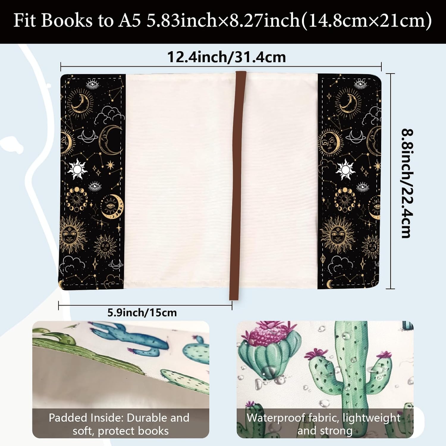 CUSTODIA PER LIBRI SOLE LUNA STELLE:la copertina del libro è dotata di un segnalibro a nastro, rende facile trovare pagine specifiche ed è molto comodo da usare. Il motivo sole luna stelle è colorato e creativo, decora molto bene la copertina del tuo libro. COPERTINE PER LIBRI A5:circa 12.4x8.8 pollici (31.4x22.4cm ) Adatte per libri A5 da 8.3x5.8 pollici (21x14.8cm ) e quaderni inferiori. CUSTODIA PER LIBRI LAVABILE:le copertine dei libri sono realizzate in tessuto di poliestere, morbido, lavabile e riutilizzabile, comodo da toccare, facile da pulire. FACILE DA INSTALLARE:nessun libro verrà rovinato. Basta allungare la protezione del libro sulla copertina del tuo libro con copertina rigida, non serve nastro adesivo o colla, così puoi riutilizzarlo. Non c'è bisogno di preoccuparsi degli angoli dei libri danneggiati, o coperture graffiate. AMPIA APPLICAZIONE:la custodia per libri protegge il tuo grande libro di testo, libro scientifico, libri di fiabe, libri con copertina rigida, e così via, scelta conveniente per lettori amanti dei libri. Adatto per il compleanno, di nuovo a scuola, Natale, Giorno del Ringraziamento per la tua famiglia e i tuoi amici, scelta ideale per la festa della mamma, Regali per la festa del papà.