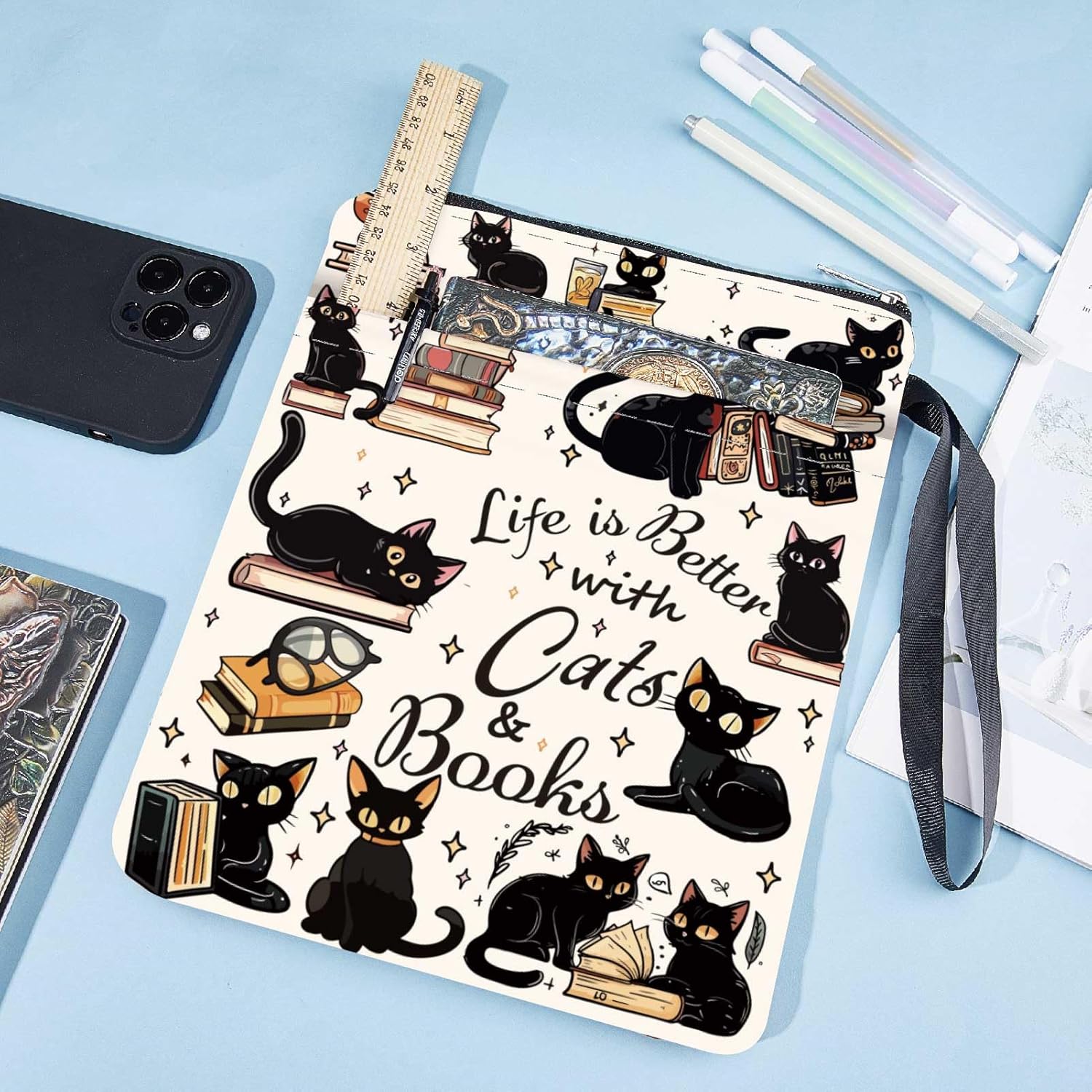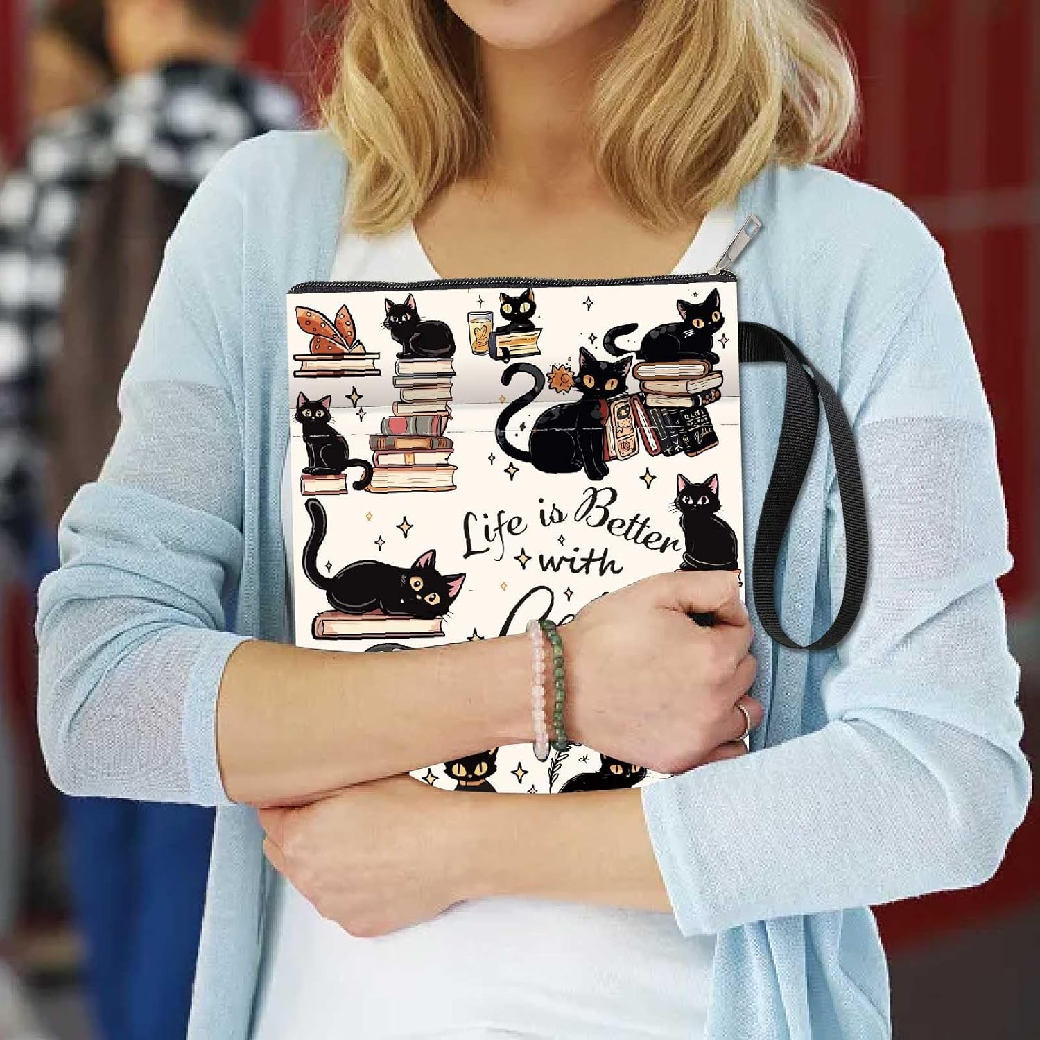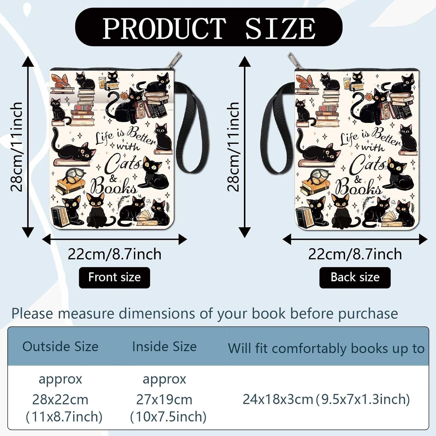 CUSTODIA PER LIBRO GATTO NERO:la copertina del libro ha un modello elegante e innovativo, che protegge il tuo libro dalla polvere o dalle pagine strappate e piegate, ed è anche un regalo perfetto per gli amanti dei libri. DIMENSIONE:copertina del libro larga circa 8.66 pollice (22cm )., 11.02 pollice (28cm ) di lunghezza. Si adatta alla maggior parte dei libri autopubblicati, tascabili standard, tascabili di massa, e copertine rigide regolari. Assicurati di misurare il tuo articolo prima dell'acquisto per assicurarti che funzioni per te. TESSUTO LAVABILE:Realizzato in tessuto lavabile, la fodera nera è resistente allo sporco e presenta una chiusura con cerniera liscia di alta qualità per una maggiore protezione. Sottile e leggero, non ingombra il tuo libro, può facilmente scivolare nella tua valigetta, zaino o altra borsa. TASCA EXTRA SULLA MANICA:questa copertina del libro non può contenere solo libri, la tasca extra sulla manica può contenere anche penne, occhiali, segnalibri, bloc notes, cuffie e altri accessori, pratico e bello in uno. AMPIO UTILIZZO:queste custodie per libri possono essere utilizzate per proteggere i libri, libri di testo o quaderni ed è adatto agli studenti, insegnanti, scrittori, studiosi, librerie o chiunque ami i libri o voglia distinguerli facilmente.