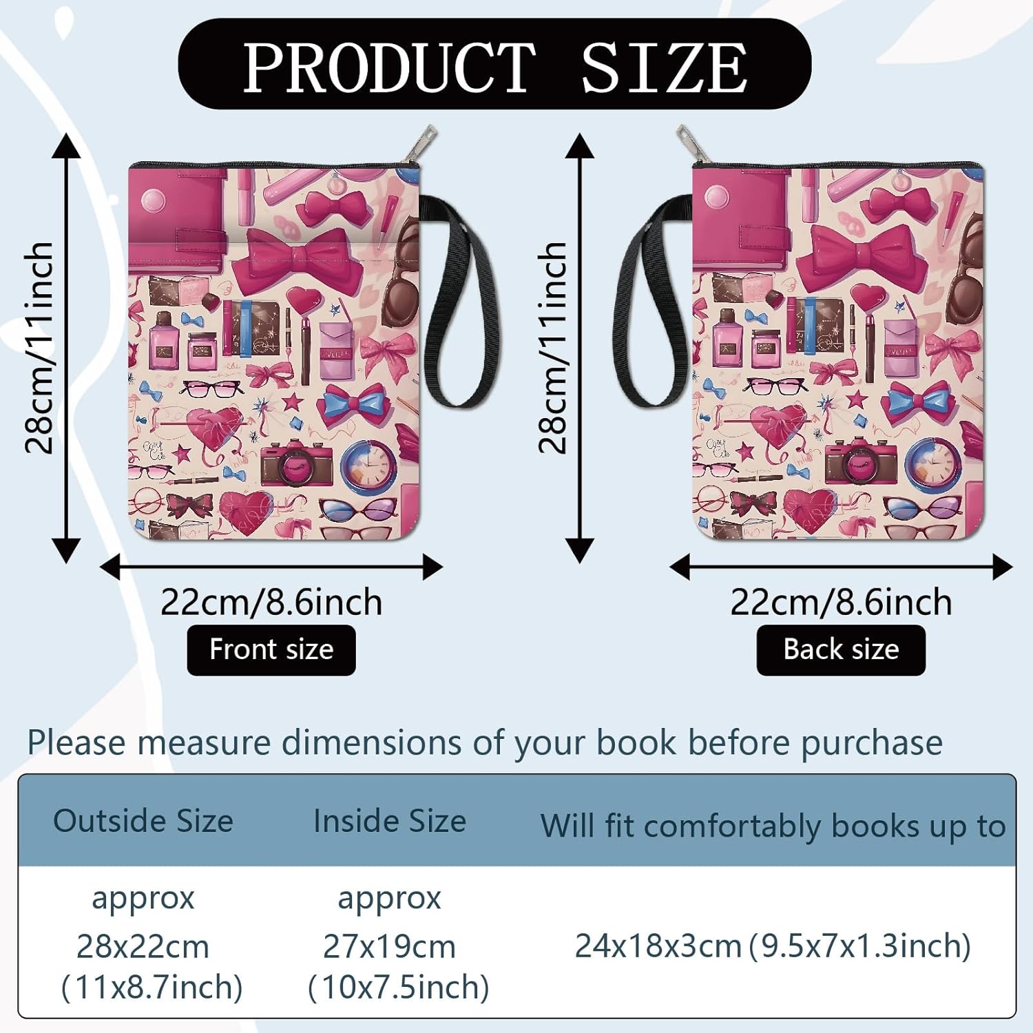 CUSTODIA PER LIBRI CON FIOCCO ROSA:la copertina del libro ha un motivo elegante e innovativo, che protegge il tuo libro dalla polvere o dalle pagine strappate e piegate, ed è anche un regalo perfetto per gli amanti dei libri. DIMENSIONE:copertina del libro larga circa 8.66 pollice (22cm )., 11.02 pollice (28cm ) di lunghezza. Si adatta alla maggior parte dei libri autopubblicati, tascabili standard, tascabili di massa, e copertine rigide regolari. Assicurati di misurare il tuo articolo prima dell'acquisto per assicurarti che funzioni per te. TESSUTO LAVABILE:Realizzato in tessuto lavabile, la fodera nera è resistente allo sporco e presenta una chiusura con cerniera liscia di alta qualità per una maggiore protezione. Sottile e leggero, non ingombra il tuo libro, può facilmente scivolare nella tua valigetta, zaino o altra borsa. TASCA EXTRA SULLA MANICA:questa copertina del libro non può contenere solo libri, la tasca extra sulla manica può contenere anche penne, occhiali, segnalibri, bloc notes, cuffie e altri accessori, pratico e bello in uno. AMPIO UTILIZZO:queste custodie per libri possono essere utilizzate per proteggere i libri, libri di testo o quaderni ed è adatto agli studenti, insegnanti, scrittori, studiosi, librerie o chiunque ami i libri o voglia distinguerli facilmente.