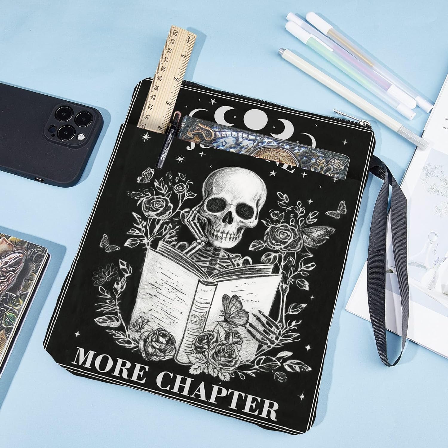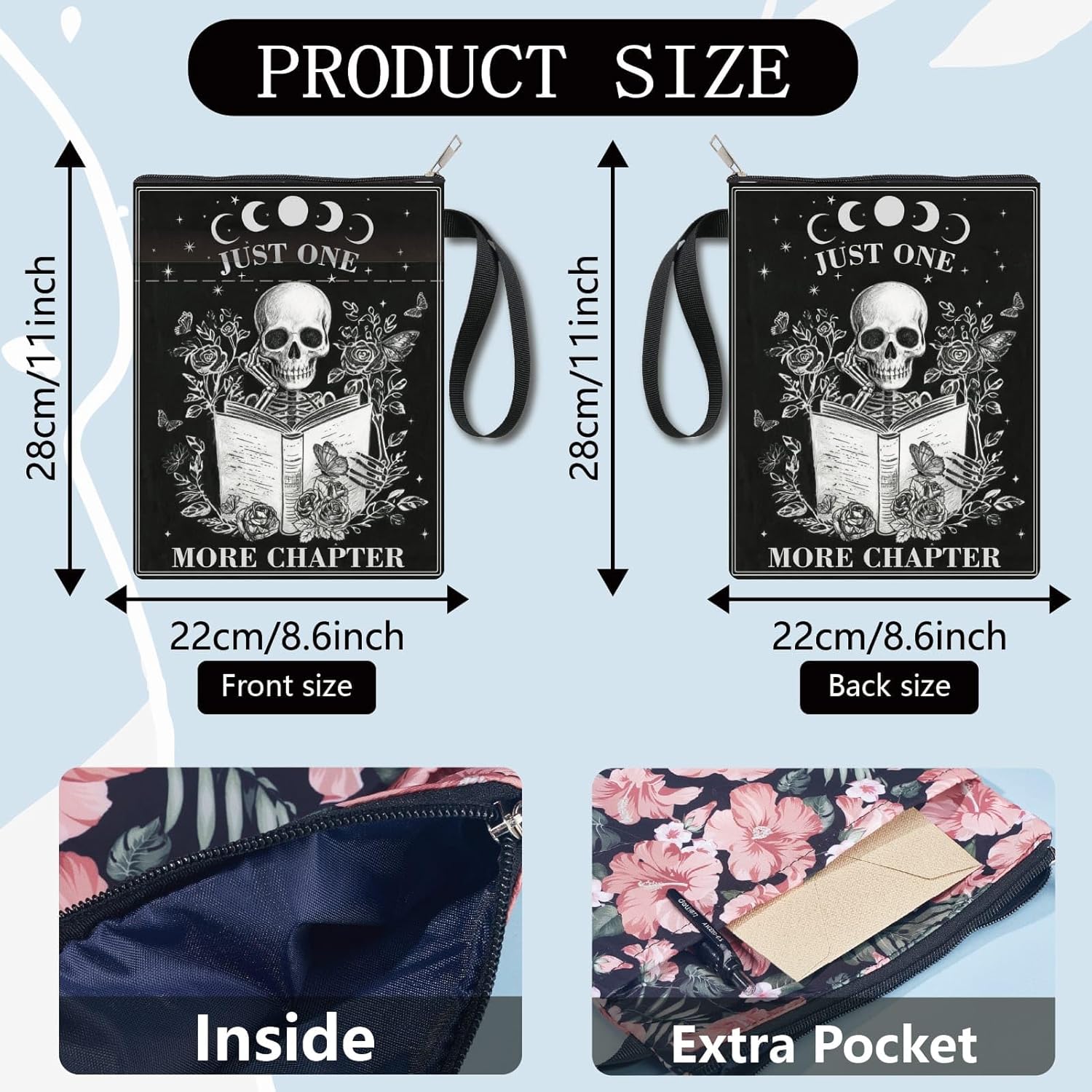 MANICA DEL LIBRO SKULL:la copertina del libro ha un modello elegante e innovativo, che protegge il tuo libro dalla polvere o dalle pagine strappate e piegate, ed è anche un regalo perfetto per gli amanti dei libri. DIMENSIONE:copertina del libro larga circa 8.66 pollice (22cm )., 11.02 pollice (28cm ) di lunghezza. Si adatta alla maggior parte dei libri autopubblicati, tascabili standard, tascabili di massa, e copertine rigide regolari. Assicurati di misurare il tuo articolo prima dell'acquisto per assicurarti che funzioni per te. TESSUTO LAVABILE:Realizzato in tessuto lavabile, la fodera nera è resistente allo sporco e presenta una chiusura con cerniera liscia di alta qualità per una maggiore protezione. Sottile e leggero, non ingombra il tuo libro, può facilmente scivolare nella tua valigetta, zaino o altra borsa. TASCA EXTRA SULLA MANICA:questa copertina del libro non può contenere solo libri, la tasca extra sulla manica può contenere anche penne, occhiali, segnalibri, bloc notes, cuffie e altri accessori, pratico e bello in uno. AMPIO UTILIZZO:queste custodie per libri possono essere utilizzate per proteggere i libri, libri di testo o quaderni ed è adatto agli studenti, insegnanti, scrittori, studiosi, librerie o chiunque ami i libri o voglia distinguerli facilmente.