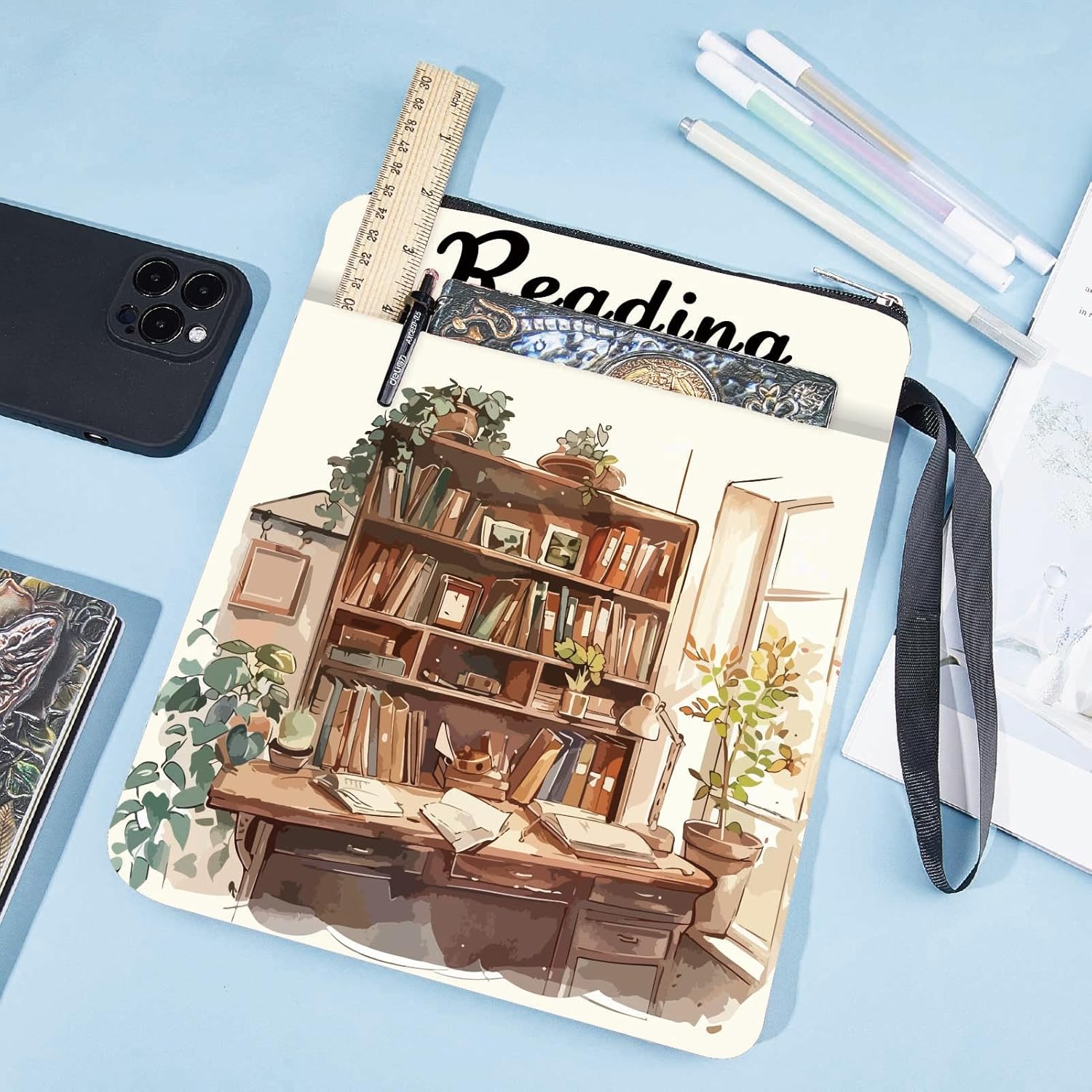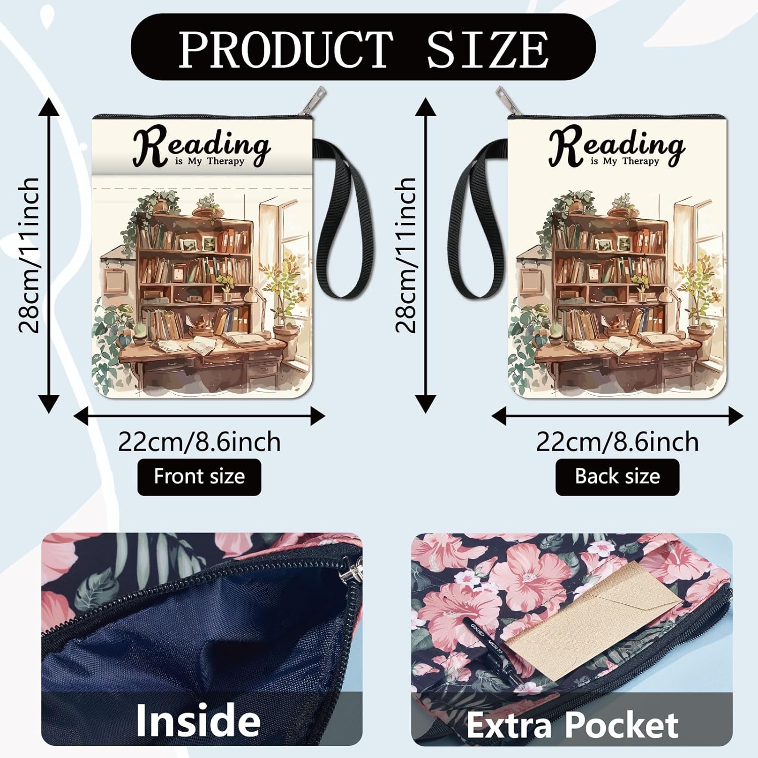 CUSTODIA PER LIBRI DA SCRIVANIA:la copertina del libro ha un motivo elegante e innovativo, che protegge il tuo libro dalla polvere o dalle pagine strappate e piegate, ed è anche un regalo perfetto per gli amanti dei libri. DIMENSIONE:copertina del libro larga circa 8.66 pollice (22cm )., 11.02 pollice (28cm ) di lunghezza. Si adatta alla maggior parte dei libri autopubblicati, tascabili standard, tascabili di massa, e copertine rigide regolari. Assicurati di misurare il tuo articolo prima dell'acquisto per assicurarti che funzioni per te. TESSUTO LAVABILE:Realizzato in tessuto lavabile, la fodera nera è resistente allo sporco e presenta una chiusura con cerniera liscia di alta qualità per una maggiore protezione. Sottile e leggero, non ingombra il tuo libro, può facilmente scivolare nella tua valigetta, zaino o altra borsa. TASCA EXTRA SULLA MANICA:questa copertina del libro non può contenere solo libri, la tasca extra sulla manica può contenere anche penne, occhiali, segnalibri, bloc notes, cuffie e altri accessori, pratico e bello in uno. AMPIO UTILIZZO:queste custodie per libri possono essere utilizzate per proteggere i libri, libri di testo o quaderni ed è adatto agli studenti, insegnanti, scrittori, studiosi, librerie o chiunque ami i libri o voglia distinguerli facilmente.