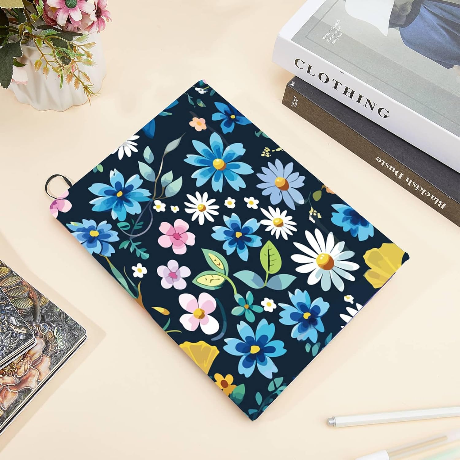 Copertina per libro con fiori blu:Copertine per libri in tessuto con fiori blu, colore brillante, modelli chiari e squisiti, può attirare rapidamente l'attenzione, far vedere le persone a colpo d'occhio, e aiuta a trovare rapidamente i libri Dimensioni della copertina del libro:protezione della copertina del libro di circa 15.7 x 9.8 pollice (40 x 25cm ), adatto per libri fino a 22.8 x 27.9cm (9 x 11 pollici), adatto alla maggior parte dei libri con copertina rigida. (Nota:fare riferimento all'immagine per le dimensioni specifiche) Materiale del tessuto:la copertina elasticizzata del libro è realizzata in tessuto di stoffa, che è elastico, estensibile, durevole, lavabile e riutilizzabile, e può proteggere efficacemente il tuo libro dai danni Facile da installare:basta allungare la copertina elastica del libro e posizionarla sopra la copertina del libro senza misurare o tagliare, e senza bisogno di nastro adesivo o colla. Può proteggere il tuo libro dagli urti, graffi, indossare, eccetera. Per molto tempo Ampio utilizzo:le copertine per libri in tessuto floreale sono ampiamente utilizzate e adatte per proteggere vari libri come i libri di testo, i Quaderni, romanzi, libri illustrati, eccetera. Puoi anche darli agli appassionati di libri per proteggere meglio i loro libri