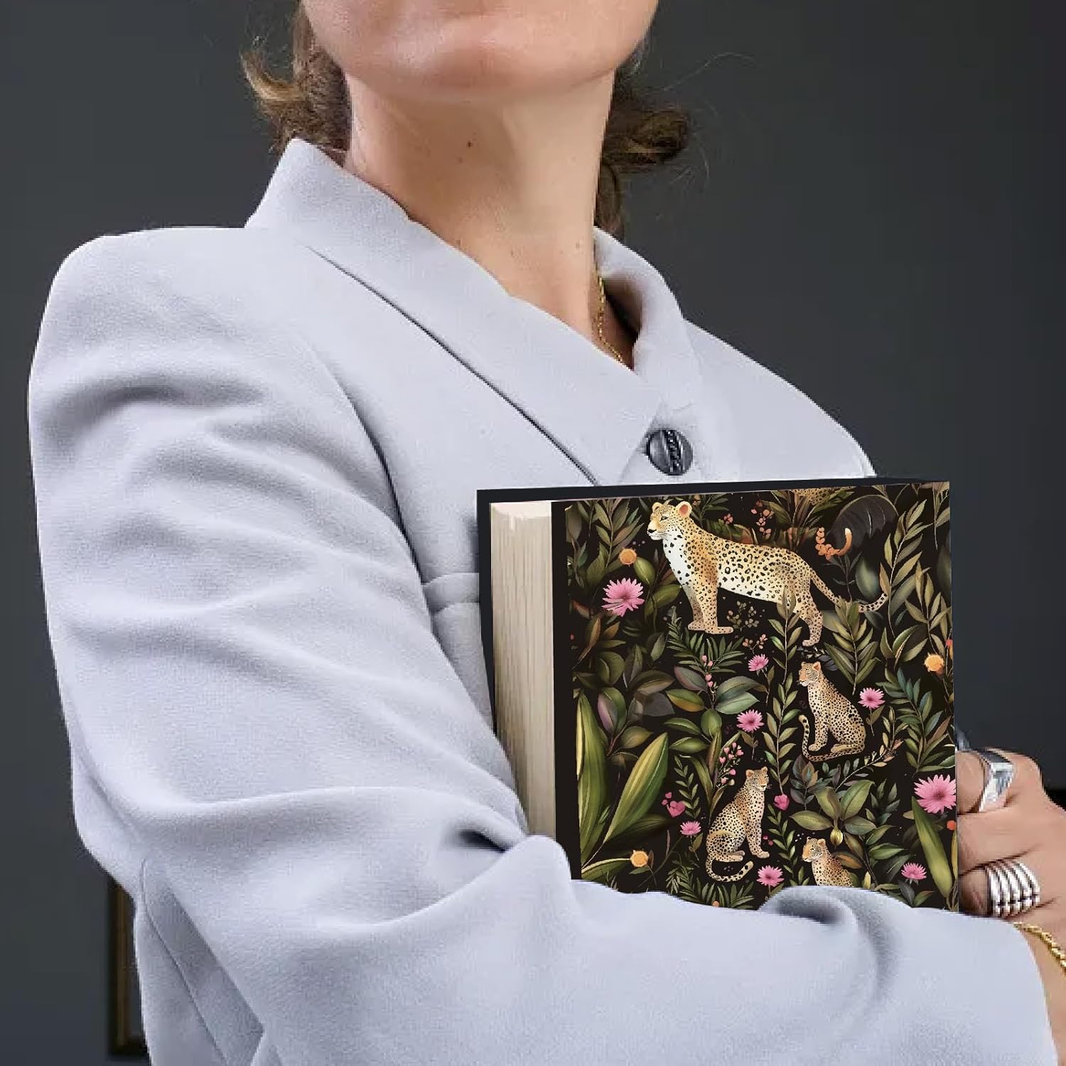 Copertina del libro Forest Leopard:la copertina elastica del libro presenta un'affascinante scena di leopardi in mezzo a una vegetazione lussureggiante, fiori rosa, e fogliame tropicale. L'intricato, natura - l'arte ispirata porta un tocco di selvaggio nei tuoi libri Copertine per libri in tessuto:la copertina del libro a fiori è realizzata in materiale elastico in tessuto, che è durevole, non facilmente danneggiato o sbiadito, lavabile, riutilizzabile, e ha un effetto protettivo, adatto per la protezione a lungo termine dei libri Adatto alla maggior parte dei libri con copertina rigida:dimensioni della copertina del libro circa 9.84 pollice (25cm ) di larghezza x 15.74 pollici (40cm ) di lunghezza, le copertine dei libri di testo sono elastiche per i tuoi libri fino a 9 x 11 pollice, adatto alla maggior parte dei libri con copertina rigida. (Nota:le dimensioni specifiche si riferiscono all'immagine) Facile da installare:non c'è bisogno di nastro adesivo o colla, non c'è bisogno di misurare o tagliare, basta allungare la copertina del libro sulla copertina e indossarla per proteggere il libro da danni come urti, lacrime, eccetera., semplice e comodo da usare Ampia applicazione:la copertina del libro con animali è adatta a libri di varie dimensioni, come i libri di testo, i Quaderni, romanzi, libri illustrati, diari, libri estratti, eccetera. Puoi anche regalarlo agli amanti dei libri a Natale, Ringraziamento, compleanni, eccetera