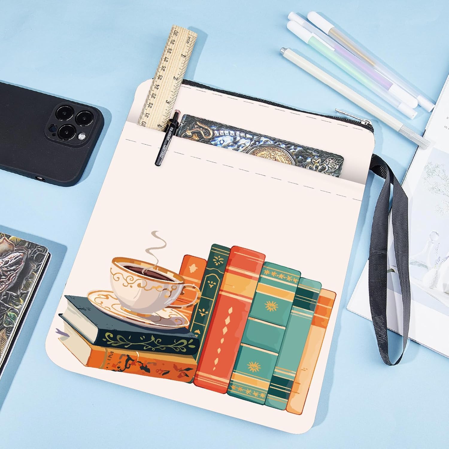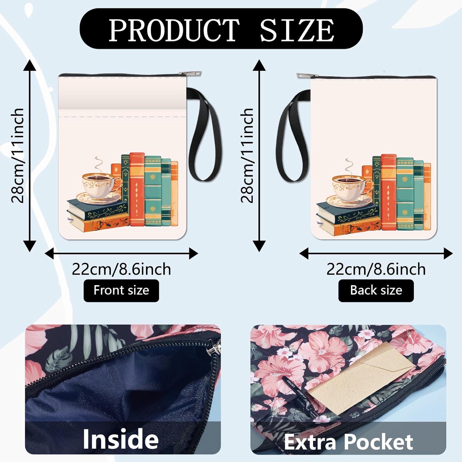 MANICA DEL LIBRO DA CAFFÈ:la copertina del libro ha un modello elegante e innovativo, che protegge il tuo libro dalla polvere o dalle pagine strappate e piegate, ed è anche un regalo perfetto per gli amanti dei libri. DIMENSIONE:copertina del libro larga circa 8.66 pollice (22cm )., 11.02 pollice (28cm ) di lunghezza. Si adatta alla maggior parte dei libri autopubblicati, tascabili standard, tascabili di massa, e copertine rigide regolari. Assicurati di misurare il tuo articolo prima dell'acquisto per assicurarti che funzioni per te. TESSUTO LAVABILE:Realizzato in tessuto lavabile, la fodera nera è resistente allo sporco e presenta una chiusura con cerniera liscia di alta qualità per una maggiore protezione. Sottile e leggero, non ingombra il tuo libro, può facilmente scivolare nella tua valigetta, zaino o altra borsa. TASCA EXTRA SULLA MANICA:questa copertina del libro non può contenere solo libri, la tasca extra sulla manica può contenere anche penne, occhiali, segnalibri, bloc notes, cuffie e altri accessori, pratico e bello in uno. AMPIO UTILIZZO:queste custodie per libri possono essere utilizzate per proteggere i libri, libri di testo o quaderni ed è adatto agli studenti, insegnanti, scrittori, studiosi, librerie o chiunque ami i libri o voglia distinguerli facilmente.