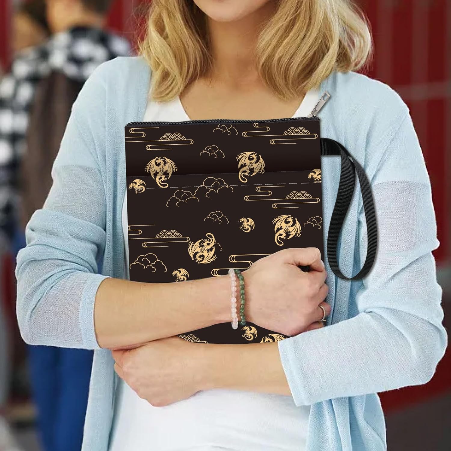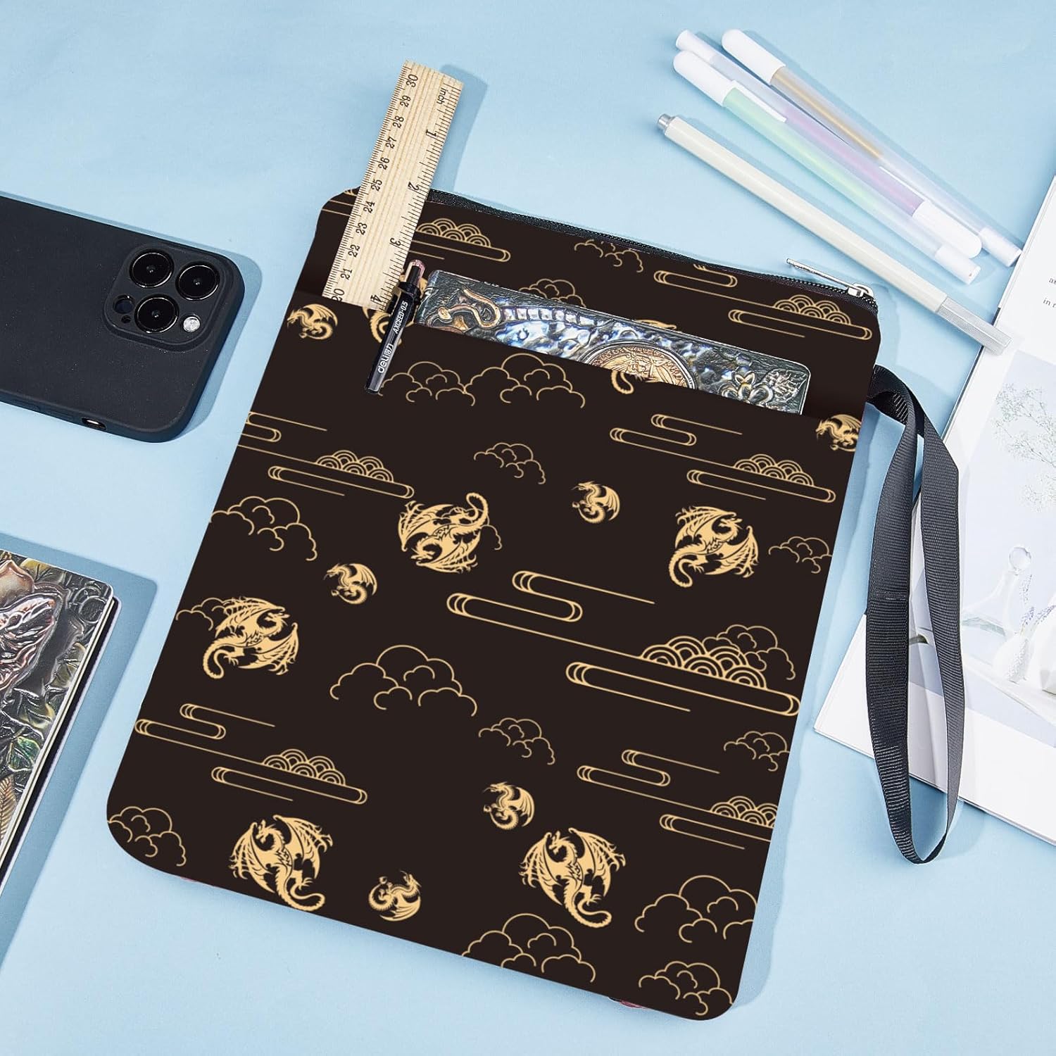 Custodia per libro a forma di drago, doppia faccia:la copertina del libro presenta una cerniera liscia e una corda portatile. Il drago è stampato su entrambi i lati. Stampa del motivo chiaramente Copertina impermeabile per libri:la copertina del libro è realizzata in tessuto impermeabile, protegge i libri dalla polvere dall'acqua e la copertina dagli strappi. Tasca per libri riutilizzabile per il lavaggio Dimensioni:esterne circa 13.3 x 9.4 pollice (34 x 24cm ). All'interno circa 12.3 x 8.4 pollice (31 x 21cm ). Adatto a libri fino a 11.7 x 8.3 x 1.3 pollice (29.7 x 21 x 3cm ). Assicurati di misurare i libri prima di acquistarli Protezione per libri con tasca extra:la parte anteriore della custodia del libro è progettata con una piccola tasca, una penna, cellulare, cuffia, occhiali da sole, la chiave e i piccoli oggetti possono essere messi in tasca, mantenere le cose organizzate Ottimo regalo:la copertina del libro è un regalo per gli amanti dei libri, amico, sorella, insegnante, infermiera, avvocato, medico, collega. Anche un buon articolo per il matrimonio della festa della mamma, anniversario, laurea, celebrazione, compleanno, grazie doni, con copertina rigida, tascabili, libri morbidi, pad, romanzi e così via. Quando fuori, puoi mettere i tuoi libri o quaderni preferiti nel porta libri, rendere le cose facili da trasportare