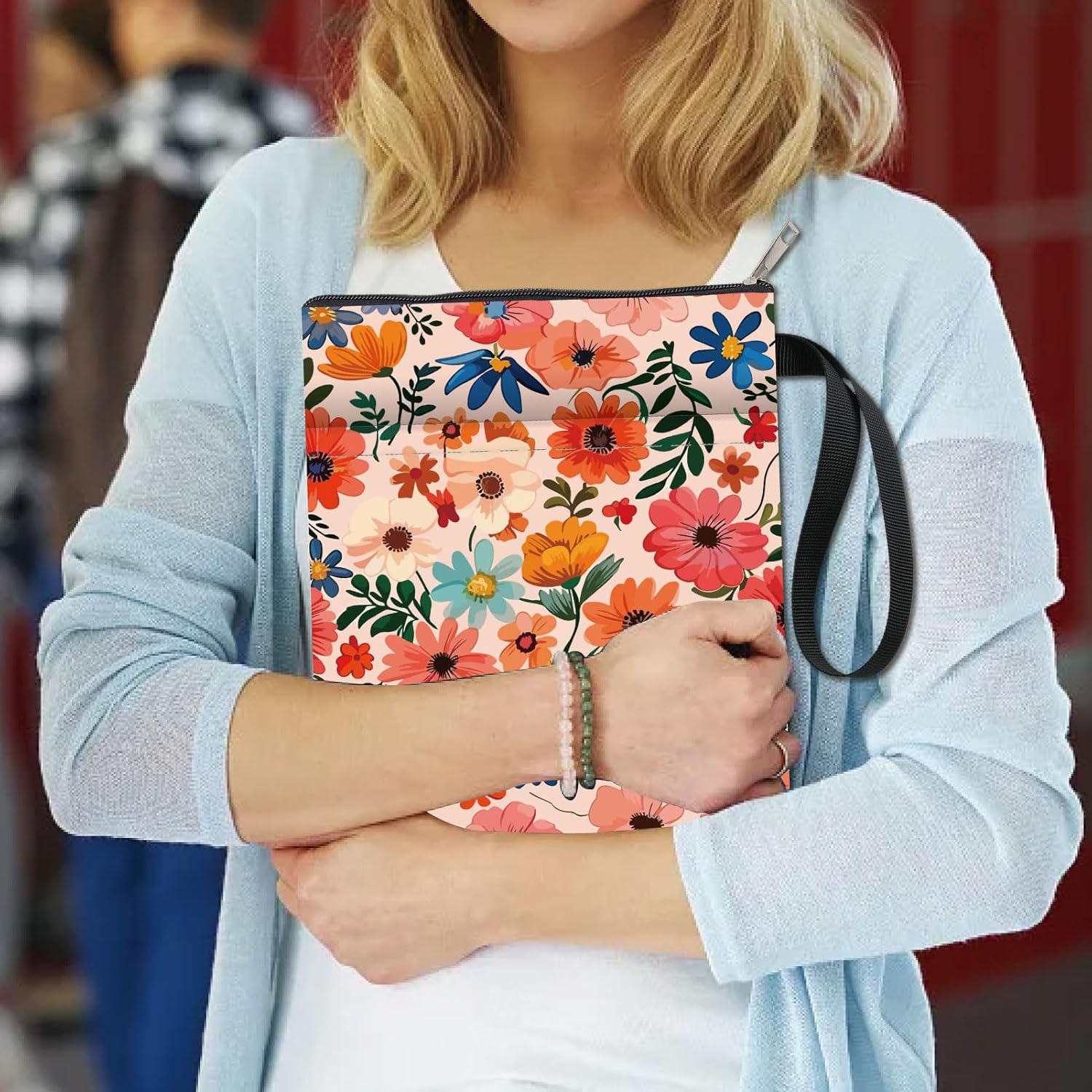 Copertina del libro floreale fronte-retro: la copertina del libro ha una cerniera liscia e una corda portatile. I fiori sono stampati su entrambi i lati. Copertina del libro impermeabile con motivo chiaramente stampato: la copertina del libro è realizzata in tessuto impermeabile, protegge i libri da polvere e acqua e la copertina dagli strappi. Custodia per libri riutilizzabile per il lavaggio. Dimensioni: esterno circa 13,3 x 9,4 pollici (34 x 24 cm). Interno circa 12,3 x 8,4 pollici (31 x 21 cm). Adatto a libri fino a 29,7 x 21 x 3 cm (11,7 x 8,3 x 1,3 pollici). Assicurati di misurare i libri prima di acquistare la protezione del libro con tasca extra: la parte anteriore della copertina del libro è progettata con una piccola tasca, penna, cellulare, auricolare, occhiali da sole, chiavi e piccoli oggetti possono essere messi in tasca, per mantenere le cose organizzate. Ottimo regalo: la copertina del libro è un regalo ideale per gli amanti dei libri, amici, sorelle, insegnanti, infermiere, avvocati, medici, colleghi. Anche una buona scelta per matrimoni durante la festa della mamma, anniversari, lauree, feste, anniversari, regali di ringraziamento, libri con copertina rigida, libri tascabili, libri morbidi, libri di francobolli, romanzi e così via. Quando sono fuori, puoi mettere i tuoi libri o quaderni preferiti nello scaffale per libri, rendendo le cose facili da trasportare