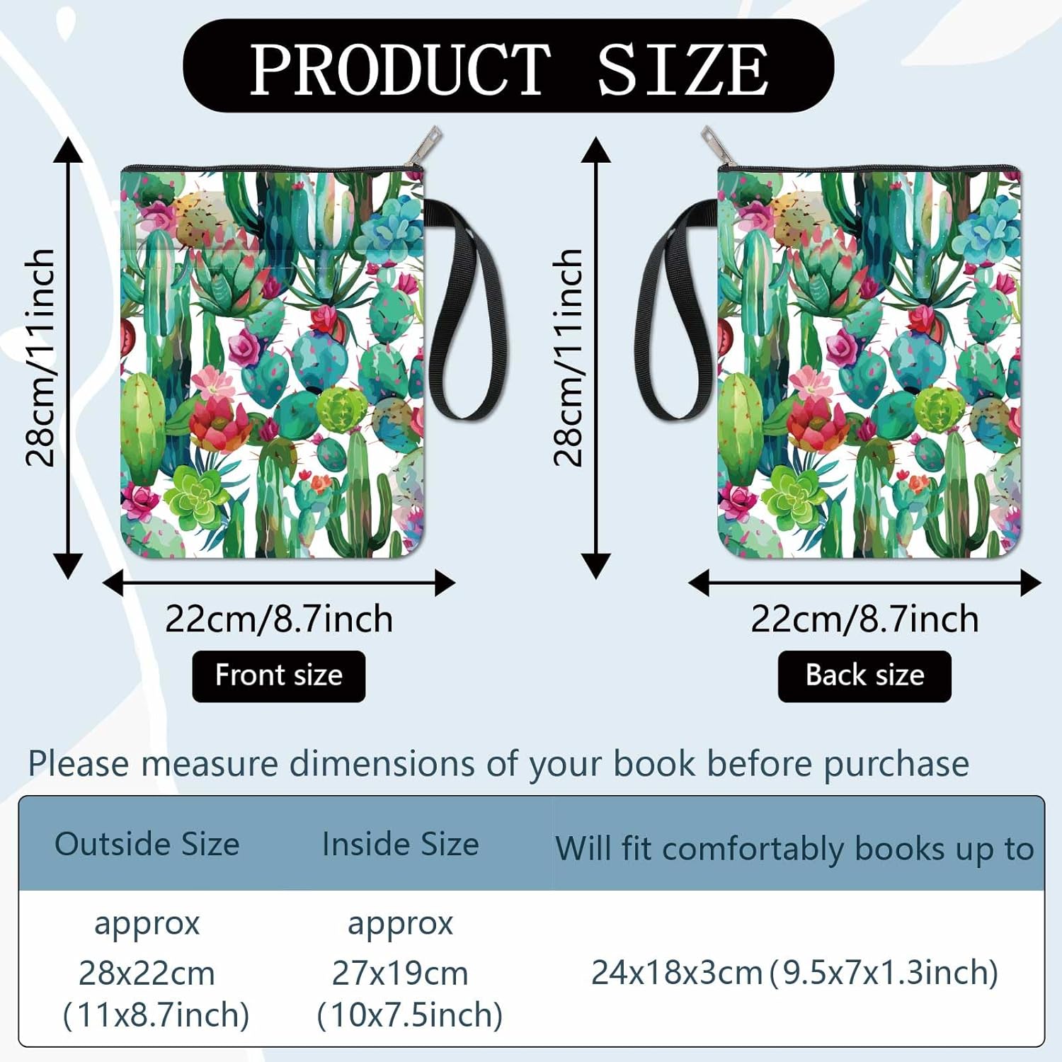 Custodia impermeabile per libri a doppio lato:la copertina del libro è dotata di cerniera, una tasca per libri riutilizzabile per il lavaggio, scomparti per penne e carta, e un modello assortito di cactus spinosi verdi e succulenti, cactus in piena fioritura con fiori rossi, la dimensione della custodia protettiva portatile per libri è di circa 8.66" x 11". Robusto e di qualità:la custodia del libro è realizzata in materiale di prima qualità, può proteggere i tuoi libri o altri oggetti da polvere, acqua e la copertina da strappi. Mantiene i libri come nuovi invece di piegare le pagine. Ottima organizzazione:la custodia per libri ha una tasca frontale extra per riporre i documenti di studio, accessori per ufficio, segnalibro, trucco, cellulare, occhiali da sole, o piccoli accessori decorativi ecc., mantenere organizzati i fornitori dello studio. Utilizzi multipli:quando fuori, puoi mettere i tuoi libri o quaderni preferiti nel porta libri, rendendolo facile da trasportare. È un accessorio indispensabile per i viaggi e il tuo compagno ideale quando vai in biblioteca, la custodia per libri con cerniera può offrirti una buona esperienza. Fantastiche idee regalo:la copertina del libro è un regalo per gli amanti dei libri, donne, amico, sorella, uomini, insegnante, infermiera, avvocato, medico, collega. È un libro per il matrimonio della festa della mamma, anniversario, laurea, celebrazione, compleanno, Natale, grazie doni, con copertina rigida, tascabili, libri morbidi, pad, romanzi e così via, facile portare il tuo libro ovunque tu vada.