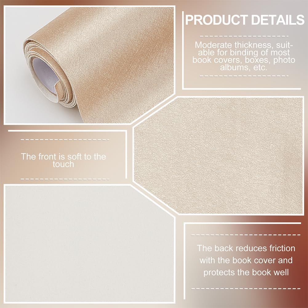Libri A3-A8 per rilegatura:stoffa per libri sufficiente per avvolgere facilmente una varietà di libri e quaderni A3-A8, circa 43.3 x 16.5 pollice (110 x 42cm ) Panno per libri in pelle PU:il panno per libri in pelle artificiale, tessuto in ecopelle su un lato, non tessuto sull'altro lato, con superficie liscia e senso della trama vintage, non facile da rompere. (Nessun supporto cartaceo) Panno per libri color champagne:Il panno per libri è color champagne, classico e vintage, e duraturo e presentabile, adatto a te per decorare e aggiungere un bellissimo abbellimento per la tua casa. Facile da tagliare:in base alle proprie esigenze, può essere tagliato in qualsiasi forma e dimensione, facile da incollare facilmente con base in tessuto non tessuto, facile da tagliare e pulire posizionato per un periodo di tempo può essere utilizzato. Copertina del libro per rilegatura:il tessuto del libro viene utilizzato per la rilegatura dei libri, realizzazione di copertine di libri, copertine del menu, fai da te e molte altre applicazioni, fornendo colori caldi e lasciando un ricordo prezioso. Tagliare in base alle dimensioni necessarie, tagliare e incollare con colla da rilegatura per incollare saldamente insieme il tessuto della copertina del libro e la copertina del libro, posizionalo per un periodo di tempo e poi puoi usarlo.