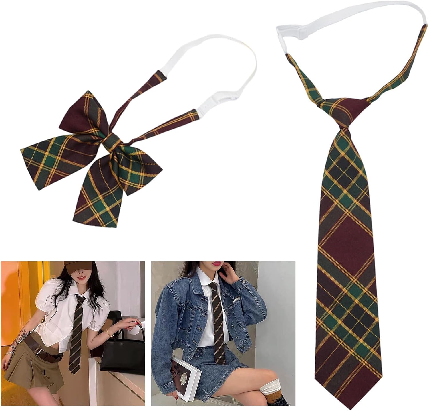 Cravatta giapponese con nodo papillon per donne e ragazze regolabile plaid cravatte per il collo discoteca festa costume da collo