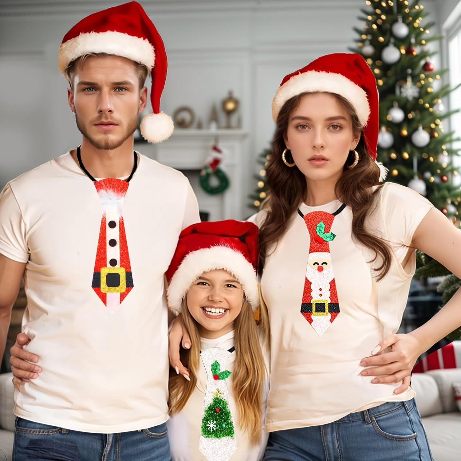 Cravatta natalizia glitterata regolabile per bambini e adulti, cravatta elastica festiva, divertente accessorio per feste di Natale, forniture per eventi natalizi, Rosso, taglia unica