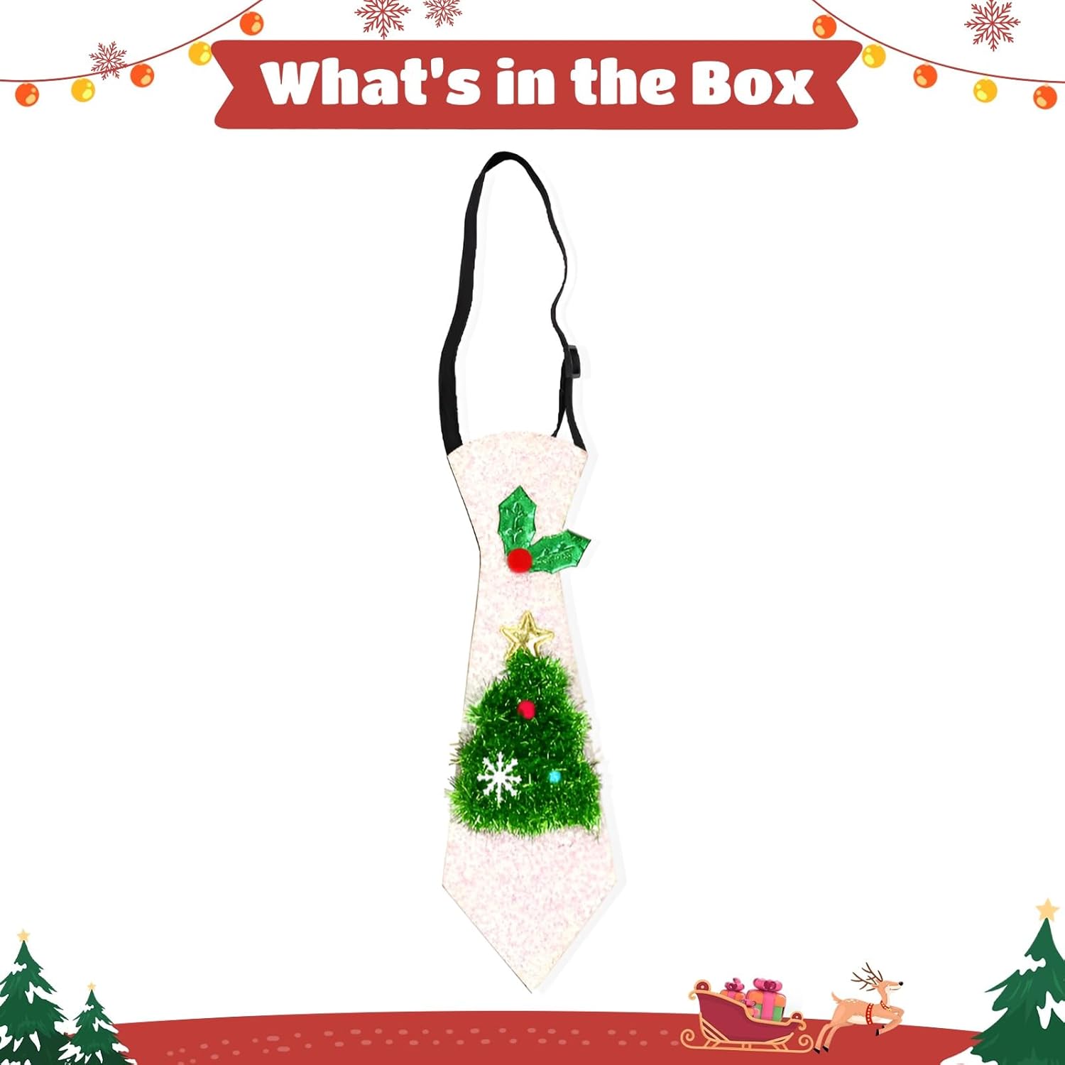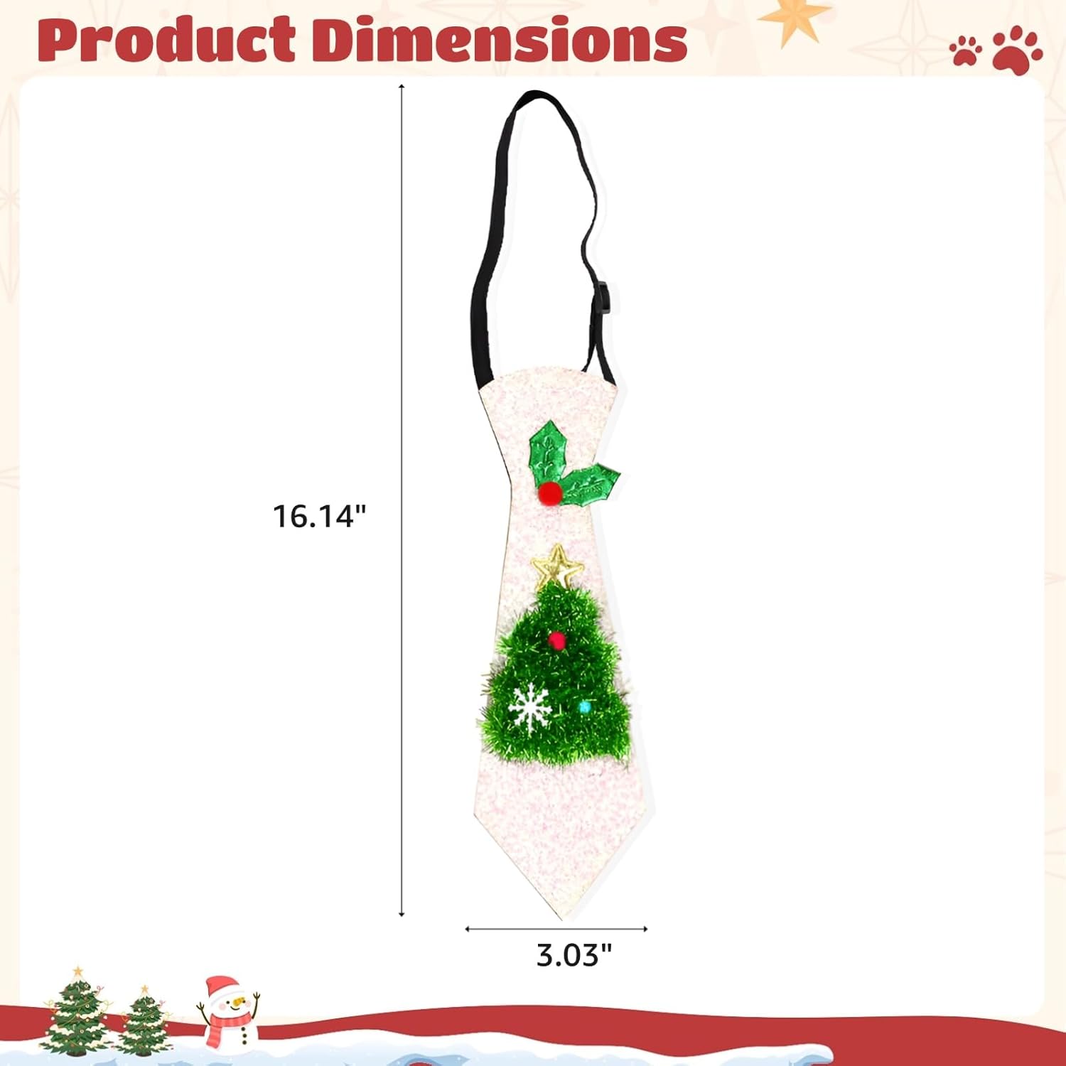 Colore: verde bianco Materiale: tessuto non tessuto, polvere glitterata Dimensioni: 40,9 x 7,6 cm. La confezione include: 1 cravatta natalizia. Nota: - Si prega di fare riferimento alla misura. Si prega di considerare un piccolo margine di errore nelle misure. - Potrebbe esserci una piccola differenza di colore a causa del monitor, della fotocamera o di altri fattori, si prega di fare riferimento all'articolo fisico.