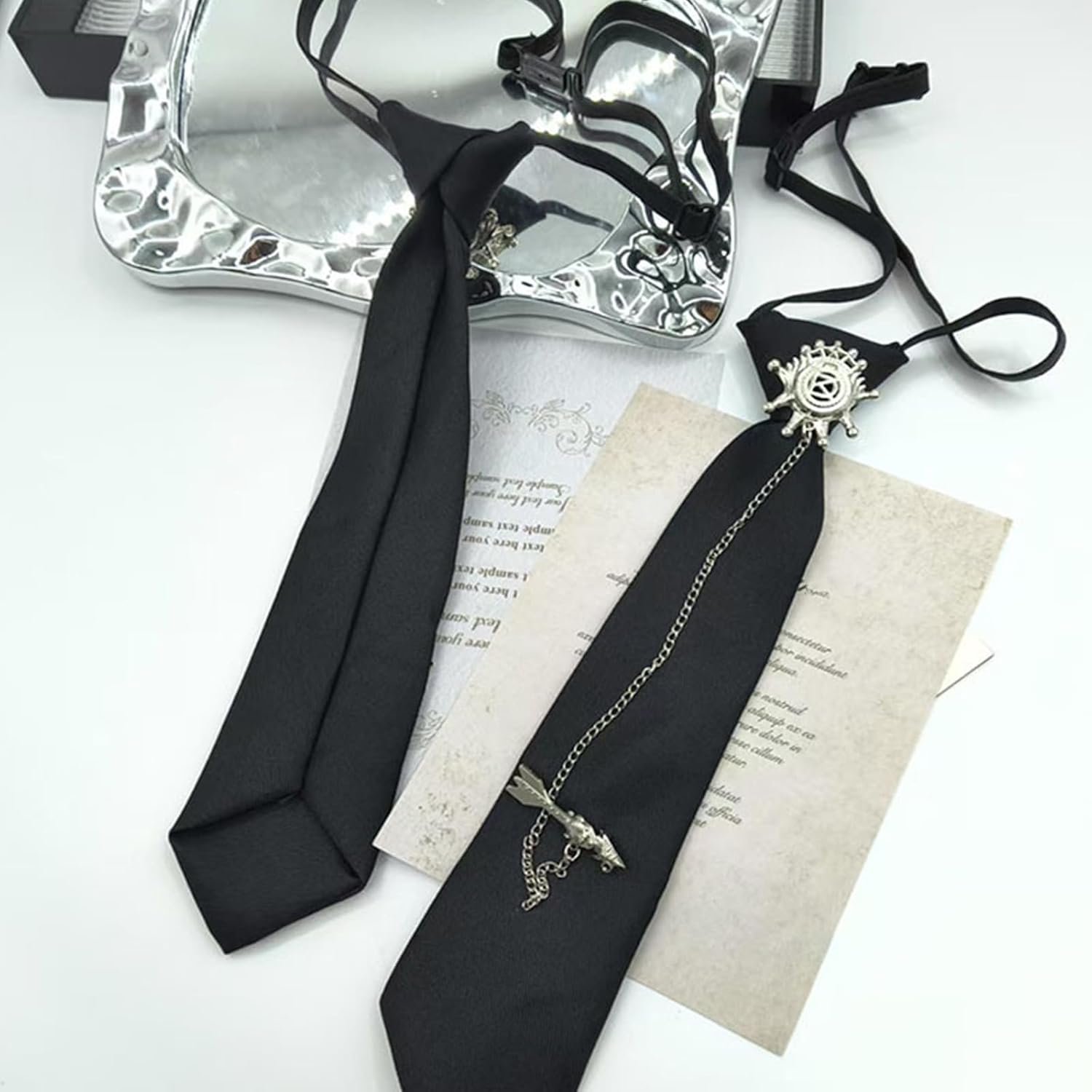 Cravatta nera punk rock da donna con catena a frecce in metallo pre legata cravatta per eventi casual universitari e oggetti di scena cosplay Caratteristiche: Stili con la nostra cravatta vintage pre-legata, realizzata in poliestere per un look vintage per spettacoli teatrali, moda punk e cosplay anime. Caratterizzata da un cinturino regolabile e un design unico, questa leggera scollatura combina bordi punk con versatilità professionale in tessuto traspirante e resistente alle pieghe. Progettato per studenti universitari, cosplayer e professionisti che cercano accessori audaci, collega gli abiti da lavoro con la moda alternativa per uomini e donne. Elevare abiti a feste a tema, riunioni di lavoro o eventi universitari mantenendo il comfort durante l'uso prolungato con la sua costruzione leggera. Il poliestere resistente alle pieghe garantisce vivacità, trasformando gli abiti quotidiani in straordinari ensemble punk senza compromettere la durata. Specifiche tecniche: Componente: poliestere. Cravatta Colore: Nero Lunghezza: circa 25 cm. La confezione include: 1 cravatta da collo. Nota: Si prega di considerare un margine di errore di 1-3 cm dovuto alla misurazione Si prega di assicurarsi che non sia un problema prima di effettuare l'ordine. A causa della differenza tra i diversi monitor, l'immagine potrebbe non riflettere il colore reale dell'articolo.