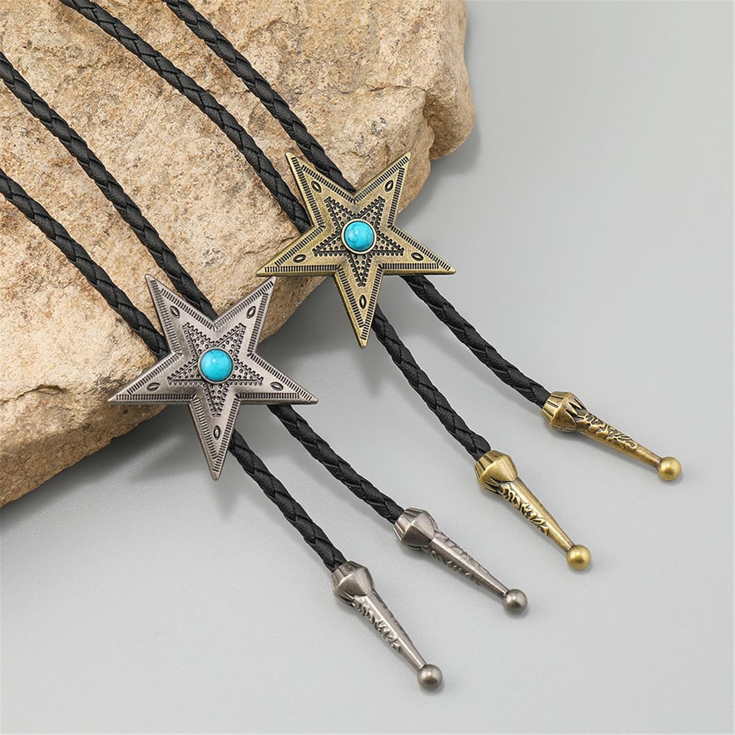 Cravatta regolabile con ciondolo a forma di stella, per adulti, costume occidentale, gioielli, accessori, carnevale, musica, festival Caratteristiche: Migliora i tuoi stili con il Bolotie regolabile, realizzato in lega per una durata resistente allo sbiadimento e presenta un design unico con ciondolo a stella che aggiunge una dichiarazione audace a qualsiasi outfit. Questo bolotie unisex offre una lunghezza personalizzabile con una chiusura in lega di sicurezza, garantendo una vestibilità comoda a varie dimensioni del collo mantenendo la sua finitura metallica lucida attraverso un'usura prolungata Per adulti e adolescenti alla ricerca di fantastici accessori per il collo per eventi a tema, cosplay o aggiungere un tocco spigoloso a camicie casual, maglioni e costumi formali. Distinguiti a carnevale, matrimoni o festival musicali con questo gioiello in stile occidentale che passa senza soluzione di continuità da spettacoli teatrali a cocktail party e abiti quotidiani. Progettato come una conversazione che inizia gentiluomini e trendsetter, la sua costruzione leggera e fascino unisex lo rende un accessorio ideale costume o accento di moda. Specifiche tecniche: Componente: PU + lega. Colore opzionale: argento, bronzo. Perimetro: 100 cm (ciondolo incluso). Gamma regolabile: 40 – 70 cm. La confezione include: 1 bolotie. Nota: Si prega di considerare un margine di errore di 1-3 cm dovuto alla misurazione Si prega di assicurarsi che non sia un problema prima di effettuare l'ordine. A causa della differenza tra i diversi monitor, l'immagine potrebbe non rispecchiare il colore reale dell'articolo.