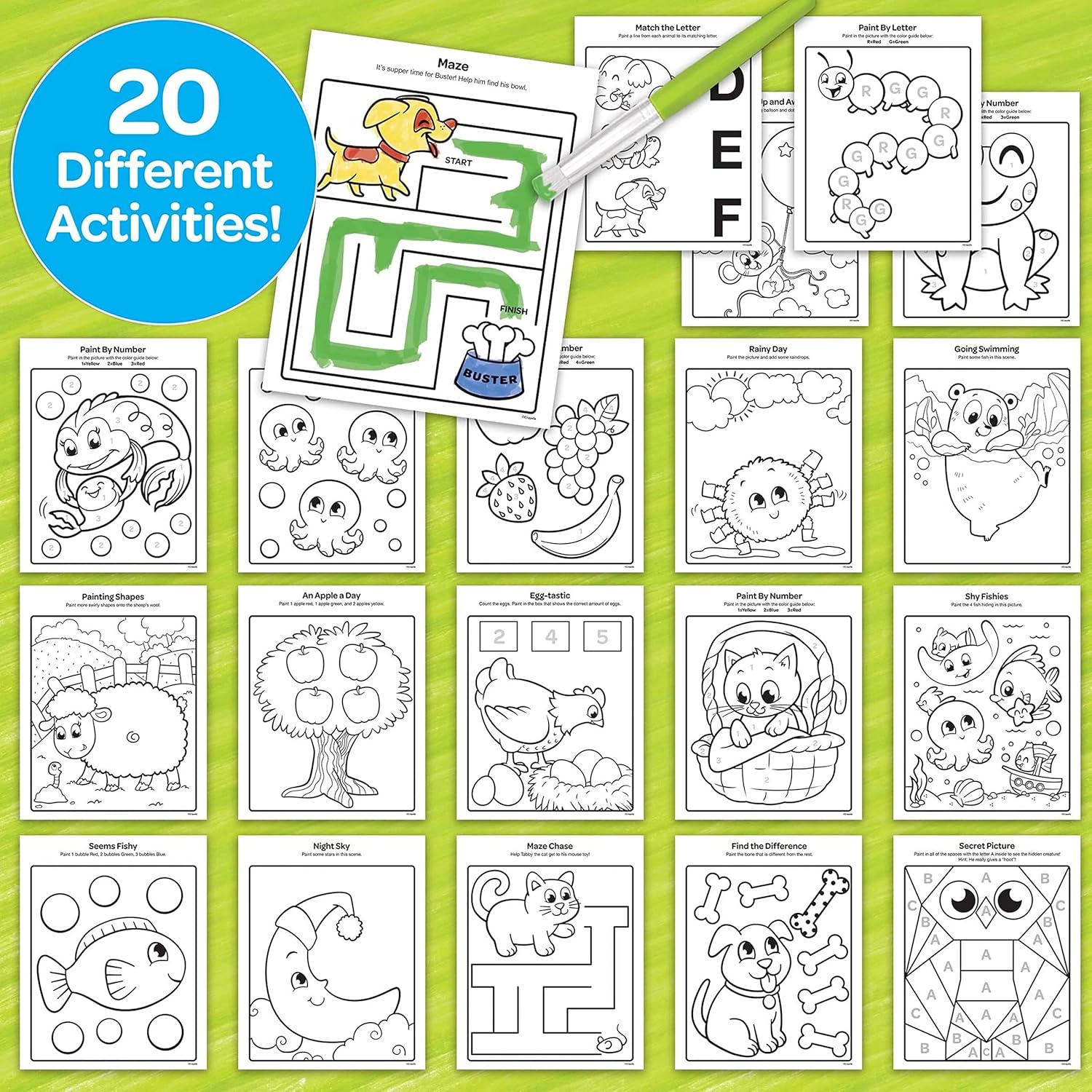 | Componenti incluse | (20) pagine di attività divertenti ed educative "create to learn", (4) Vasetti lavabili a prova di fuoriuscite (1,4 FL OZ EA), Pennello |