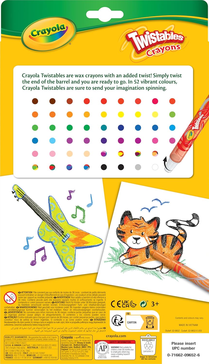 Crayola Twistables sono pastelli a cera con un tocco in più! Basta ruotare l'estremità del fusto e sei pronto per continuare a colorare. La confezione contiene 52 colori diversi. Perfetto per l'uso a casa e a scuola. Adatto per bambini dai 3 anni in