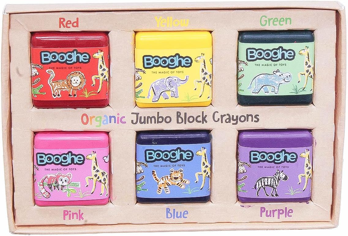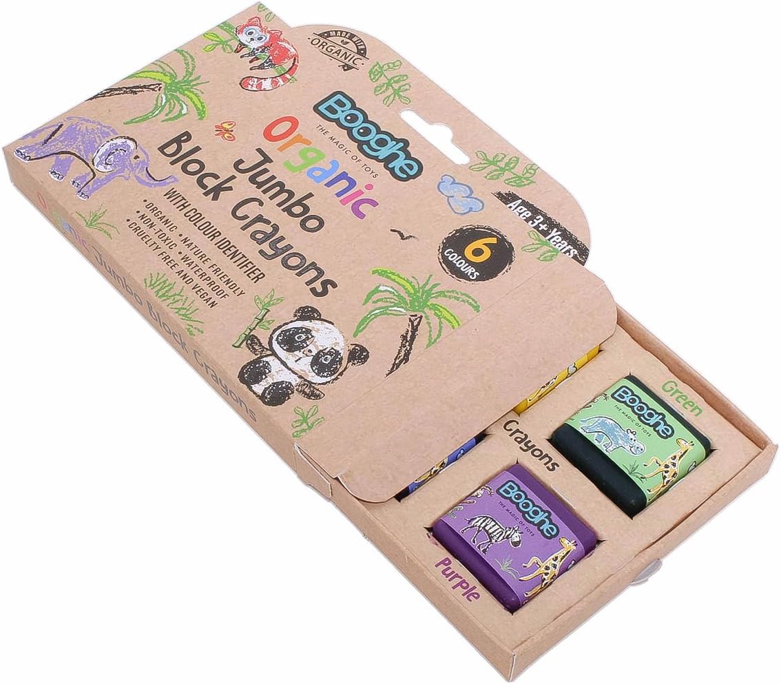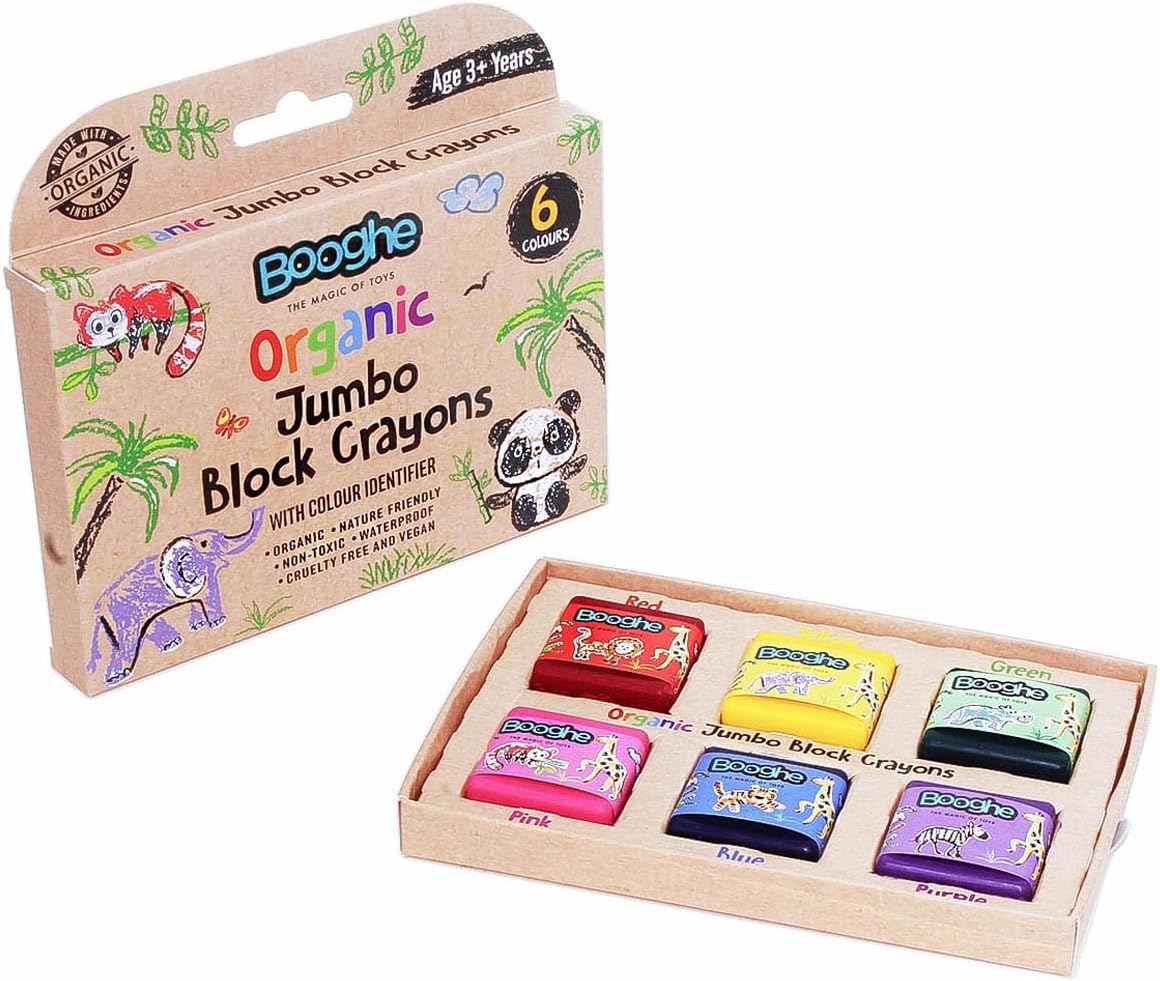 BOOGHE Pastelli organici a forma di blocco: realizzati con ingredienti biologici come cera di soia biologica, burro di soia biologico, burro di cocco biologico e colori per uso alimentare. Progettato con identificatore di colore: i nostri pastelli Jumbo Block Shape sono dotati di identificatore di colore: blu, rosa, verde, giallo, rosso, viola. Formulato appositamente per migliorare la coordinazione occhio-mano nei bambini per la loro prima lezione d'arte! Divertimento anche giocando e impilando. Pastelli Jumbo a forma di blocco per una presa e una presa facili: i pastelli Jumbo Block contengono più pigmenti e colori ricchi aiuteranno i bambini a esprimere il loro artista interiore. Si attacca facilmente alla carta o alla tavola da disegno e ha una lunga durata e qualità. Biologici, rispettosi della natura, atossici, impermeabili, cruelty-free e vegani: ciò che rende i pastelli Jumbo Block di Booghe diverso è il fatto che i nostri pastelli sono biologici, privi di sostanze chimiche e atossici. I bambini hanno l'abitudine di mettere tutto in bocca. Quindi, abbiamo realizzato pastelli con cere biologiche di altissima qualità. Vengono utilizzati solo ingredienti naturali di origine vegetale e mai testati sugli animali. Disponibile in diverse forme: i pastelli organici Booghe sono disponibili anche in diverse forme: pastelli a forma di matita, pastelli a blocco, pastelli Jumbo Block con glitter. Ideale per l'uso a casa o a scuola e sono uno strumento creativo essenziale per i bambini. Perfetto per progetti artistici e colorazione più fini e realizzato con gli stessi ingredienti biologici! ! Sostenibili e sicuri: i nostri pastelli sono certificati dalla norma EN 71 e EN 72, UKCA, CE certificati. Privo di petrolchimici e riempitivi; sicuro e sicuro per bambini, ragazze, ragazzi e bambini. La nostra missione: l'obiettivo di Booghe è quello di creare prodotti sicuri e sostenibili che i bambini adoreranno utilizzare, utilizziamo ingredienti biologici che significa buoni per i bambini e per il pianeta.