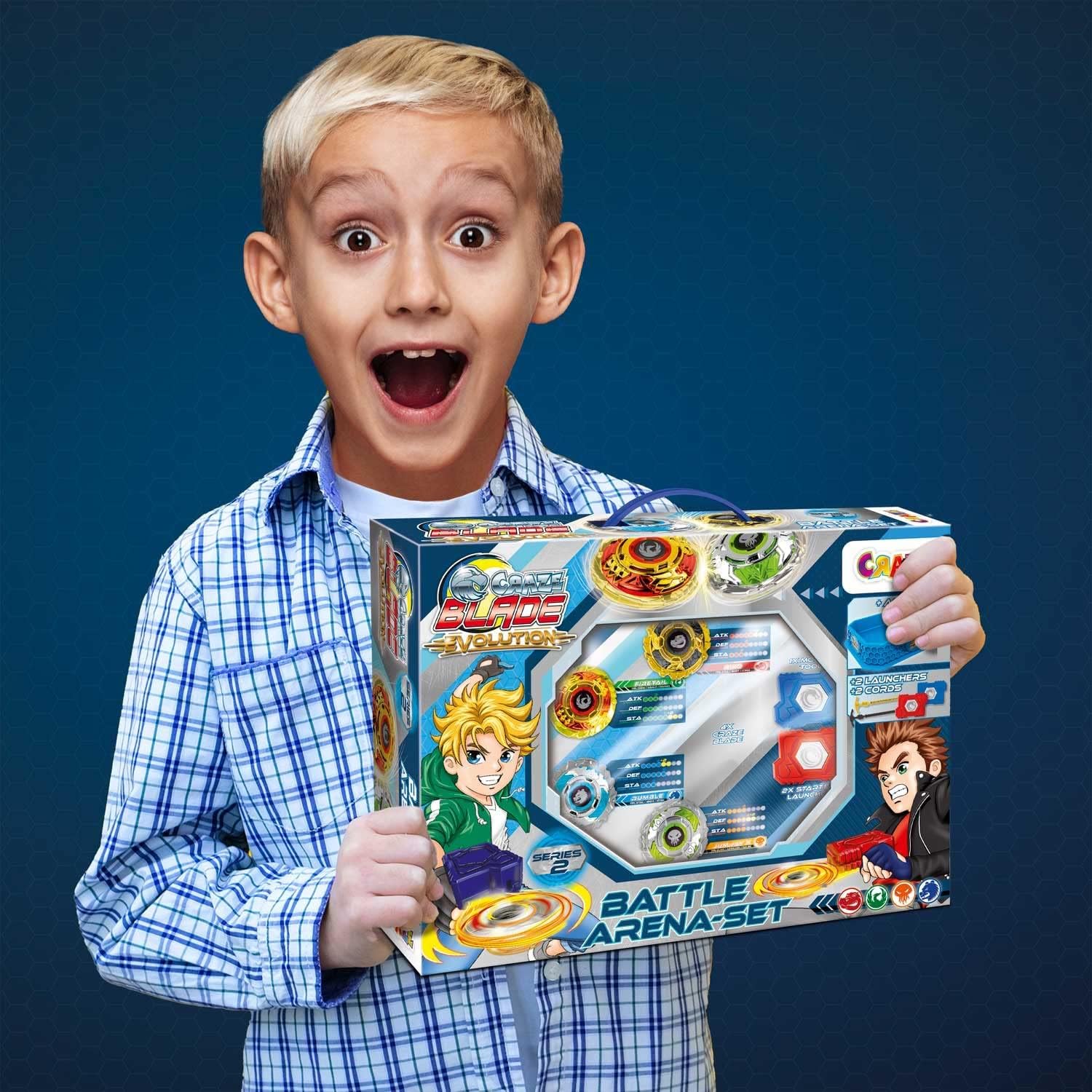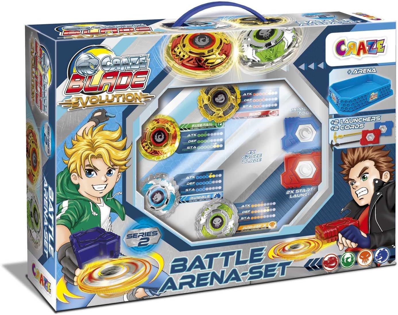 La battaglia è iniziata! Tira fuori la tua trottola che inizia il combattimento, le trottole Blade ti farà ottenere tutte le vittorie. Con il loro materiale metallico questi blei blei sono i più resistenti. Sfida i tuoi amici con BLADE, queste trottole per bambini sono progettate per girare più a lungo, il loro materiale è resistente con la migliore qualità. Che l'attacco abbia inizio! Le trottole blei blei se sono facili da usare e da montare. Set da battaglia: questo set da battaglia include tutto ciò di cui hai bisogno per i tuoi migliori combattimenti con Blade, con il suo stadio nell'arena raggiunge la massima velocità e propulsione con le tue cime. Scambia i colori e gioca con più di una persona. Include 4 trottole Sono oggetti da collezione: Ottieni tutti i tipi di trottole Blade Blade per essere il giocatore più temuto e usa l'uno o l'altro a seconda della strategia di battaglia e dei concorrenti nell'arena di combattimento Contenuto: 4 trottole Blade, 2 lanciatori corti per battaglie più tecniche, 2 lanciatori lunghi per una maggiore propulsione, 1 stadio dell'arena e 1 manuale di istruzioni.