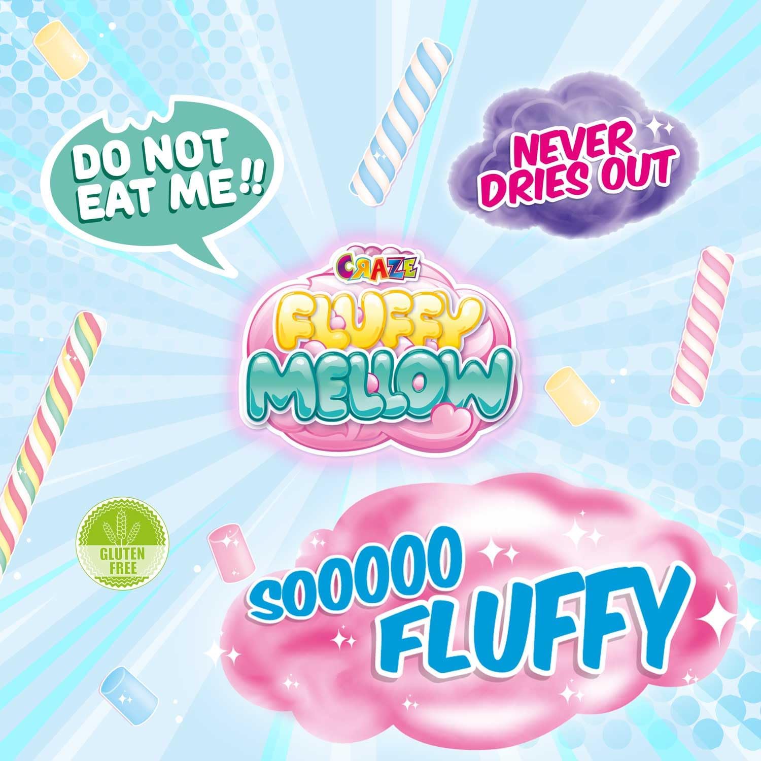 Il FLUFFY MELLOW di Craze è lo Slime fluffy più soffice, vellutato e morbido, sembra uno zucchero filato. Questa argilla da modellare non è appiccicosa o scivolosa, ma non morbida e maneggevole, ideale per lo stress quotidiano. Portalo ovunque e divertiti con Fluffy Mellow, non si attacca, non macchia e può separarsi e riunirsi di nuovo. Allunga la tua immaginazione! Fluffly Mellow rimbalza, si modella, si allunga, si adatta e molto altro ancora! Allungalo! Staccarlo. Impasta! Rimbalza! Premere per alleviare lo stress. Oppure falla rotolare in una palla, lo slime per bambini più incredibile e originale. L'argilla Fluffy Mellow contiene 25 grammi di slime fluffy, è un ottimo regalo per ogni occasione, aiuta a intrattenere, alleviare lo stress e far conoscere ai bambini diverse trame. Questo Slime per ragazze e ragazzi è disponibile in 4 colori diversi e viene fornito in un sacchetto autobloccante. FLUFFY MELLOW originale Craze è realizzato con una formula tedesca al 100%, priva di tossine e ingredienti nocivi per i bambini. Sicuro da usare e senza BPA e senza glutine. Ideale per il fai da te dei più piccoli. CONTENUTO: L'acquisto contiene 1 sacchetto di argilla per modellare Fluffy Mellow da 25 grammi di Fluffy Mellow in 1 dei 4 colori disponibili (blu, rosa, viola o giallo), Non è possibile selezionare il colore Sorprenditi!
