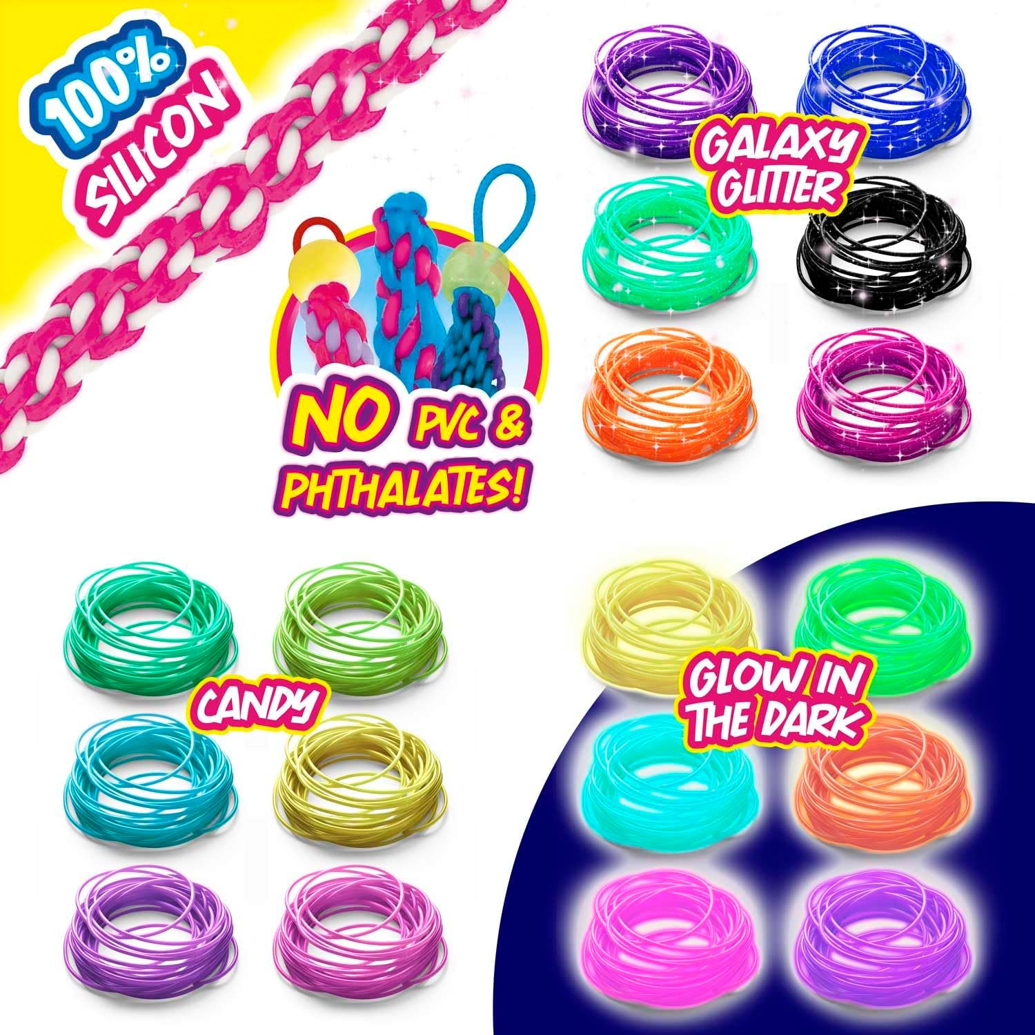 14 NASTRI IN SILICONE – Set XXL con 14 colori brillanti per attività manuali e bricolage; ideale come kit per creare braccialetti, elastici IDEA REGALO – Gioco creativo per bambine 5–6 anni (adatto anche 7–8); perfetto per compleanni, feste e pomeriggi tra amici. ACCESSORI EXTRA – Oltre 30 perline e ciondoli: stelline, cuori e beads per personalizzare braccialetti e pendenti. EFFETTI SPECIALI – Stili pop, colori neon, candy e glitter per creazioni uniche, coloratissime e alla moda. DIVERTIMENTO DI GRUPPO – Kit braccialetti per bambini e bambine; ideale per laboratori creativi, party e attività condivise.