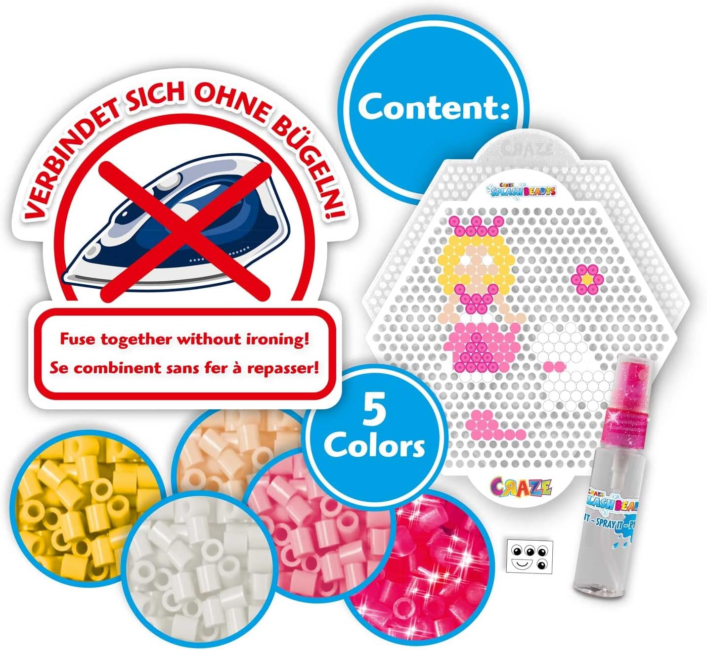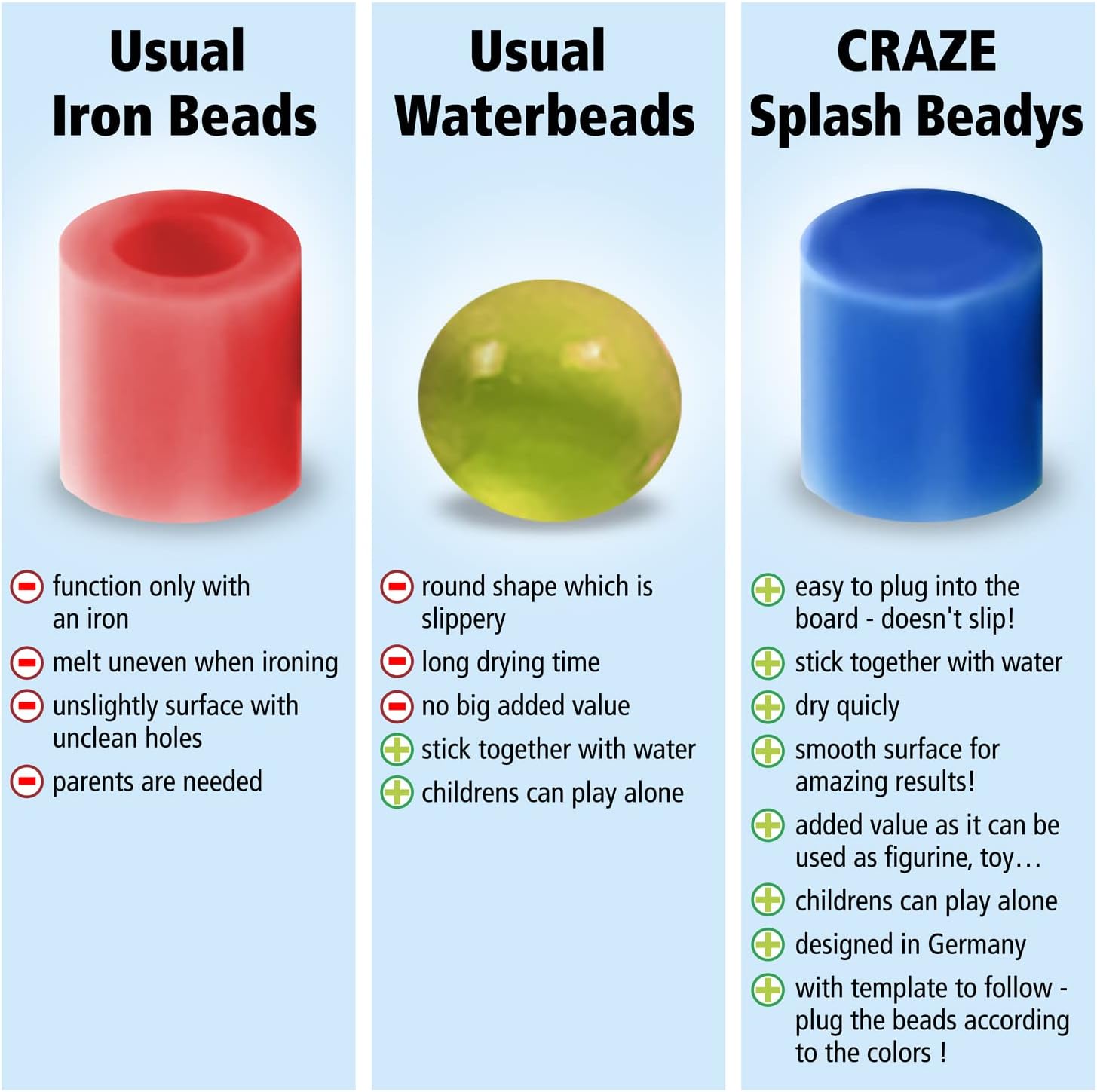 Tempo libero creativo per grandi e piccini: le ragazze adorano calarsi nei panni di una principessa. Con lo Starter Kit CRAZE SPLASH BEADYS Princess, i bambini possono creare il proprio mondo da sogno. Con il kit adesivo parlante CRAZE SPLASH BEADYS i bambini si immergono nel meraviglioso mondo delle principesse. A differenza delle altre perle d'acqua, che sono più piccole, le nostre perle di colla SPLASH BEADYS misurano circa 5 mm: più grandi, più belle, semplicemente fantastiche! Lavoretto per bambini con perline adesive per bambini SPLASH BEADYS - la prima perlina termoadesiva che non devi più stirare! Le perle d'acqua SPLASH BEADYS sono facili e veloci da applicare, basta spruzzare un po' d'acqua, aspettare un po' e le tue nuove figurine sono pronte! Asciuga in 10 minuti. Promuove la fiducia in se stessi e la creatività: con lo starter kit di perline di colla CRAZE SPLASH BEADYS, gli artisti in erba ora possono progettare da soli bellissimi disegni e dare libero sfogo alla loro creatività. A differenza delle classiche perline da stiro, con le perline CRAZE SPLASH BEADYS i bambini possono completare i disegni in autonomia. I sacchetti con perline sono comodi da portare ovunque e contengono una tavola, diversi modelli da 2 a 4 disegni, perline CRAZE SPLASH BEADYS in 5 colori (giallo, rosa, carne, bianco e glitter), uno spruzzo d'acqua e un manuale di istruzioni. Perle d'acqua atossiche per bambini di qualità premium CRAZE e con un bellissimo design colorato. Il materiale utilizzato per le nostre perle è assolutamente atossico e di grado alimentare, oltre che vegano e senza glutine. È approvato come additivo farmaceutico e viene utilizzato nei rivestimenti di pillole/compresse. La sicurezza del tuo bambino è molto importante per noi, ecco perché i nostri prodotti vengono messi alla prova.