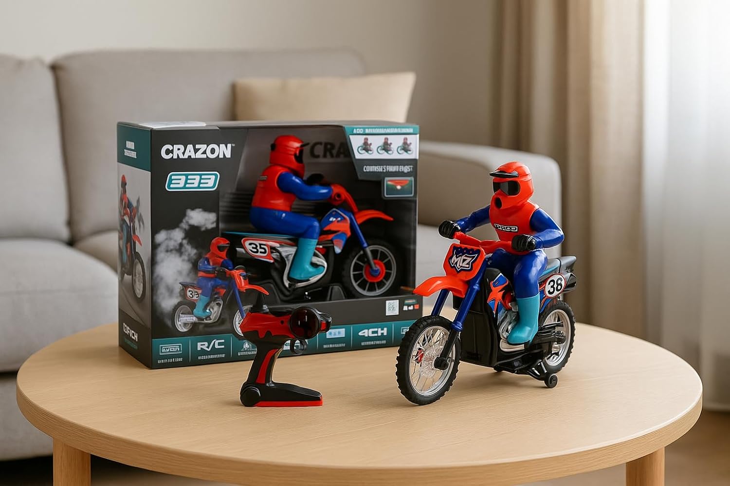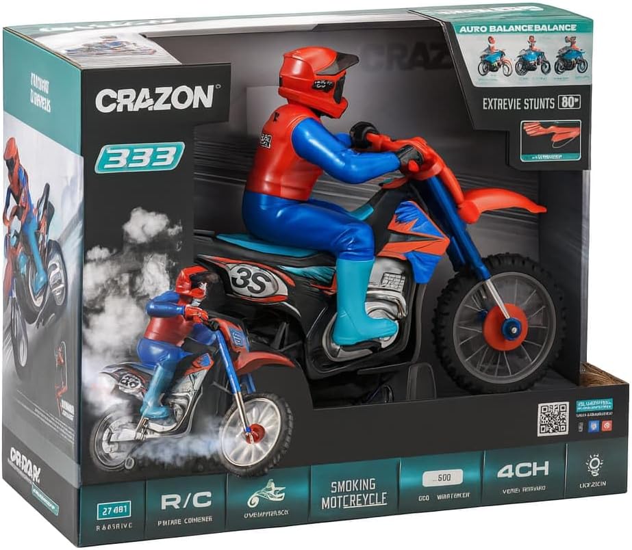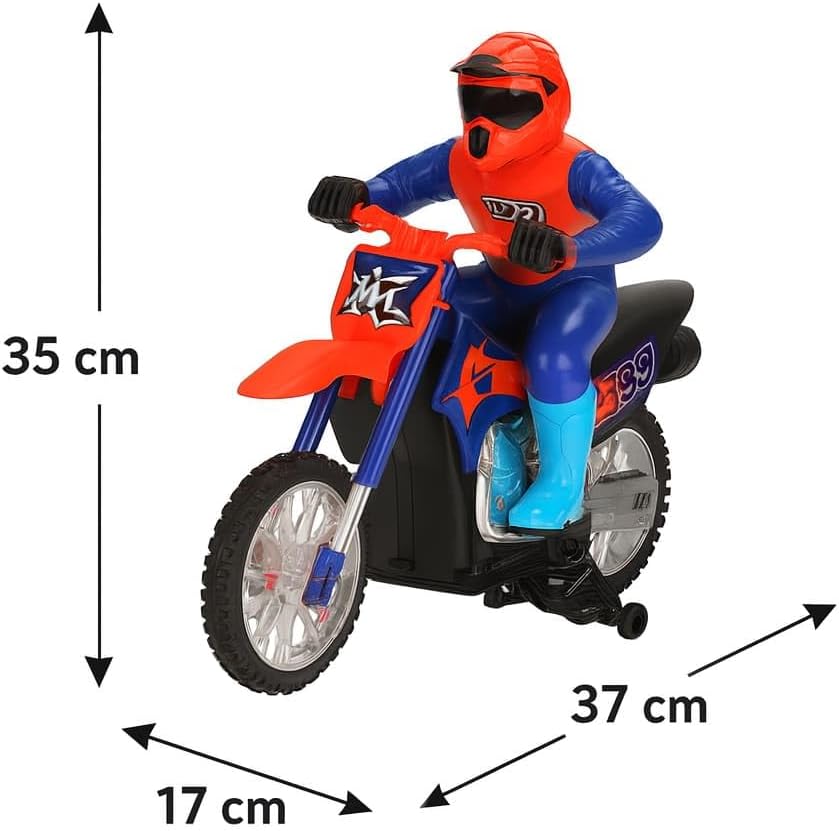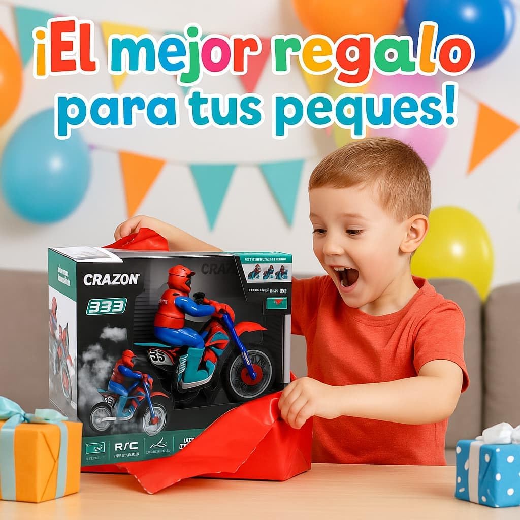 Motocicletta RC telecomandata con telecomando - Motocicletta giocattolo in scala 1/10 progettata per ragazzi e ragazze dai 3 anni in su. Facile da controllare grazie al radiocomando, ideale per far divertire i più piccoli con i loro primi veicoli telecomandati sviluppando la coordinazione e le capacità motorie. Luci, suoni ed effetto fumo realistico - Dotato di effetti accattivanti che simulano una vera moto: luci anteriori, suoni e un originale effetto fumo che stupisce i bambini. Questi dettagli aumentano il divertimento e creano un'esperienza di gioco molto più coinvolgente e divertente, perfetta per ore di divertimento a casa. Design per bambini sicuro e durevole: realizzata con materiali di alta qualità e bordi arrotondati, questa moto RC è progettata per un uso intensivo da parte dei più piccoli. La sua struttura robusta resiste agli urti e alle cadute, garantendo un giocattolo durevole, sicuro ed affidabile che accompagnerà i bambini in ogni momento di gioco. Scala 1/10 con dettagli realistici - Con grandi dimensioni e un design fedele a una vera moto, questa versione in miniatura promuove il gioco di ruolo, l'immaginazione e la creatività dei bambini. Perfetto per i bambini appassionati di veicoli, che possono provare a guidare la propria moto telecomandata dall'aspetto realistico. REGALO PERFETTO PER RAGAZZI E RAGAZZE: questo veicolo telecomandato è il regalo ideale per compleanni, Natale o occasioni speciali. Con la sua combinazione di luci, suoni ed effetti, offre ore di intrattenimento interattivo e incoraggia il divertimento della famiglia, rendendolo una scelta educativa e coinvolgente per i più piccoli.